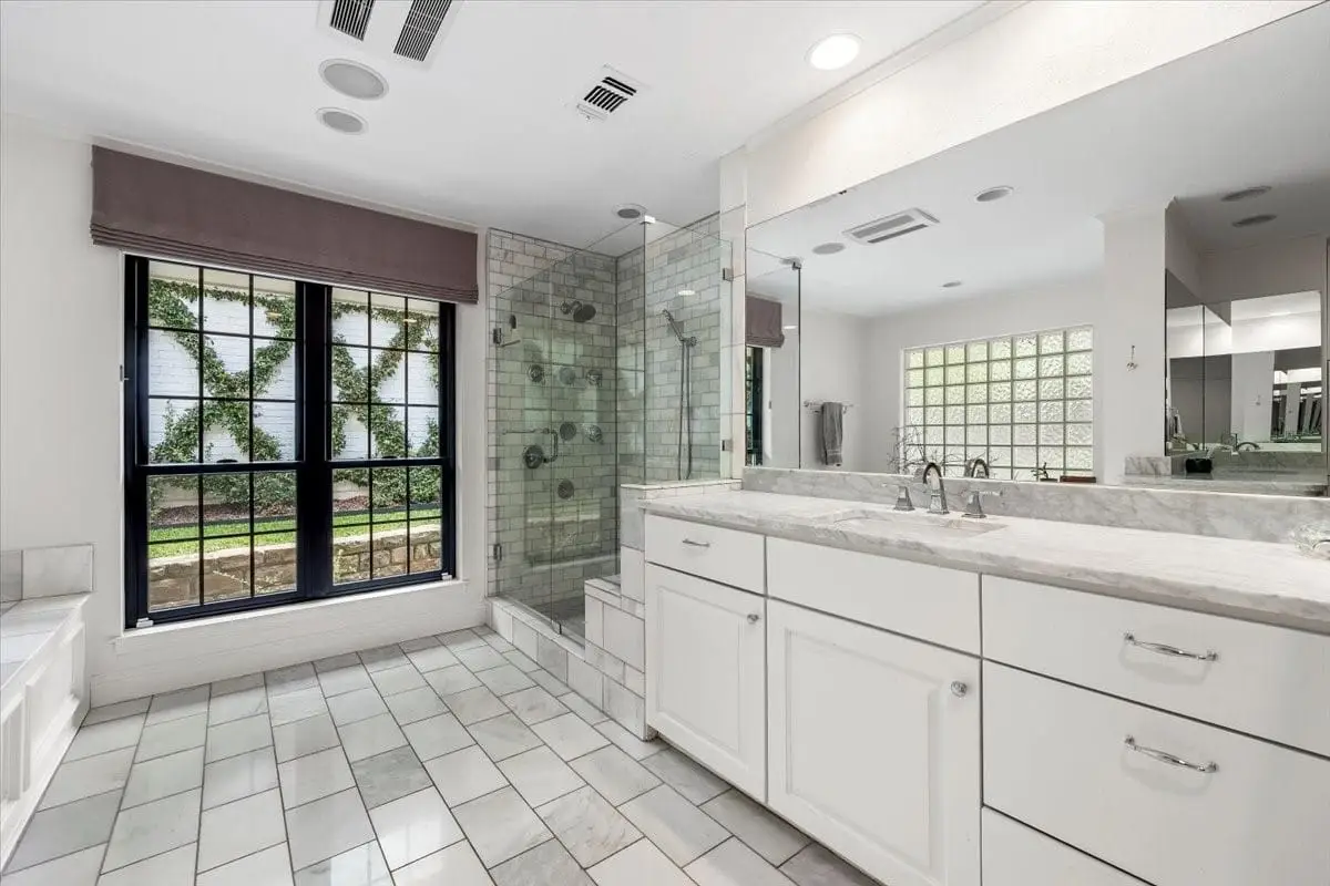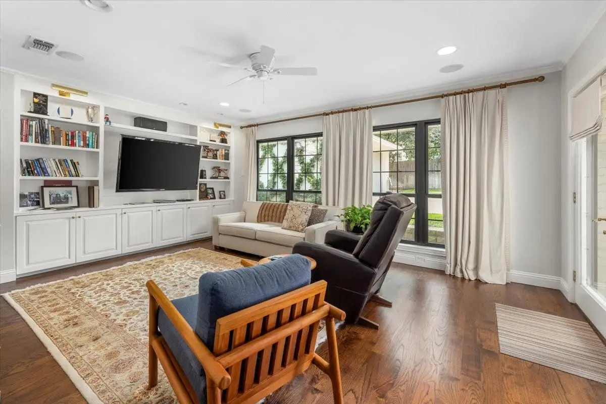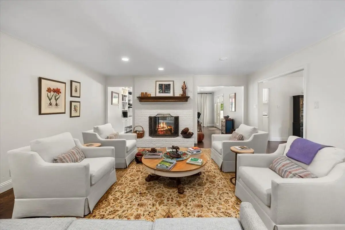 Easy living with an elegant feel! This home is move-in ready with its light colors, beautiful gleaming wood floors, and marble counters in the kitchen and baths. Living room and family room share a see-through fireplace so each area can enjoy. The living room has a wet bar and wall of built-ins. The family room also has built-ins and is made for comfort and relaxation. Adjacent is the charming kitchen which includes a breakfast bar and built-in refrigerator, and very spacious breakfast area. Dining room is perfect for family or dinner guests. Two bedrooms are down including the primary suite which has a great sitting area and beautiful bath with marble and lots of light! Two additional bedrooms and a bath are located on the second level. The exterior includes a gated driveway and two-car garage. The home sits on an elevated lot with great views of the tree-lined street with sidewalks and the location is perfect as it is near TCU, Colonial Country Club, and great shopping!