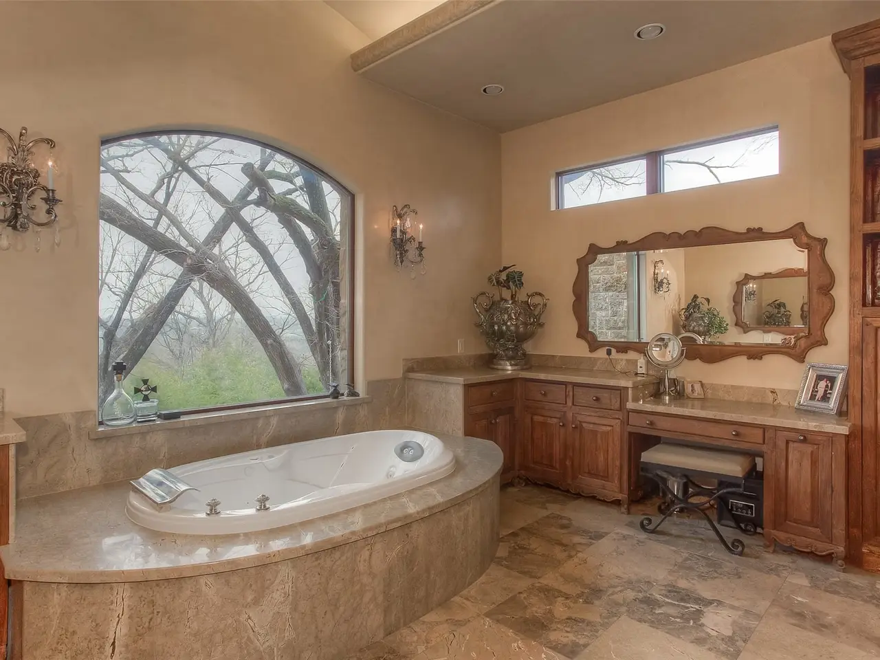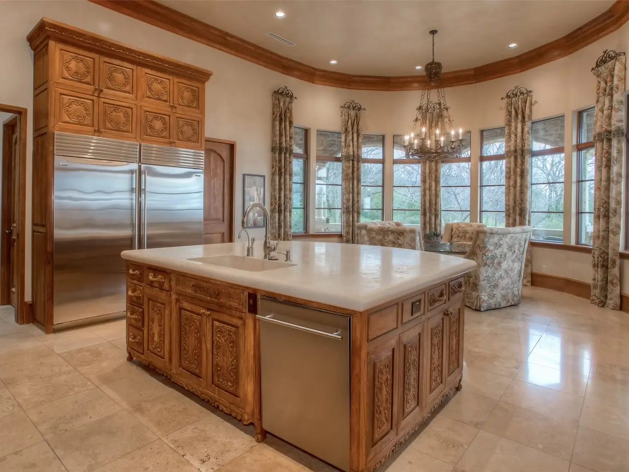 Privacy and exceptional craftsmanship define this custom-designed, custom-built 3-bedroom, 4.5-bath home. Built in 2010 by the current owners and nestled into a hillside, this home offers panoramic views from every room. The downstairs features a spacious flex room with a full bath, which could easily be converted into a 4th bedroom, game room, media room, or a combination. The attention to detail is unparalleled, with stunning woodwork throughout, including massive wood doors and cabinet handles crafted by the Jason Scott Collection using Teakwood from Indonesia. Highlights of the home include soaring 14-ft ceilings, Venetian plaster finishes, marble columns, and clerestory windows. Additional features include elegant stone floors, a fully stone-clad exterior, a wine cellar, a 3-car garage, two gates, an office off the kitchen, multiple balconies, and beautifully landscaped grounds. This home truly blends privacy, luxury, and thoughtful design at every turn.
