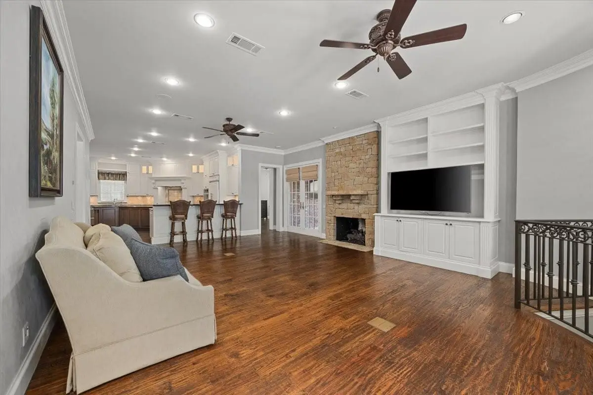 Located close to TCU in the highly desirable, gated Westbriar neighborhood, this stunning home was custom built in 2007 by Westbriar Construction. The residence offers the perfect combination of elegance, functionality, and comfort. The thoughtfully designed layout begins with a spacious formal dining room and a welcoming living room, complete with a cozy fireplace and built-in bookcases. The inviting family room, also featuring a fireplace and custom built-ins, flows seamlessly into the gourmet kitchen, which boasts a 4-burner gas cooktop with griddle, double ovens, warming drawer, large island, and roomy breakfast area. Perfect for entertaining, the home includes a wet bar and generous walk-in pantry. The loggia, off the family room, has a fireplace, automated screens, wiring for a TV and ceiling fan making it a great extension of the home's living space. The primary suite has private access to the side yard, features a spa-like bathroom with double vanities, a classic clawfoot tub, walk-in shower, and his and her closets. A second bedroom with an ensuite bath and walk-in closet is located at the opposite end of the first floor for added privacy. Additional main-level highlights include a private office and well-appointed laundry room. The lower level is equally impressive, offering a handsome pub with a bar and fireplace, making it an ideal movie room. The downstairs library with exposed brick overlooking the neighborhood has a separate entrance and is close to community parking making it the perfect home office. The third bedroom features an ensuite bath and walk-in closet. Additional amenities include a two-car garage, a home automation system, climate-controlled storage and exceptional floored attic storage with easy access. The sprinkler system and main level thermostats can be controlled remotely using an app. Blending timeless craftsmanship with modern conveniences, this home is an exceptional opportunity in one of the area's most coveted communities.