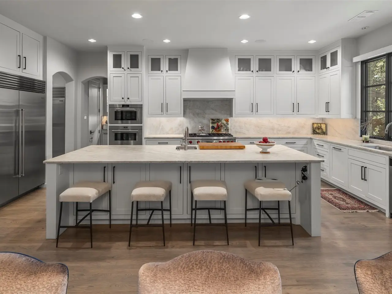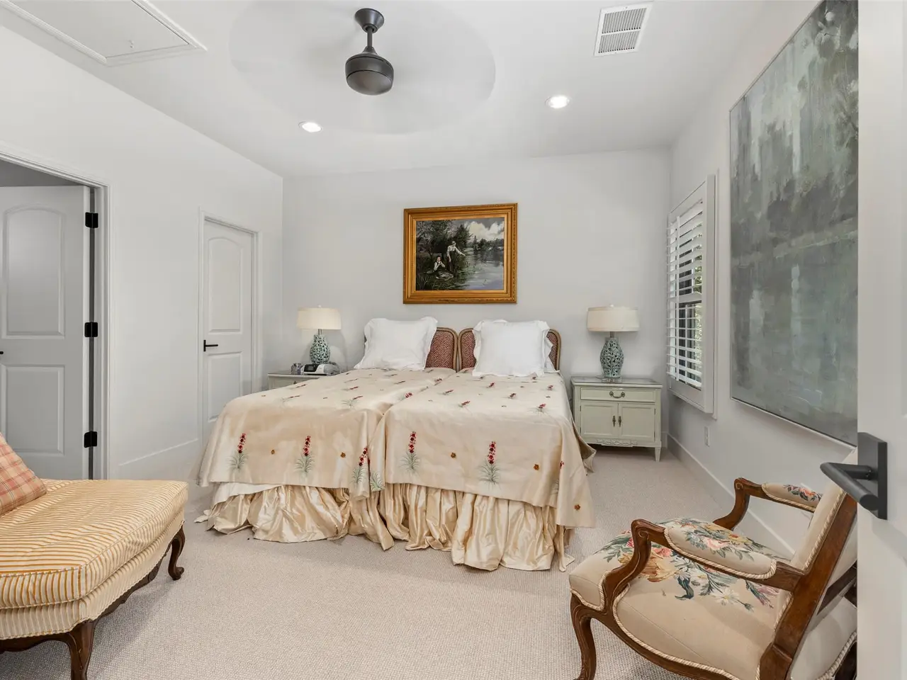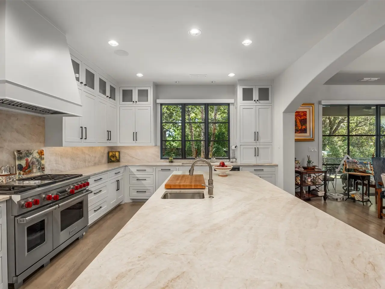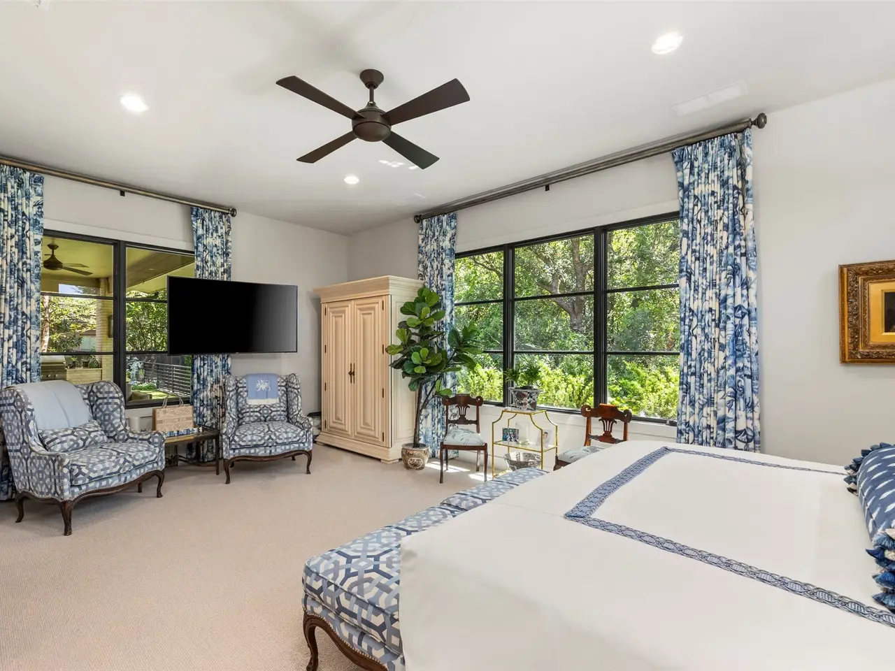 Beautiful 4-bedroom, 4-bath home in gated Westover Square. Designed for easy living with most spaces on the first floor, plus an upstairs retreat with bedroom, bath, and sitting area. Light-filled open kitchen-living area features a wall of windows and double doors to the covered patio with built-in grill. Chefs kitchen offers a large island, built-in refrigerator, commercial gas range, double ovens, dual sinks, and a dry bar with wine cooler. Inviting front courtyard and low-maintenance yard complete this move-in ready home.