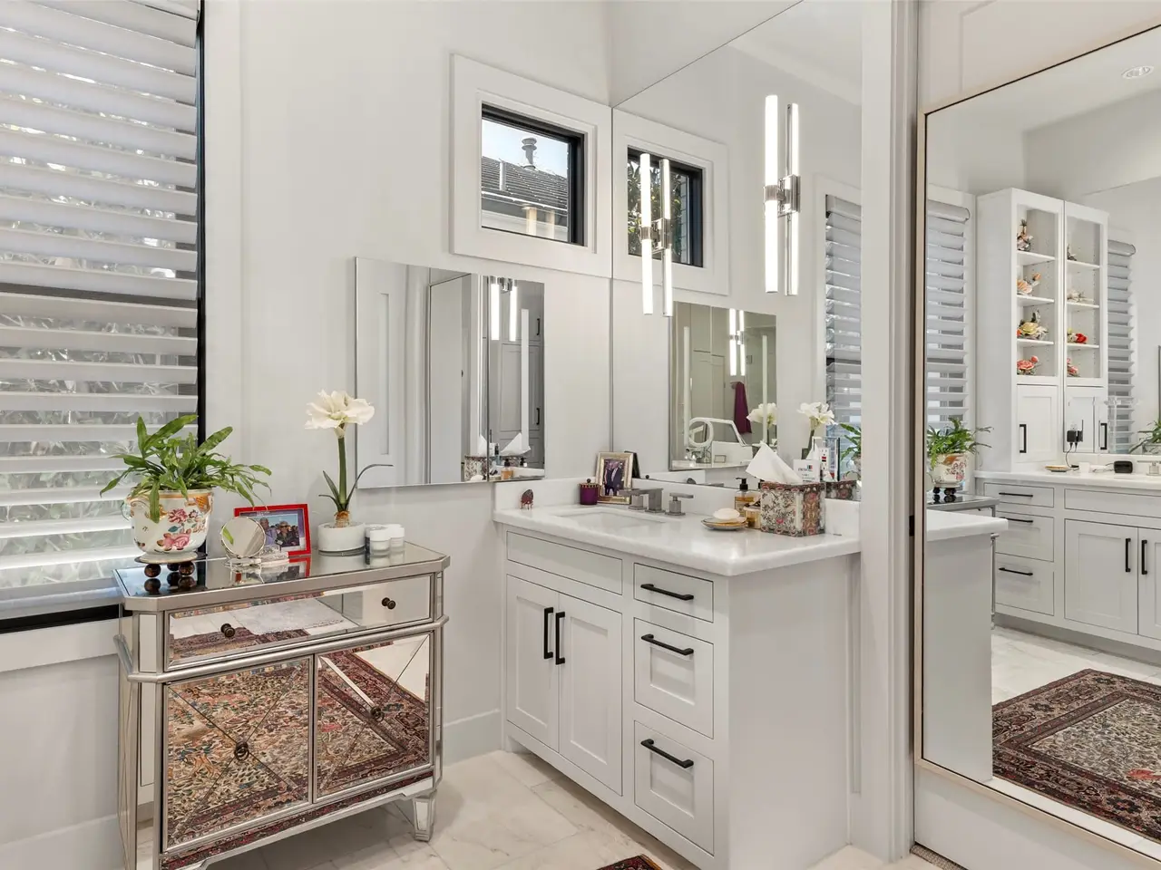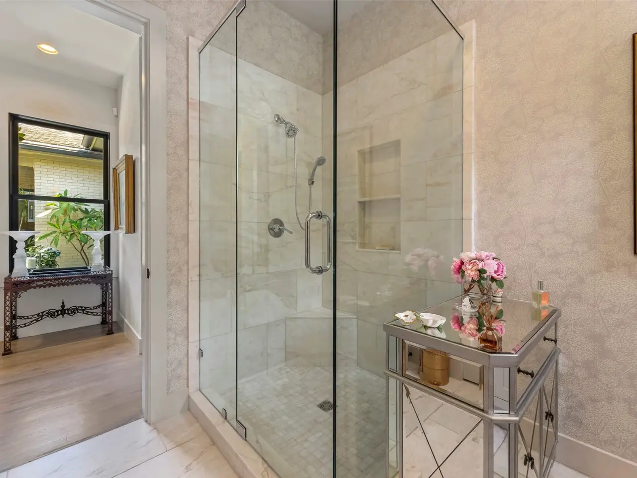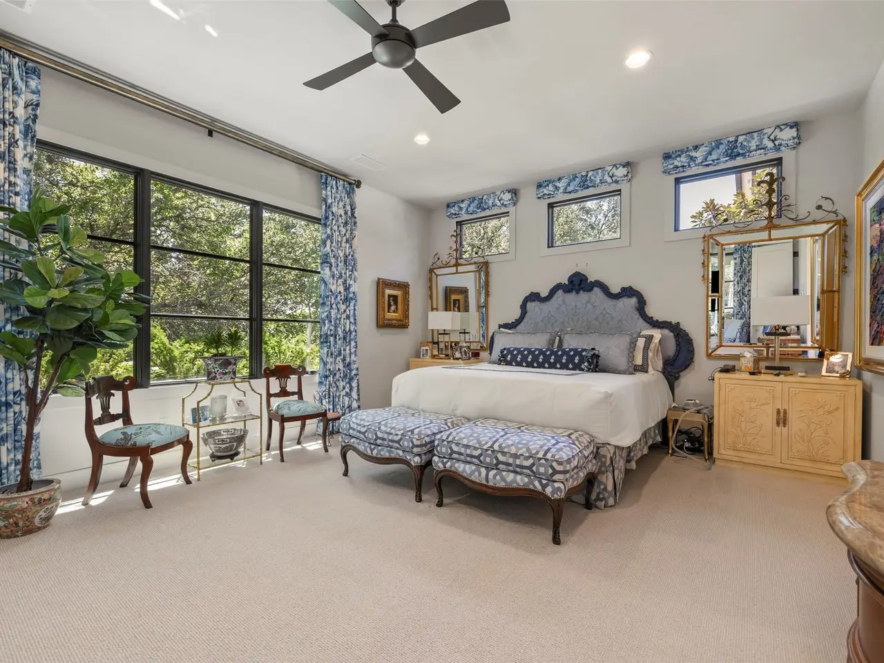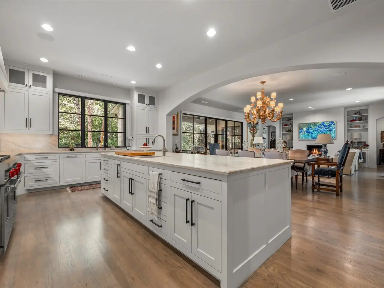 Beautiful 4-bedroom, 4-bath home in gated Westover Square. Designed for easy living with most spaces on the first floor, plus an upstairs retreat with bedroom, bath, and sitting area. Light-filled open kitchen-living area features a wall of windows and double doors to the covered patio with built-in grill. Chefs kitchen offers a large island, built-in refrigerator, commercial gas range, double ovens, dual sinks, and a dry bar with wine cooler. Inviting front courtyard and low-maintenance yard complete this move-in ready home.