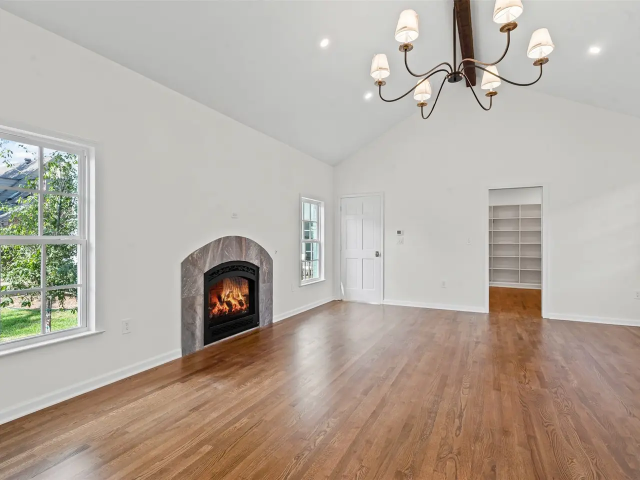 Cozy fireplace in grand primary suite
