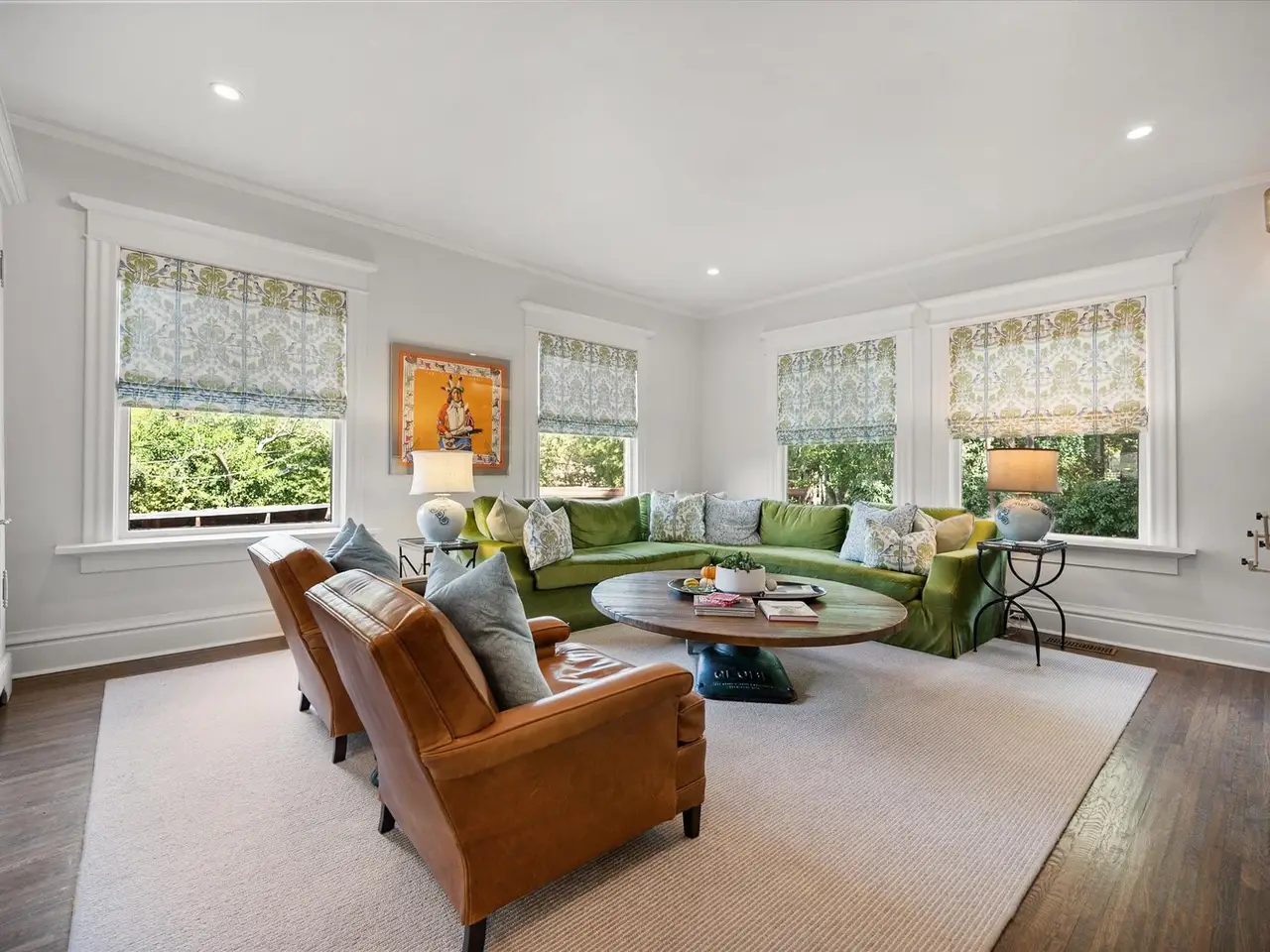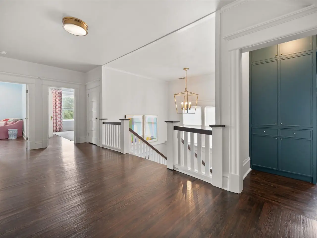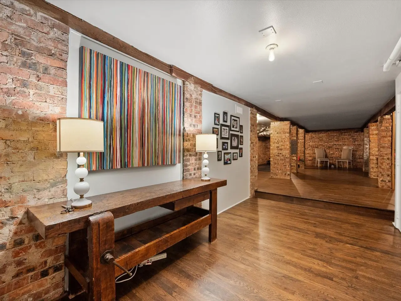 Rich wood floors in finished basement