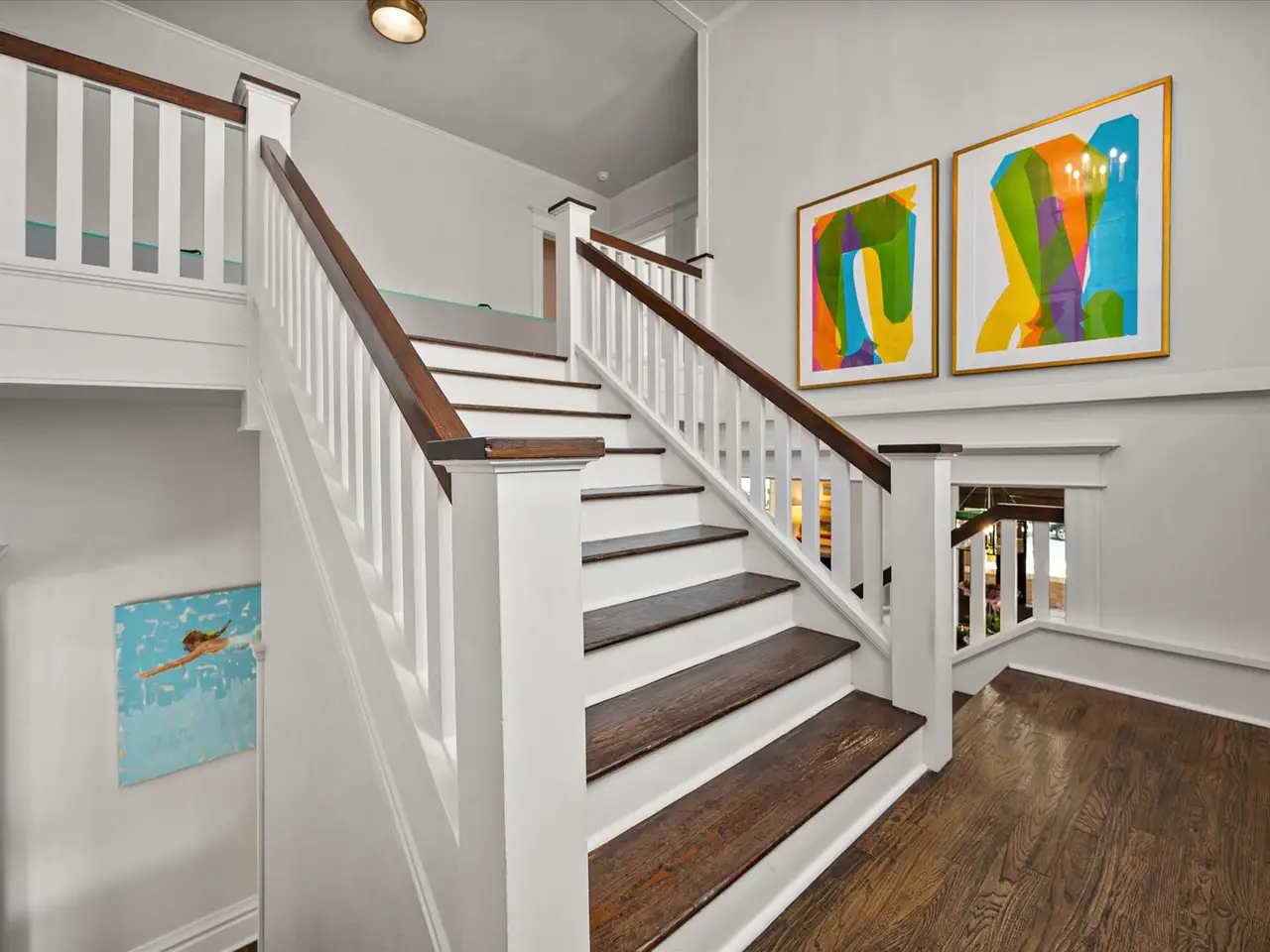 Exposed staircase with grand foyer