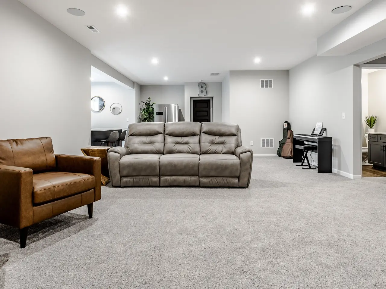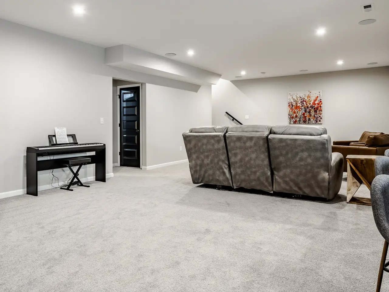 Surround sound system in basement living area