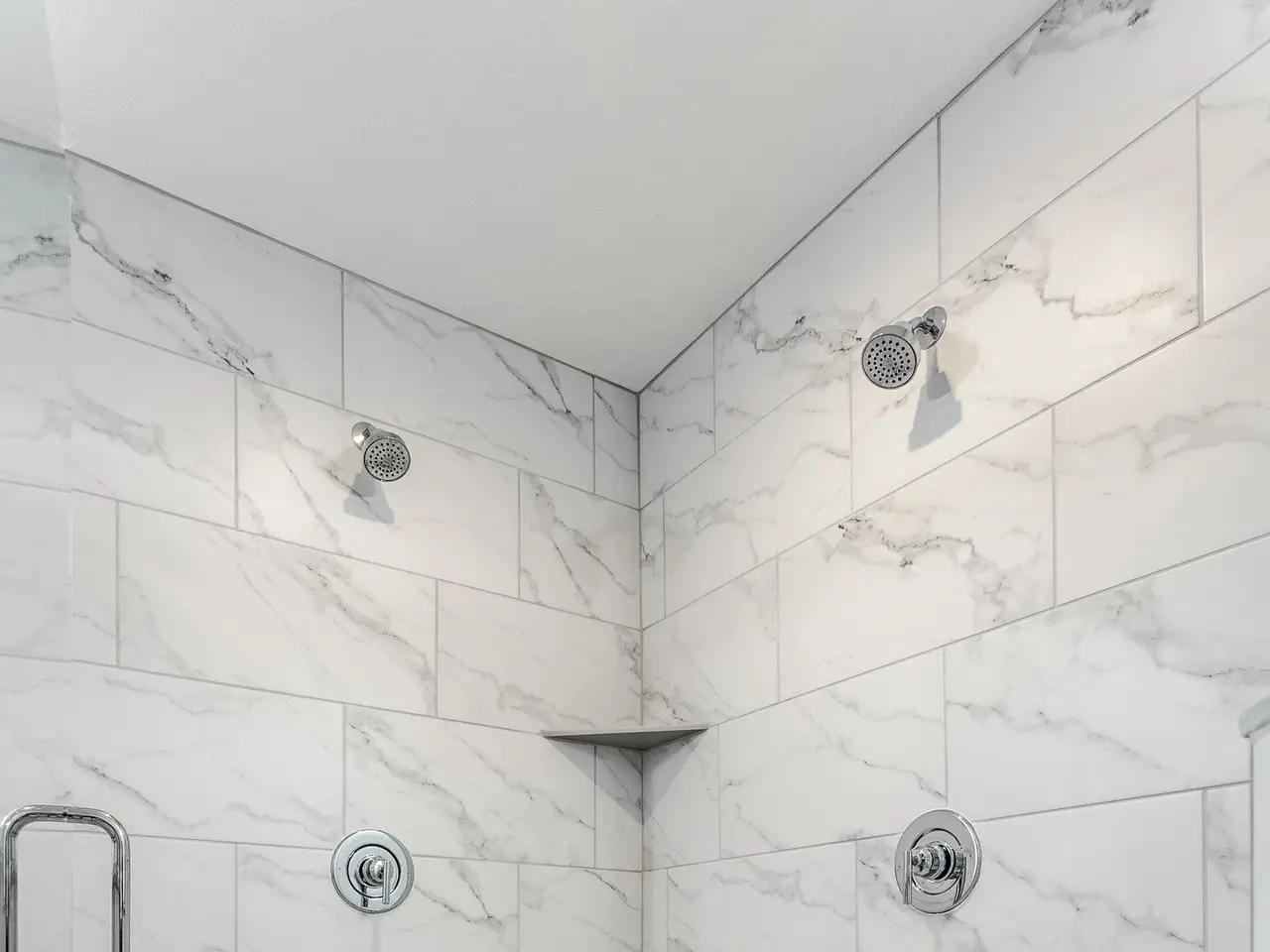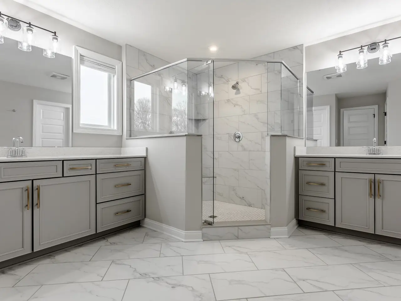 Primary suite with tray ceilings and dual system shower