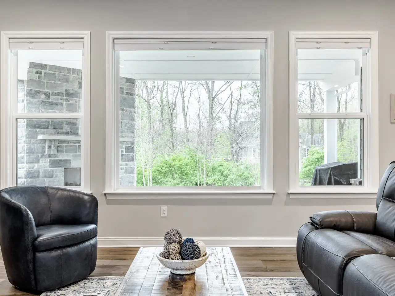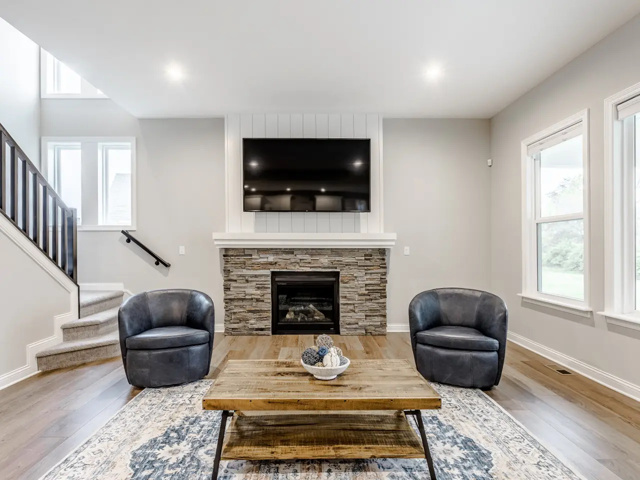 Fireplace with custom stone surround
