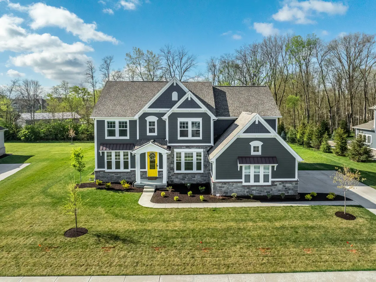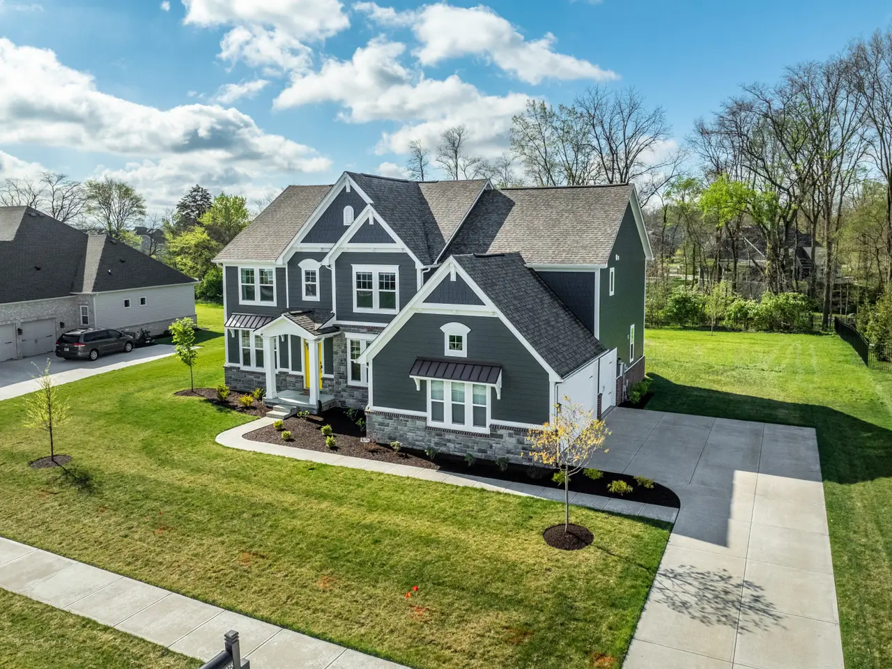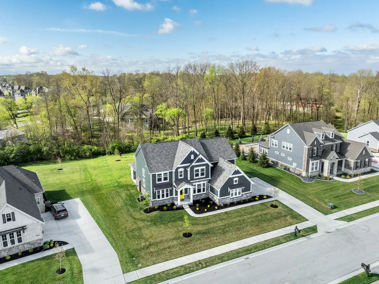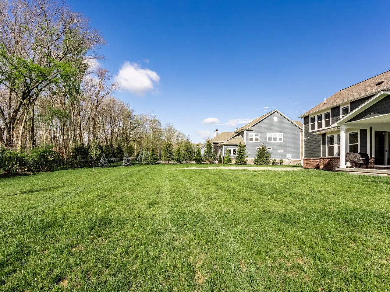 Luxury living at its finest! This immaculate five bedroom, 4.5 bath home was built in 2023 and is now ready for its next owner. The home boasts ample natural light, an open living room centered around a fireplace, and an oversized kitchen with a large island, extensive countertop space, and walk-in pantry. Upstairs, you'll find a spacious 20x16 bonus room and four bedrooms, including a primary suite with tray ceilings, a tiled dual system shower, and a spacious walk-in closet. The conveniently located laundry room is just outside the primary suite. The basement living area is equipped with surround sound, perfect for movie or game nights, and features a wet bar. Additionally, there is a fifth oversized bedroom and a full bathroom downstairs, ideal for guests. Ample storage space is available for a home gym. Situated on a quiet, half-acre private lot lined with trees, the property includes a covered patio with an outdoor fireplace - an ideal spot to enjoy your morning coffee. Located on the edge of Fishers/Fortville, this home is within walking distance of Flat Fork Creek Park, with shopping, grocery stores, and amenities nearby. The property also comes with a 4-year roofing system and 10-year structural warranties that are transferable.