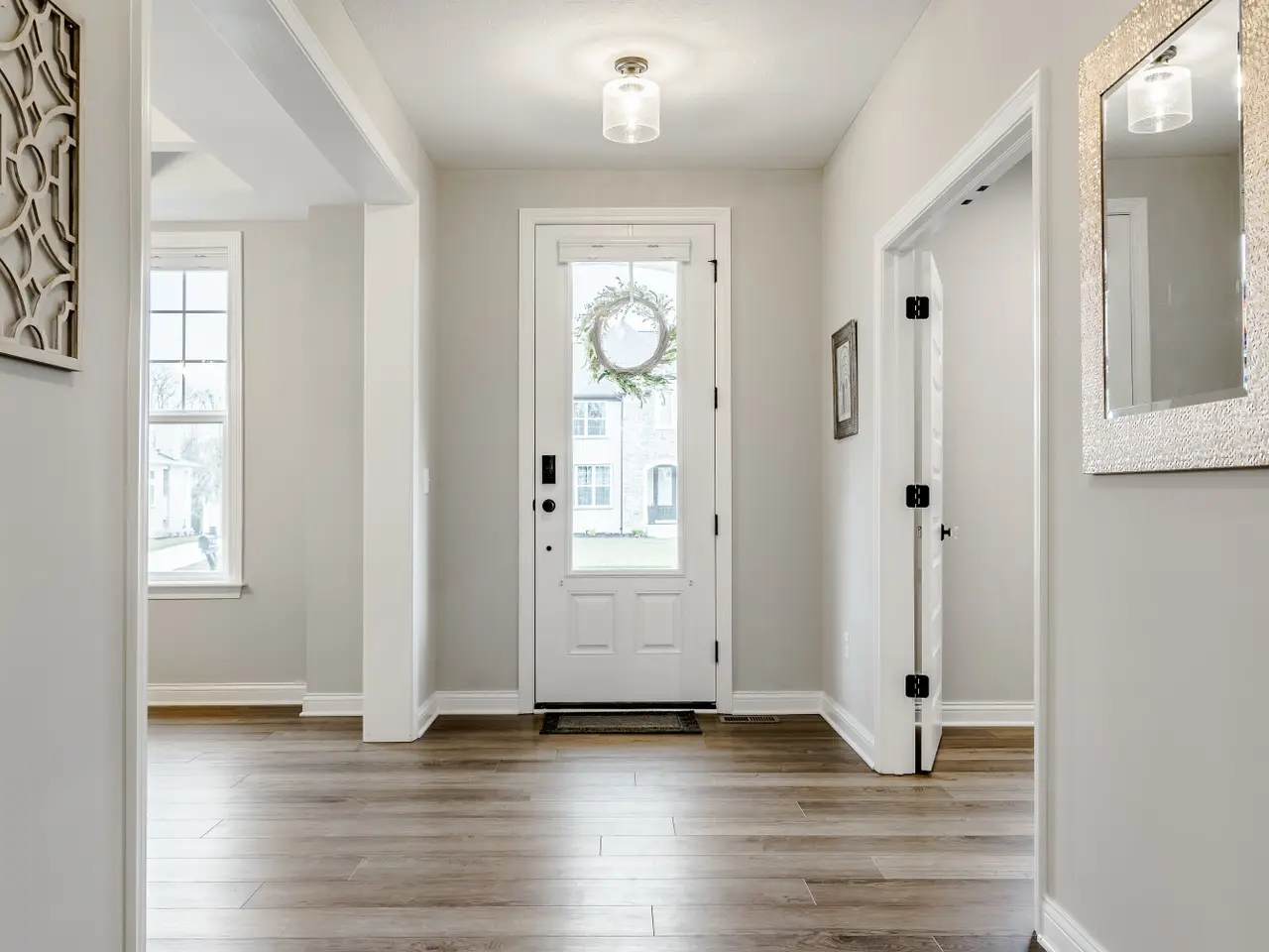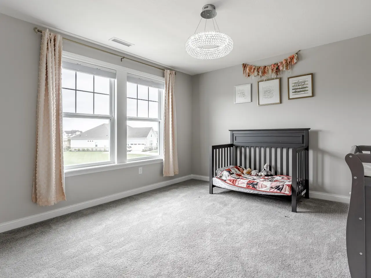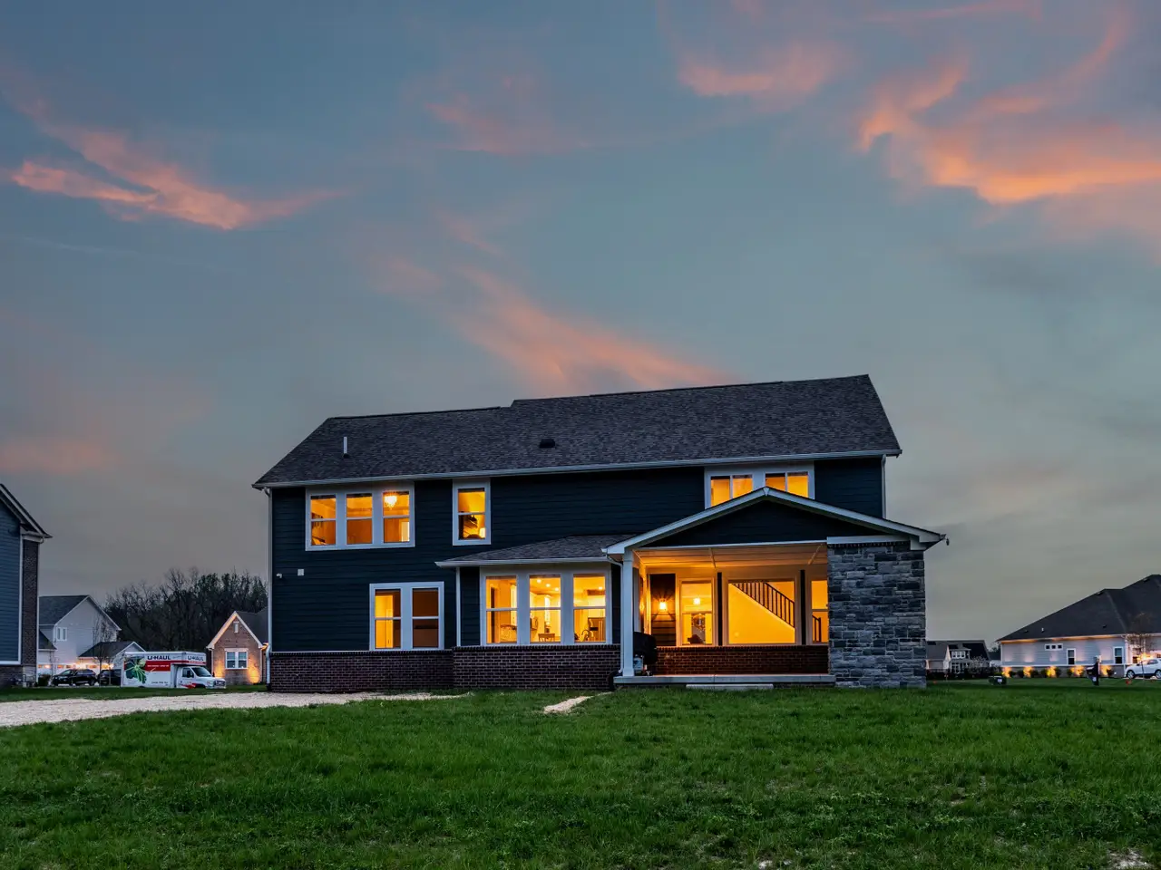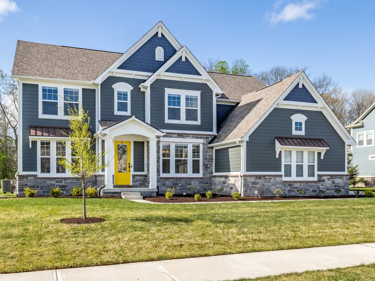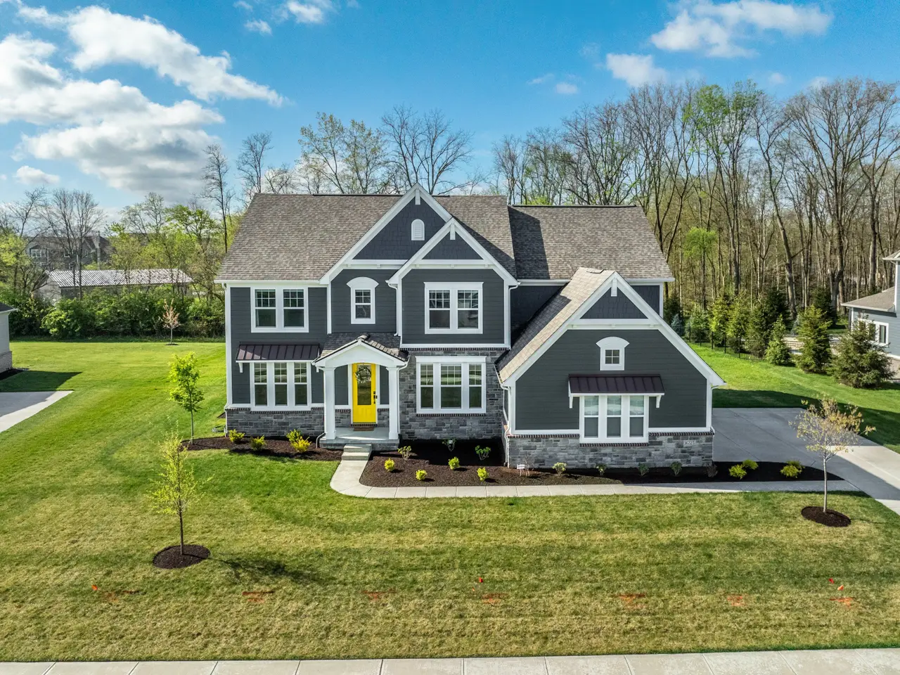 Luxury living at its finest! This immaculate five bedroom, 4.5 bath home was built in 2023 and is now ready for its next owner. The home boasts ample natural light, an open living room centered around a fireplace, and an oversized kitchen with a large island, extensive countertop space, and walk-in pantry. Upstairs, you'll find a spacious 20x16 bonus room and four bedrooms, including a primary suite with tray ceilings, a tiled dual system shower, and a spacious walk-in closet. The conveniently located laundry room is just outside the primary suite. The basement living area is equipped with surround sound, perfect for movie or game nights, and features a wet bar. Additionally, there is a fifth oversized bedroom and a full bathroom downstairs, ideal for guests. Ample storage space is available for a home gym. Situated on a quiet, half-acre private lot lined with trees, the property includes a covered patio with an outdoor fireplace - an ideal spot to enjoy your morning coffee. Located on the edge of Fishers/Fortville, this home is within walking distance of Flat Fork Creek Park, with shopping, grocery stores, and amenities nearby. The property also comes with a 4-year roofing system and 10-year structural warranties that are transferable.