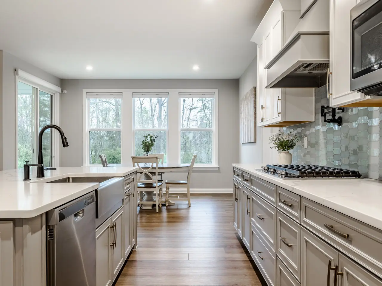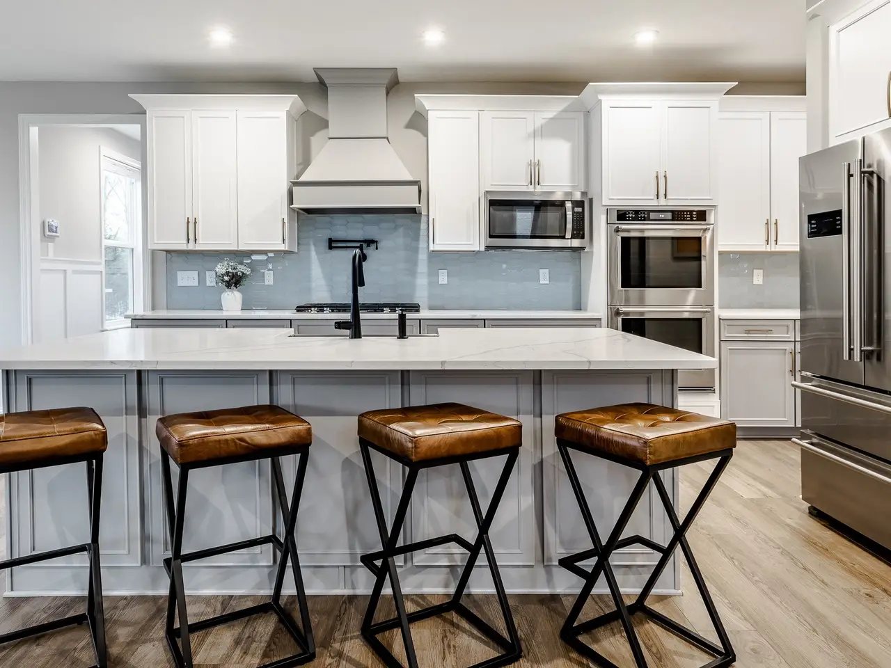 Oversized kitchen with large island and walk-in pantry