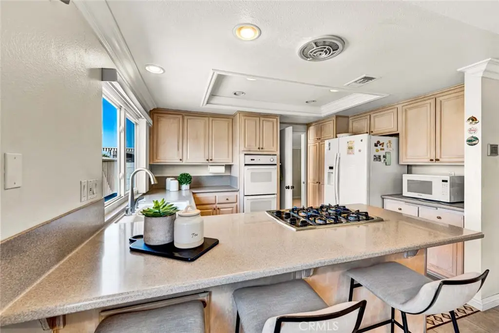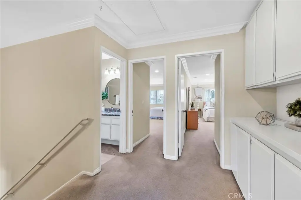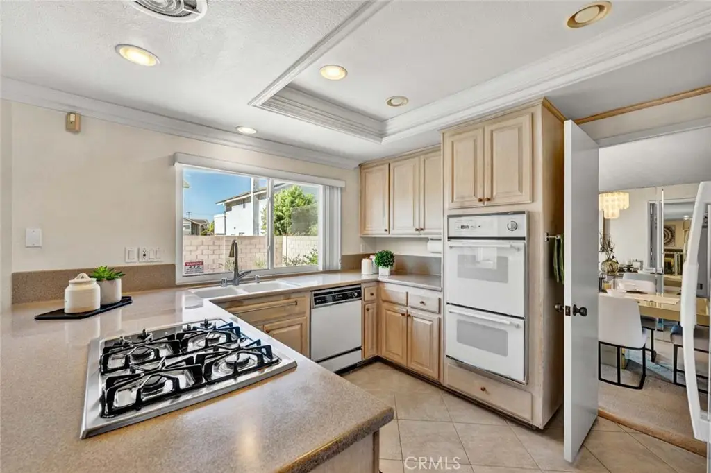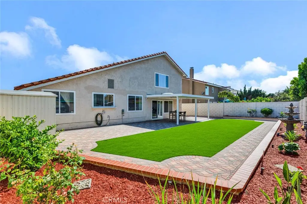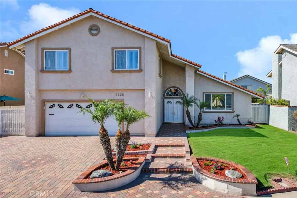 This meticulously maintained Award Estates home--on the market for the first time in 46 years--is located near the end of a quiet cul-de-sac in one of Fountain Valley's premier neighborhoods, just steps to the park and close to top-rated schools. It offers full double-gated RV parking and an oversized 2.5-car epoxy-finished garage plus 3-car driveway. The desirable floorplan includes a downstairs bedroom and bath, while two of the upstairs secondary bedrooms have been dramatically expanded with spacious retreat areas--one featuring a custom-organized walk-in closet and the other with dual full-size mirrored closets. The picture-perfect interior showcases vaulted ceilings, central A/C, newer furnace, dual pane windows, recessed lighting, mirrored closets, and extensive crown molding throughout. Exceptional curb appeal includes lush landscaping, tropical foliage, raised planters with lighting, Spanish title roof, and a beautifully patterned interlocking paver driveway and walkway with lighting leading to double entry doors with a Palladian transom window. Step into the grand tiled foyer with a soaring two-story ceiling and medallion inlay, then into the elegant formal living and dining rooms, enhanced by a custom mirrored wall. The remodeled kitchen is a chef's dream, featuring clean Corian countertops, breakfast bar, coffered ceiling, tile flooring, double ovens, gas cooktop, natural wood cabinetry with some pull-outs & large pantry, plus a secondary walk-in pantry cleverly built from the space under the staircase. The kitchen flows into a casual dining area that overlooks a striking family room with a fireplace, built-in shelving, and a wall of sliding glass doors leading to a serene backyard oasis. Enjoy the private outdoor retreat with interlocking paver patio, pristine artificial lawn, raised planters, tranquil fountain, and block wall fencing--perfect for entertaining or relaxing. Electricity has been added to both the front and rear yard for convenience. The luxurious primary suite offers a vaulted ceiling, retreat area, and two massive walk-in closets. All three bathrooms have been exquisitely remodeled with granite countertops, upgraded fixtures, and intricate tile work with inlays on the floors, walls, and full-height shower surrounds. The spa-like primary bath includes dual sinks, a sit-down vanity, and a tiled shower with a built-in bench. This exceptional, turnkey home truly has it all!