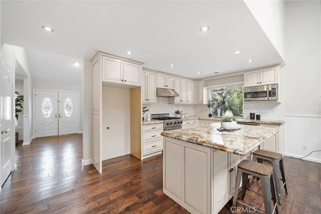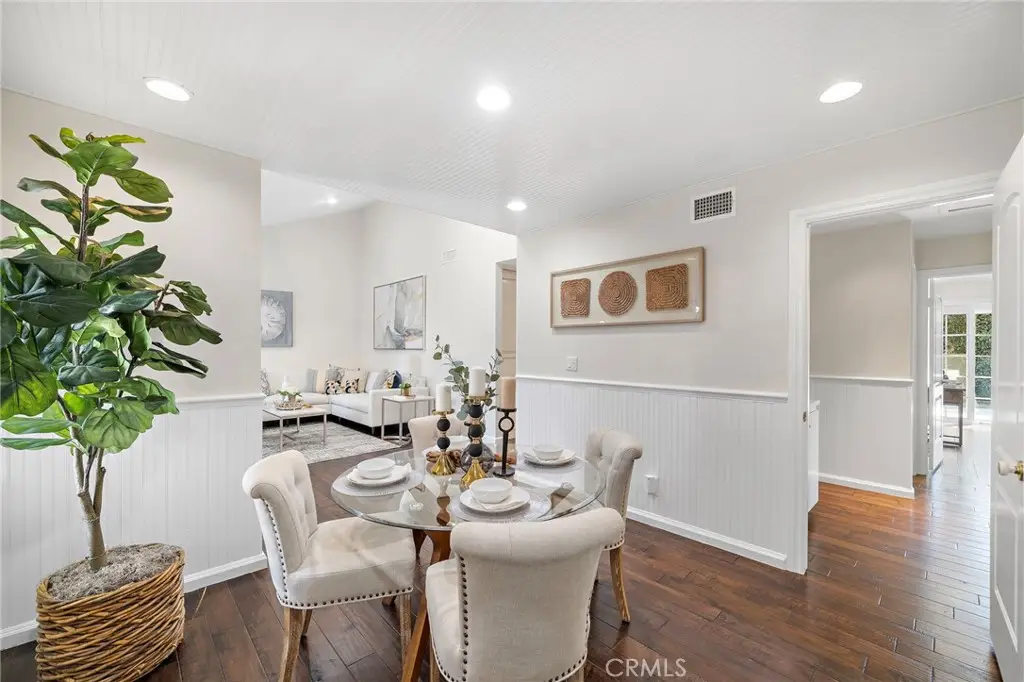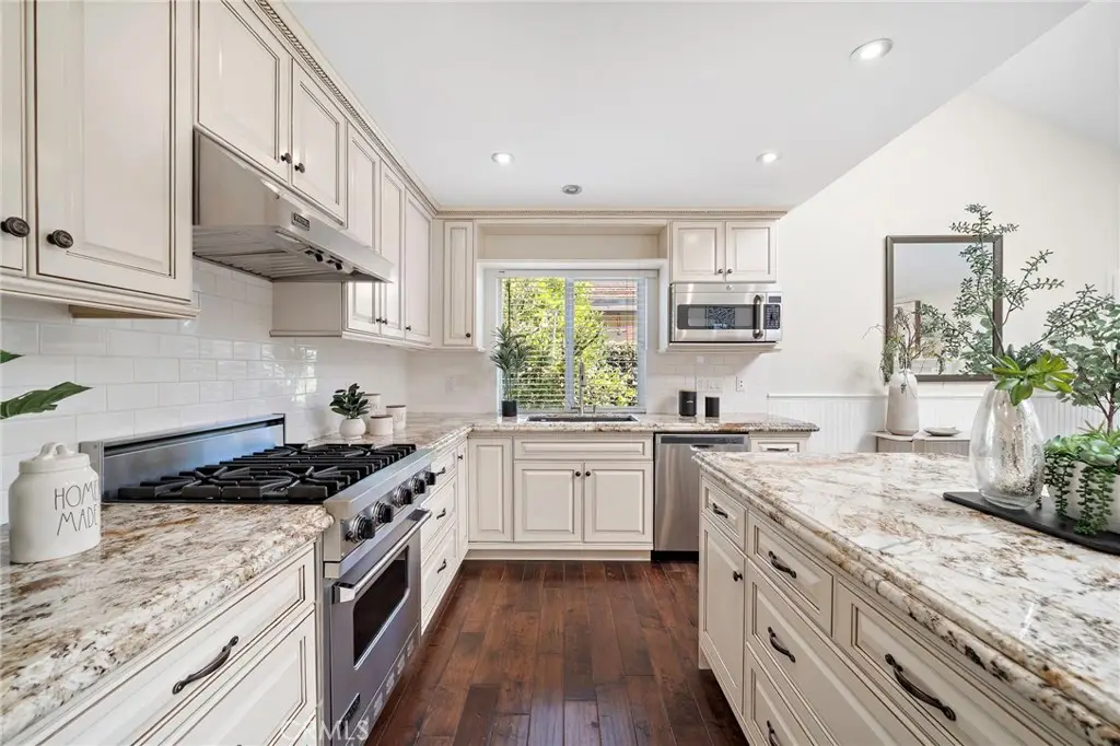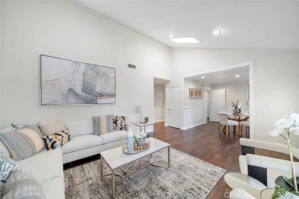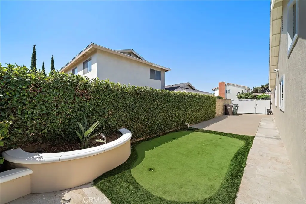 Nestled in the highly sought-after neighborhood of Parkside Estates in the heart of Fountain Valley, just steps from Mile Square Park and Golf, this stunning single-story gem offers an exceptional blend of elegance, comfort, and modern upgrades. Boasting over 1,550 square feet of living space with soaring vaulted ceilings that create an even more expansive and airy feel, complemented by dual-pane windows and skylights that flood the home with natural light. This meticulously maintained residence features central A/C, new interior and exterior paint, engineered hardwood floors throughout, newer Viking appliances, low maintenance backyard with putting green and large gated RV driveway. The impressive curb appeal welcomes you with a lush front lawn and a charming covered entryway leading into a grand living room. Enjoy hosting family and friends in your separate formal dining room. While the chef's kitchen is an absolute showstopper--featuring granite countertops, subway tile backsplash, recessed lighting, a Viking 5-burner gas cooktop, vent hood, Viking dishwasher, and custom self-closing drawers, all centered around a long kitchen island. The kitchen seamlessly flows into an inviting family room with rich wood flooring, a dramatic cathedral ceiling with cozy fireplace, and sliding glass doors that open to a backyard oasis--complete with a covered patio, built-in BBQ with gas firepit, block wall fencing for privacy, putting green, and fruit trees, making it ideal for entertaining, family gatherings, or serene relaxation. The luxurious primary suite is a private retreat, boasting a cathedral ceiling, mirrored wardrobe and direct access to the backyard. Two additional spacious bedrooms, an upgraded guest bathroom with pedestal vanity and tub/shower combo. The direct-access garage is newly painted and provides ample storage. All of this, plus award-winning schools, a short drive to the beach, shopping, dining, and easy freeway access--this is Southern California living at its finest!
