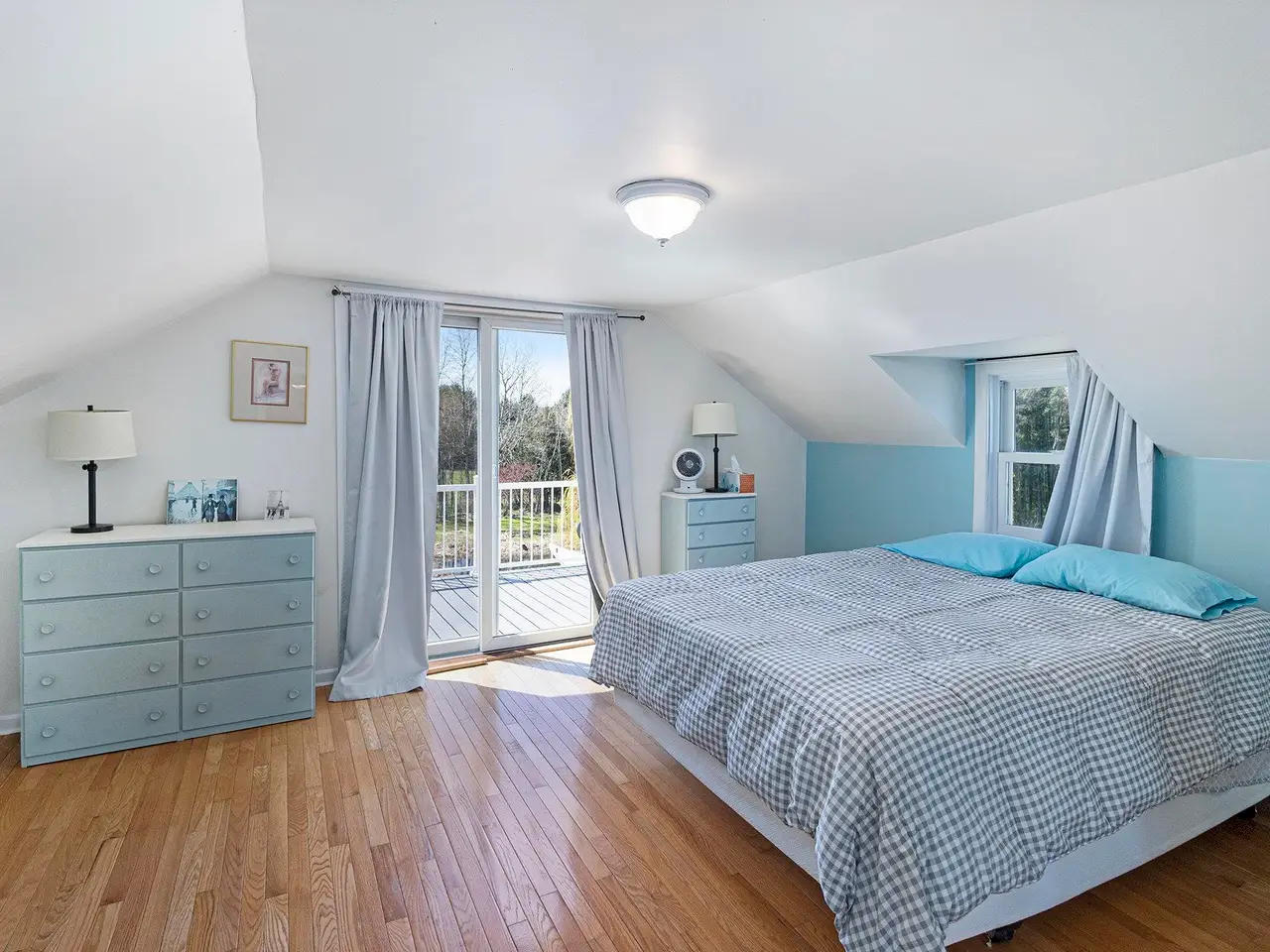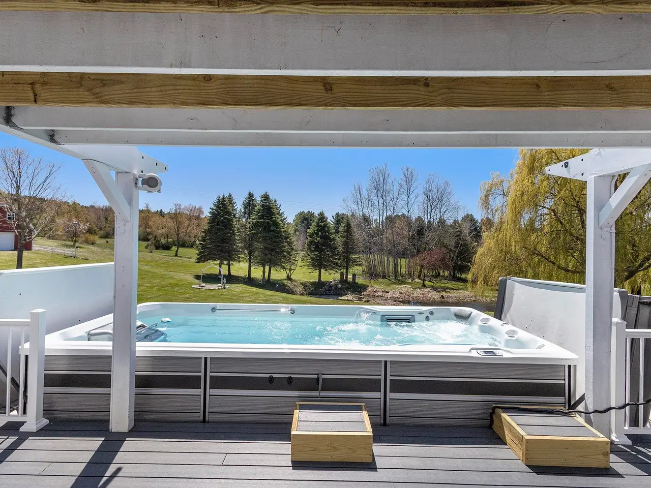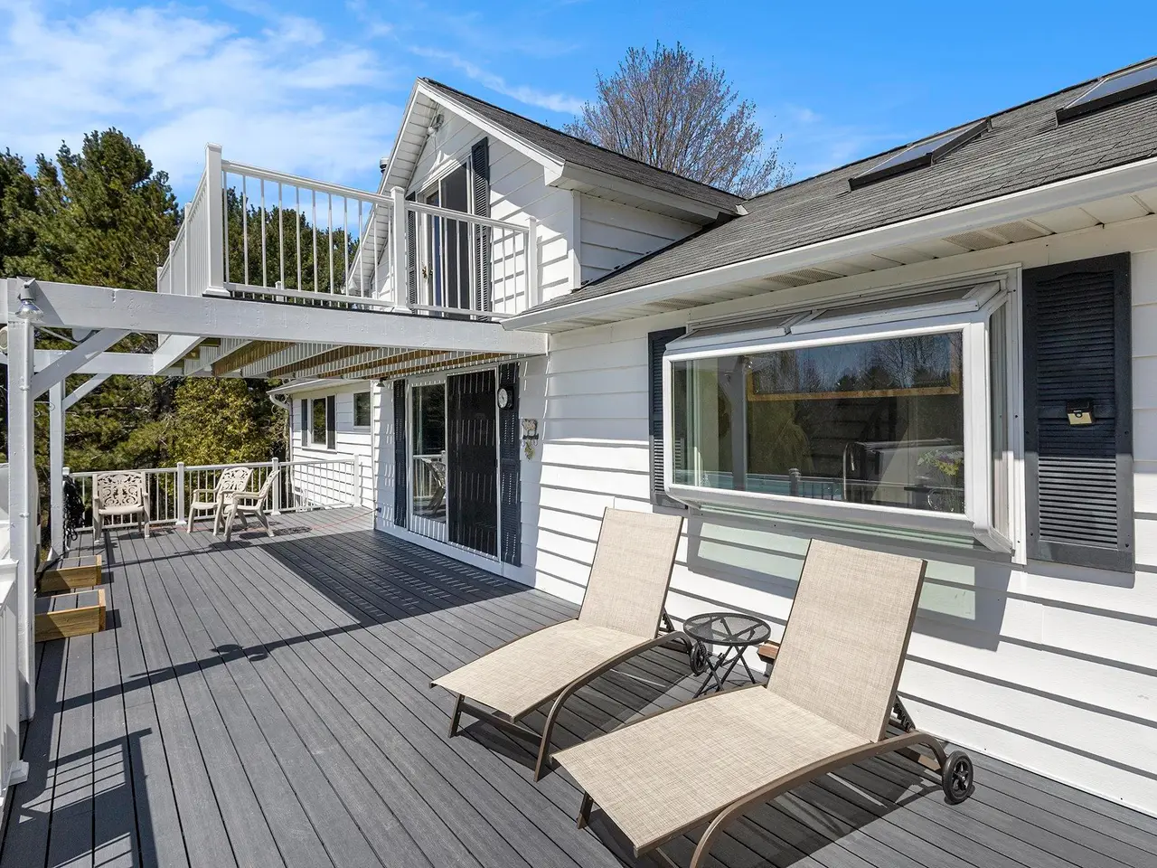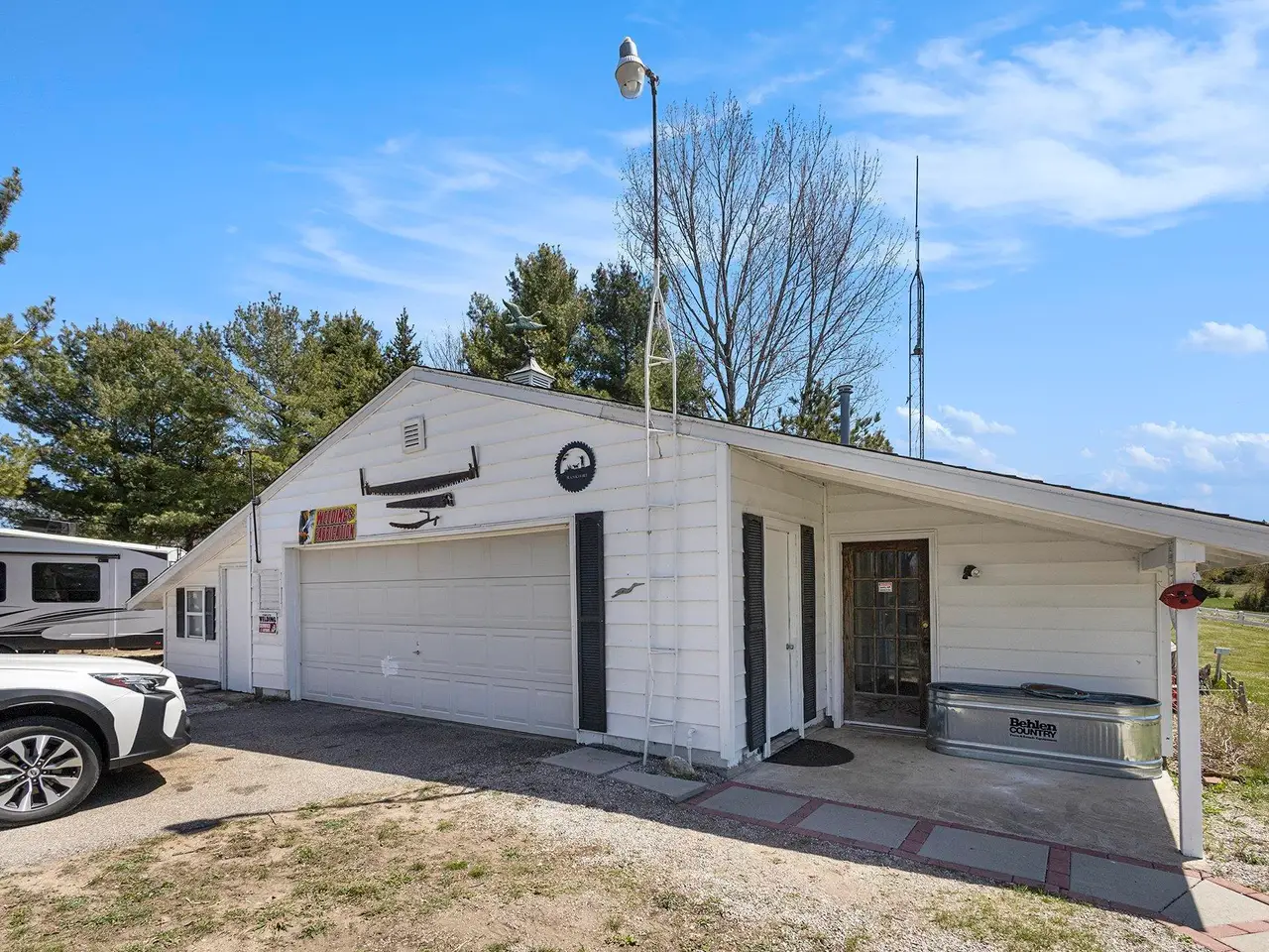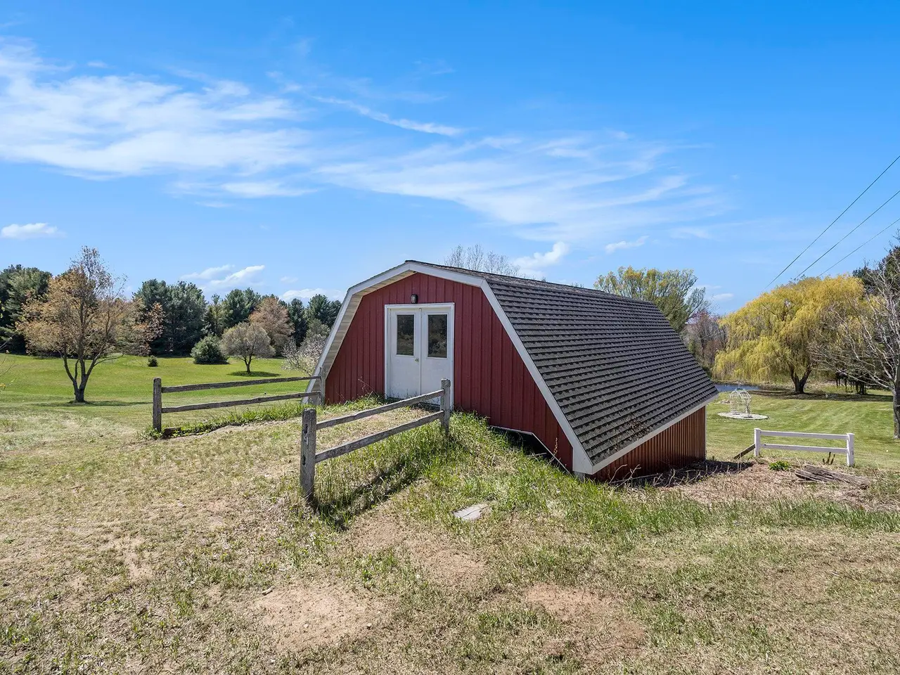 This remarkable home and property offers stunning and peaceful views that can truly be appreciated during a visit. Nestled on 25 beautiful acres of rolling woodlands, white pine groves, and open areas perfect for farming and gardening, this property also includes a shooting range and hunting blinds. The residence features nearly 2,300 square feet of remodeled living space, including an updated kitchen with elegant cabinets and quartz countertops. The bathrooms have been renovated, and hardwood floors enhance the interior. The living room has a newer gas fireplace, and the family room includes a high-efficiency wood-burning stove. A lovely 12 x 40-foot Trex deck overlooks the grounds, complemented by a second-floor balcony and charming brick-paver retaining walls, as well as a swim/spa pool. The patio is a generous size, designed with a durable concrete slab, and there is a whole-house generator. The master bedroom includes an en-suite with a walk-in bathtub. A spacious garage of about 1,000 square feet has electricity and natural gas heating. The pole barn features a concrete floor and has an upper-level loft with a private entry, providing versatile usage options. The grounds are diverse, featuring raspberry bushes, wild asparagus, mushrooms, and many apple trees. With ample land available, this property has great potential for future development or could serve as a family compound or campsite. It includes a serene pond and is serviced by a second well. The best way to fully appreciate all the impressive features is to visit in person, so please take the time to explore this exceptional property. Additionally, just 2.5 miles away is Grace Road Beach on Lake Michigan, enhancing the appeal of this location.