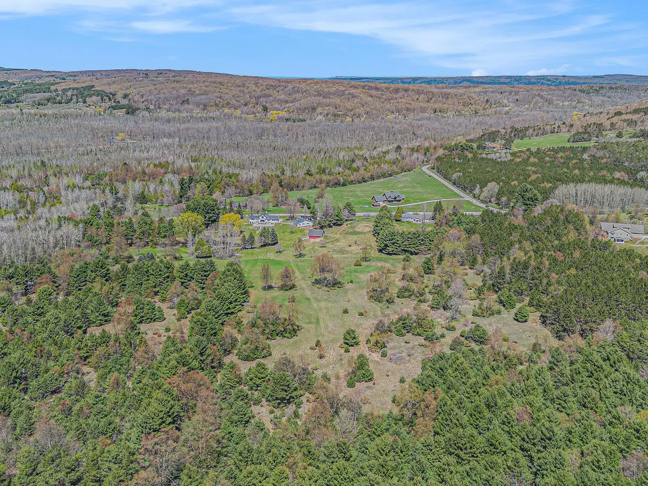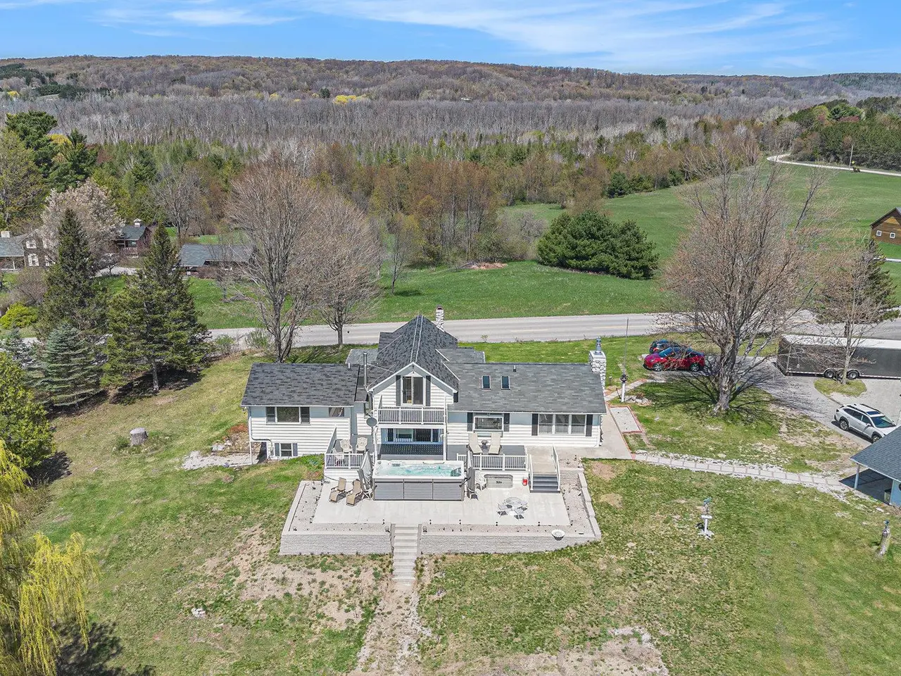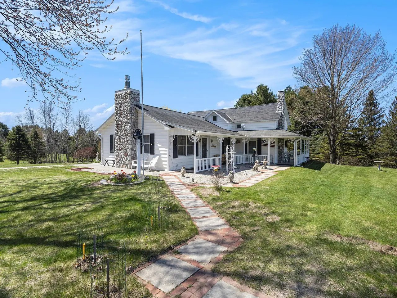 This remarkable home and property offers stunning and peaceful views that can only be fully appreciated with an in-person visit. Situated on 25 beautiful acres of rolling land filled with landscaped woods and spaces ideal for farming and gardening, this unique residence is perfect for outdoor enthusiasts, featuring a shooting range and hunting blinds. The home offers nearly 2,300 square feet of tastefully remodeled living space. The kitchen showcases elegant cabinets and quartz countertops, with updated bathrooms and mostly hardwood flooring throughout. The living room includes a newer gas fireplace, while the family room features an efficient wood-burning stove. Enjoy the outdoors on a charming 12 by 40-foot deck, a second-floor balcony, and a spacious patio with a reinforced concrete slab. Additional highlights include a whole house generator, an en-suite master bedroom with a walk-in bathtub, a large garage, and a versatile pole barn. The property also features various plants, including raspberry bushes and apple trees, making it a wonderful opportunity for families or potential development. A serene pond is onsite, and Grace Road Beach on Lake Michigan is conveniently located just 2.5 miles away. The best way to appreciate everything this property has to offer is to visit and explore.