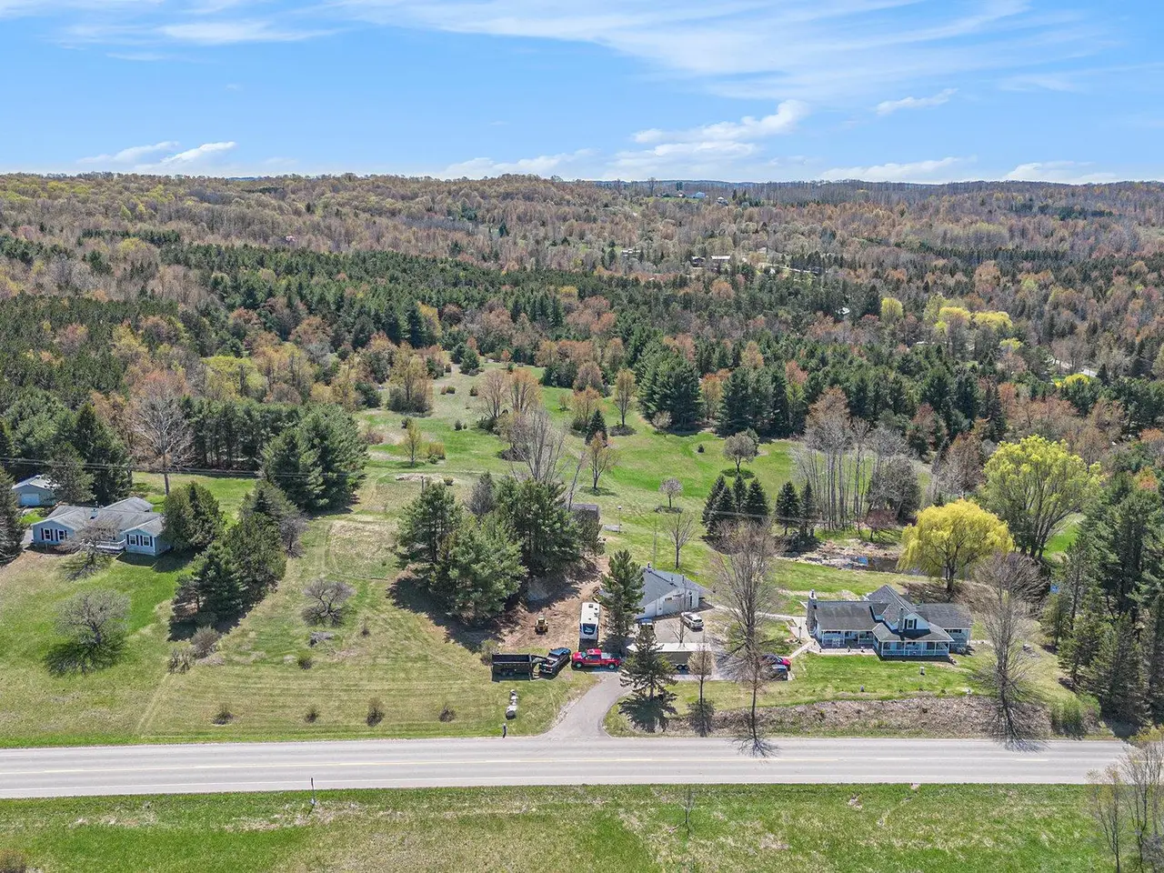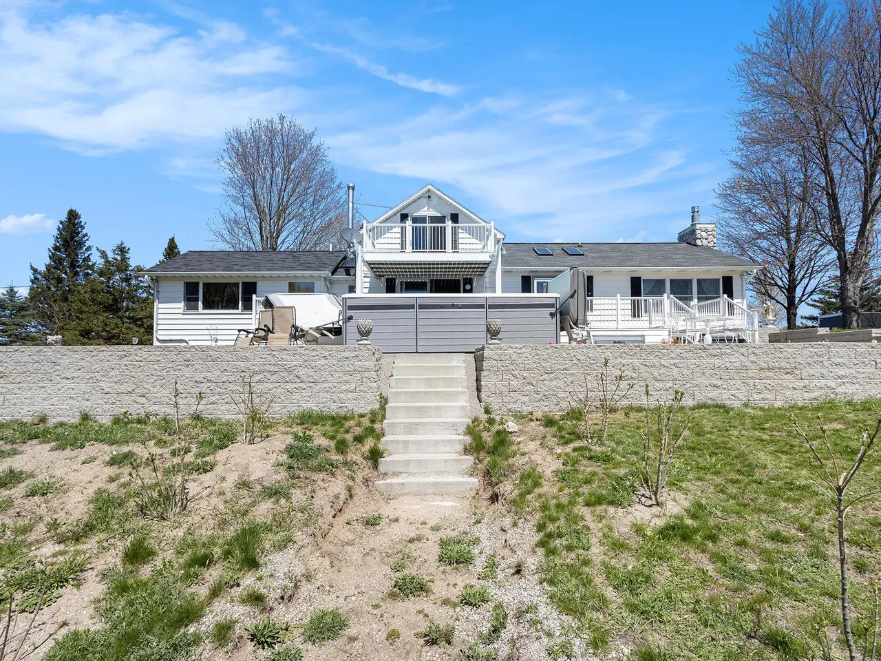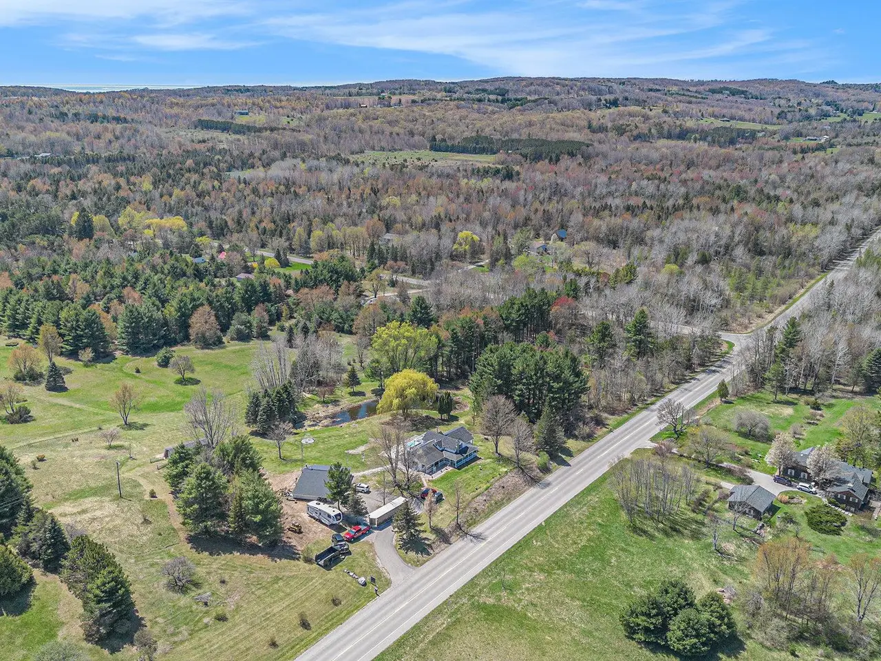 This remarkable home and property offers stunning and peaceful views that can only be fully appreciated with an in-person visit. Situated on 25 beautiful acres of rolling land filled with landscaped woods and spaces ideal for farming and gardening, this unique residence is perfect for outdoor enthusiasts, featuring a shooting range and hunting blinds. The home offers nearly 2,300 square feet of tastefully remodeled living space. The kitchen showcases elegant cabinets and quartz countertops, with updated bathrooms and mostly hardwood flooring throughout. The living room includes a newer gas fireplace, while the family room features an efficient wood-burning stove. Enjoy the outdoors on a charming 12 by 40-foot deck, a second-floor balcony, and a spacious patio with a reinforced concrete slab. Additional highlights include a whole house generator, an en-suite master bedroom with a walk-in bathtub, a large garage, and a versatile pole barn. The property also features various plants, including raspberry bushes and apple trees, making it a wonderful opportunity for families or potential development. A serene pond is onsite, and Grace Road Beach on Lake Michigan is conveniently located just 2.5 miles away. The best way to appreciate everything this property has to offer is to visit and explore.