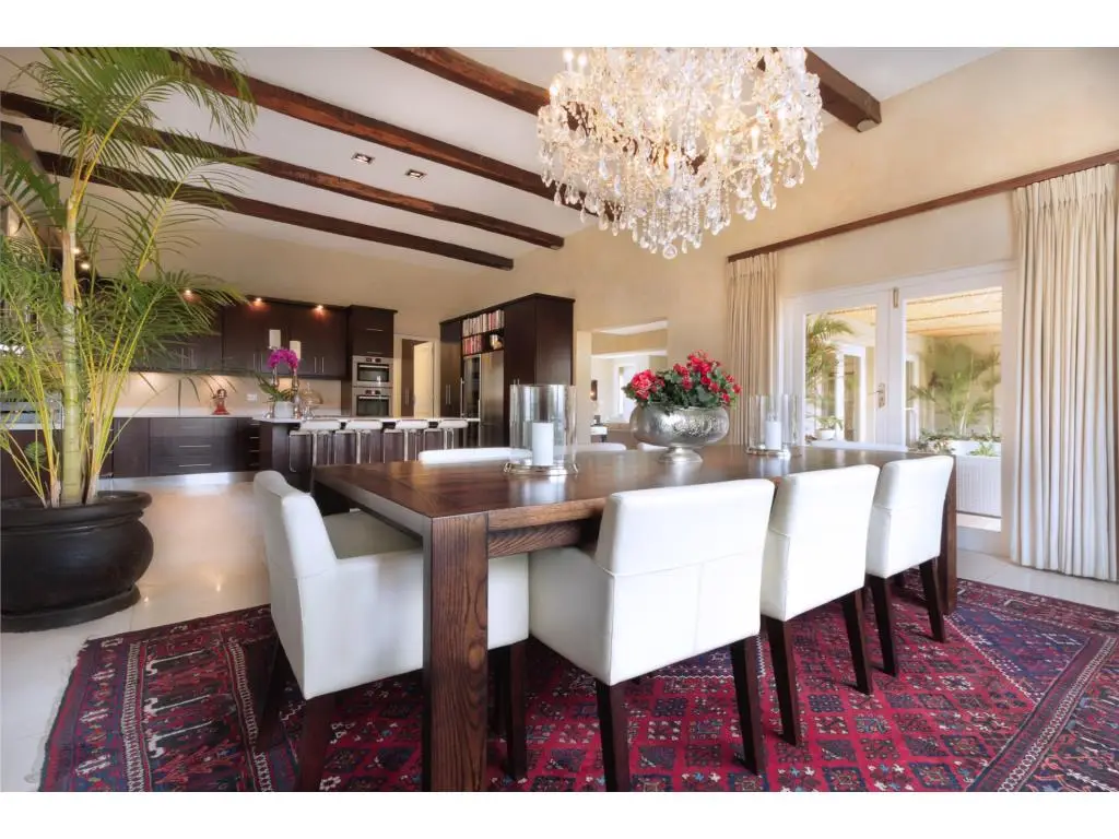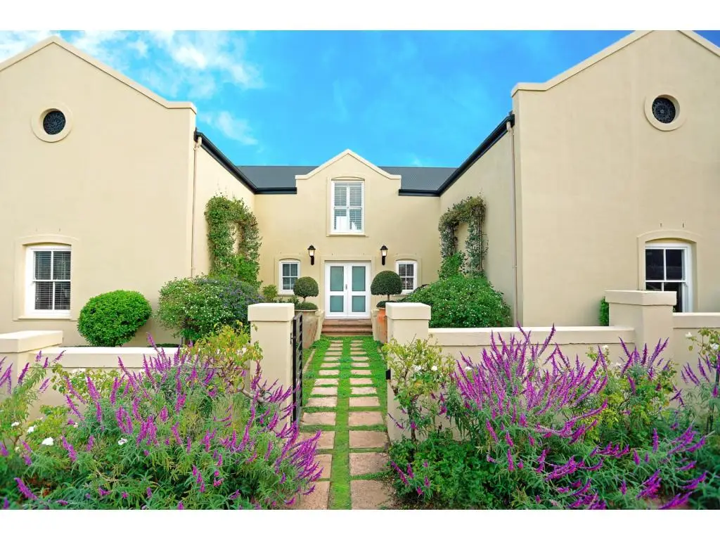 Nestled in the heart of Franschhoek Valley's picturesque Domaine Des Anges estate, this exceptional home offers a sophisticated lifestyle for discerning families. The secure estate boasts a clubhouse (available for private rentals), a tranquil pool, a fitness centre, and floodlit tennis court. The property's unique placement near vineyards creates a romantic, almost private vineyard ambiance. Serene ponds attract abundant birdlife, fostering a peaceful atmosphere. Conveniently located within walking distance of Franschhoek village, residents enjoy easy access to acclaimed restaurants, boutiques, wineries, and cultural attractions. This contemporary residence features three spacious bedrooms, each with their own luxurious en suite bathroom, as well as a well appointed guest powder room for guests.. A versatile wine cellar could easily serve as a quiet home office. The home's design flows seamlessly from the entrance hall to a cozy living area with fireplace, opening onto a covered terrace and meticulously landscaped garden. A central koi pond and water feature grace the patio, while a private hot tub spa is tucked away in a secluded garden corner. A charming conservatory, complete with seating, offers a delightful spot for outdoor dining. The double volume dining and kitchen area, located on the home's right wing, features a stunning chandelier. A double garage and guest parking are provided. The property also includes a 5kW battery and inverter system, with solar panel installation potential. Every detail reflects meticulous craftsmanship, creating a space that is both beautiful and functional. Breathtaking panoramic mountain views, visible from the master bedroom deck and lower garden, are a truly exceptional feature. These vistas, combined with the nearby vineyards, create a daily spectacle of natural beauty.