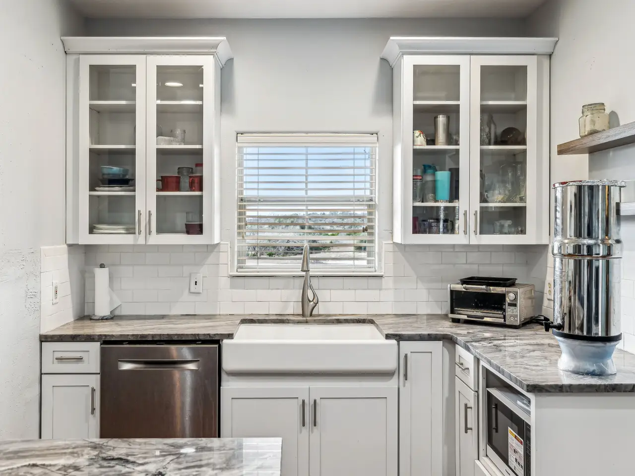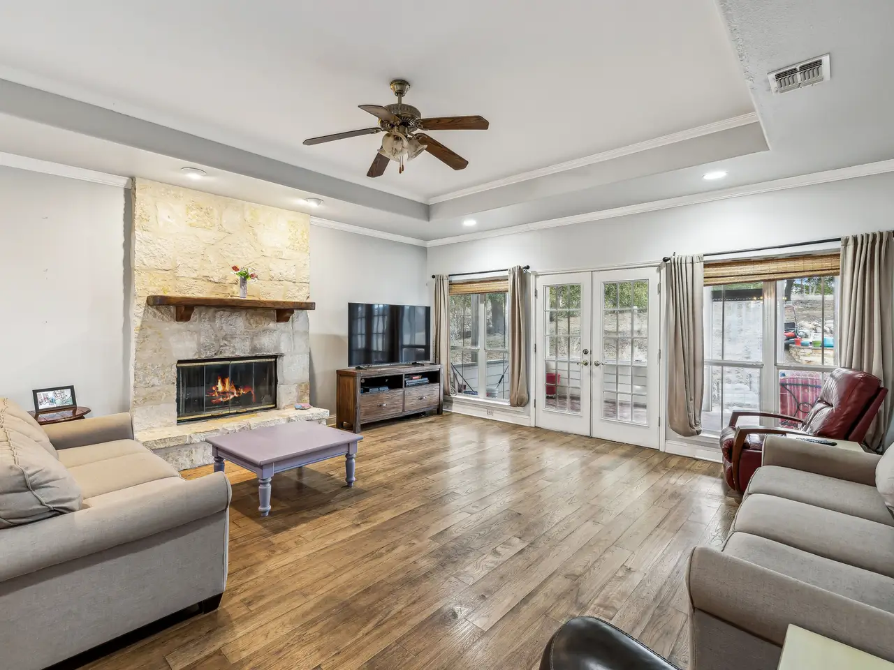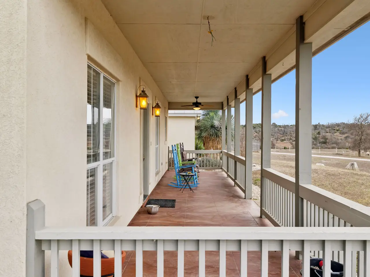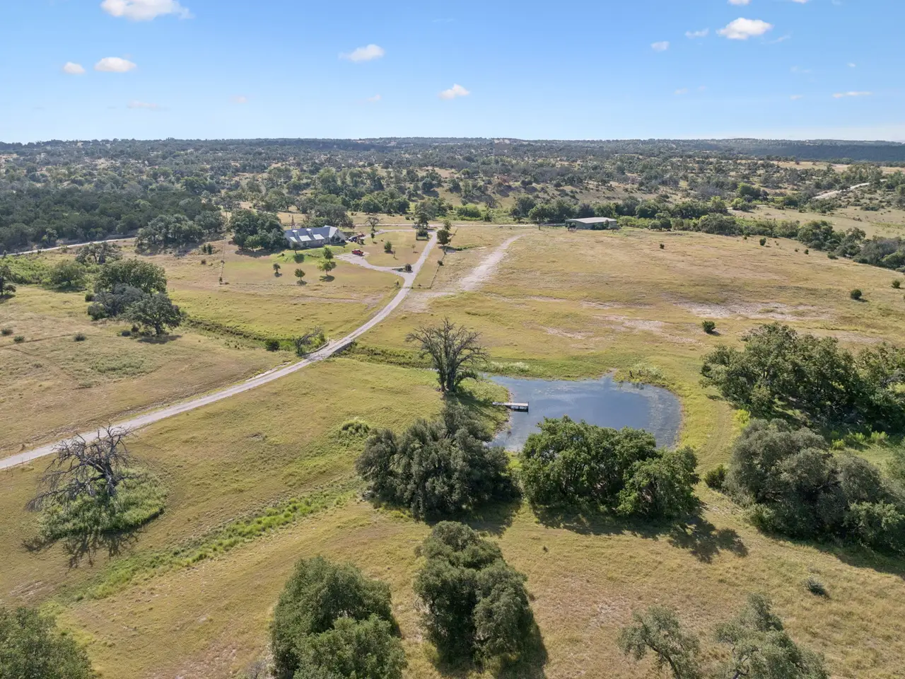Nestled on 39 acres of gently rolling Hill Country terrain, this exceptional 4-bedroom, 2-bathroom home offers both comfort and functionality. The thoughtfully designed split floor plan includes a dedicated office, formal dining room, and a spacious living area with soaring ceilings and a cozy fireplace. The heart of the home is a chef's dream kitchen featuring stunning quartzite countertops, a large island, and two oversized pantries for ample storage. A mudroom off the two-car garage adds convenience. Retreat to the primary suite, where two oversized walk-in closets provide plenty of space. Step outside to enjoy the expansive screened-in porch - perfect for soaking in the peaceful surroundings. The property is fully fenced and cross-fenced, complete with a barn, two wells, and a spring-fed pond with a beautiful water feature. Ideal for those seeking privacy, space, and the beauty of the Hill Country, this property is a rare find!