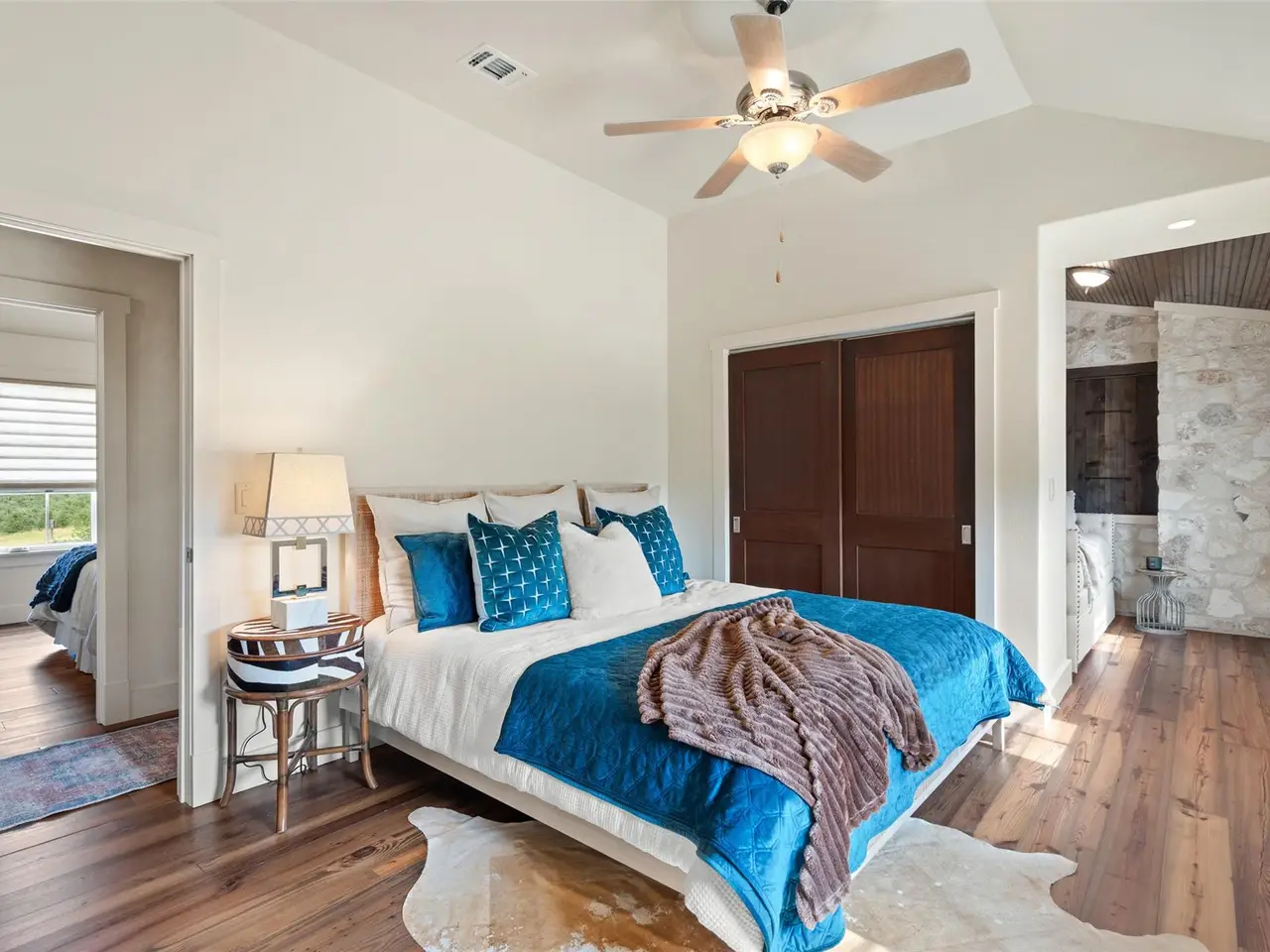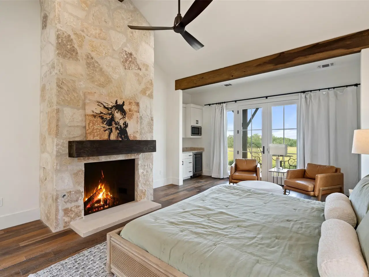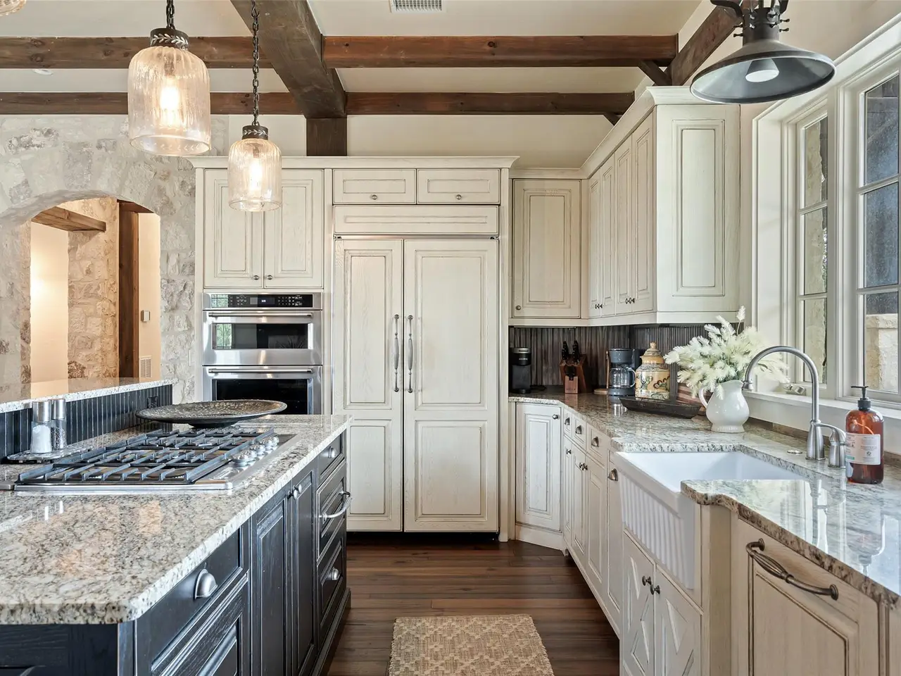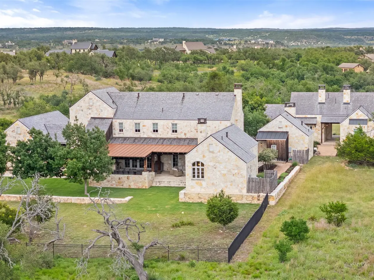 OPEN HOUSE ATTENDEES MUST REGISTER WITH AGENT! Discover the perfect blend of rustic charm and refined living in this expansive custom-built 6-bedroom, 6.5-bath, 5,637-square foot ranch-style retreat--featuring 3 private casitas, ideal for multigenerational living or hosting guests in style. Nestled in the heart of the Hill Country on 2.54 acres, this serene property offers comfort, flair, and Texas hospitality. Inside, you'll find a beautifully crafted interior that brings the outdoors in, with rich wood beams, interior limestone walls, custom cabinetry, and hand-selected moldings throughout. The great room impresses with soaring ceilings, abundant natural light from large windows, and one of the home's five wood-burning fireplaces. The kitchen is a chef's dream, featuring granite countertops, a 6-burner stove, and a wet bar perfect for entertaining. Bar top seating along with a formal dining area, a walk in pantry and generously sized laundry room complete the space. The property's two spacious indoor living areas offer plenty of room to relax or host, while plantation shutters and hardwood floors from a distillery add timeless charm and privacy. The owner's retreat is a true sanctuary, featuring its own fireplace and thoughtful upgrades throughout. Whether you're looking for a private getaway, or a place to host family and friends, this home offers it all--luxury, warmth, and tranquility. Step outside to expansive outdoor living spaces, where multiple patios invite dining, lounging, and entertaining under the Texas sky. Enjoy peaceful views from the covered patio or gather around one of the fireplaces for a cozy evening under the stars. Boot Ranch is a private, gated community spanning 2,080 acres, featuring a top-tier golf club, three heated pools, a pavilion with a bar and grill, tennis courts, pickleball, basketball, a fitness center, Longhorn Lake, a shooting range, bike trails, and a market center--all just 4 miles from the nearest grocery store.