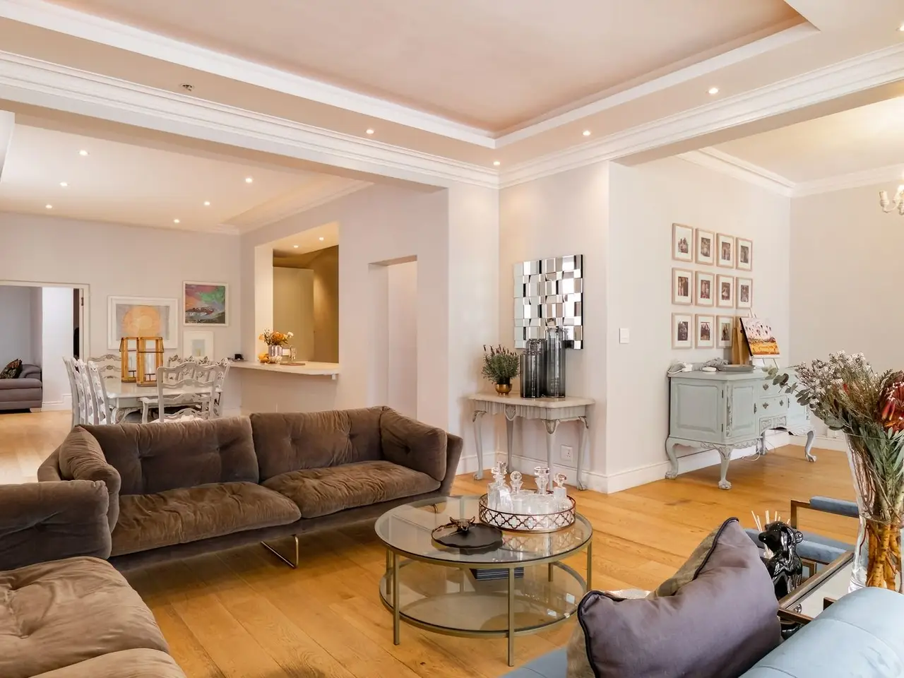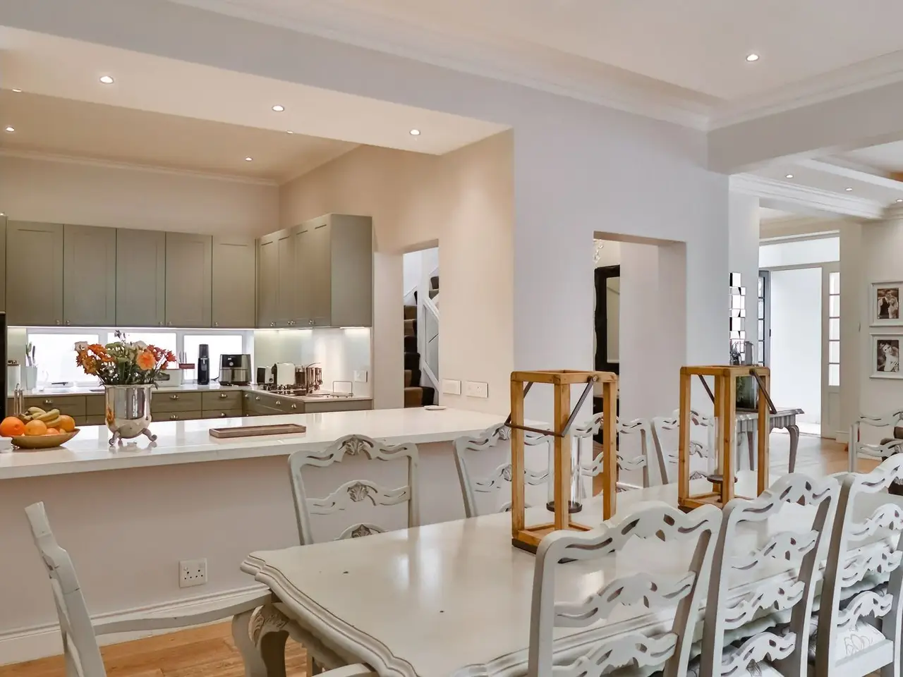 Super open plan living all flowing to entertainment patios and pool area. Separate family room with fireplace flows to deck and pool. 5 bedrooms 3 en suite. Private patio off main bedroom. 3 car garaging and staff quarters, plus storage space. Alarm and electric fence.