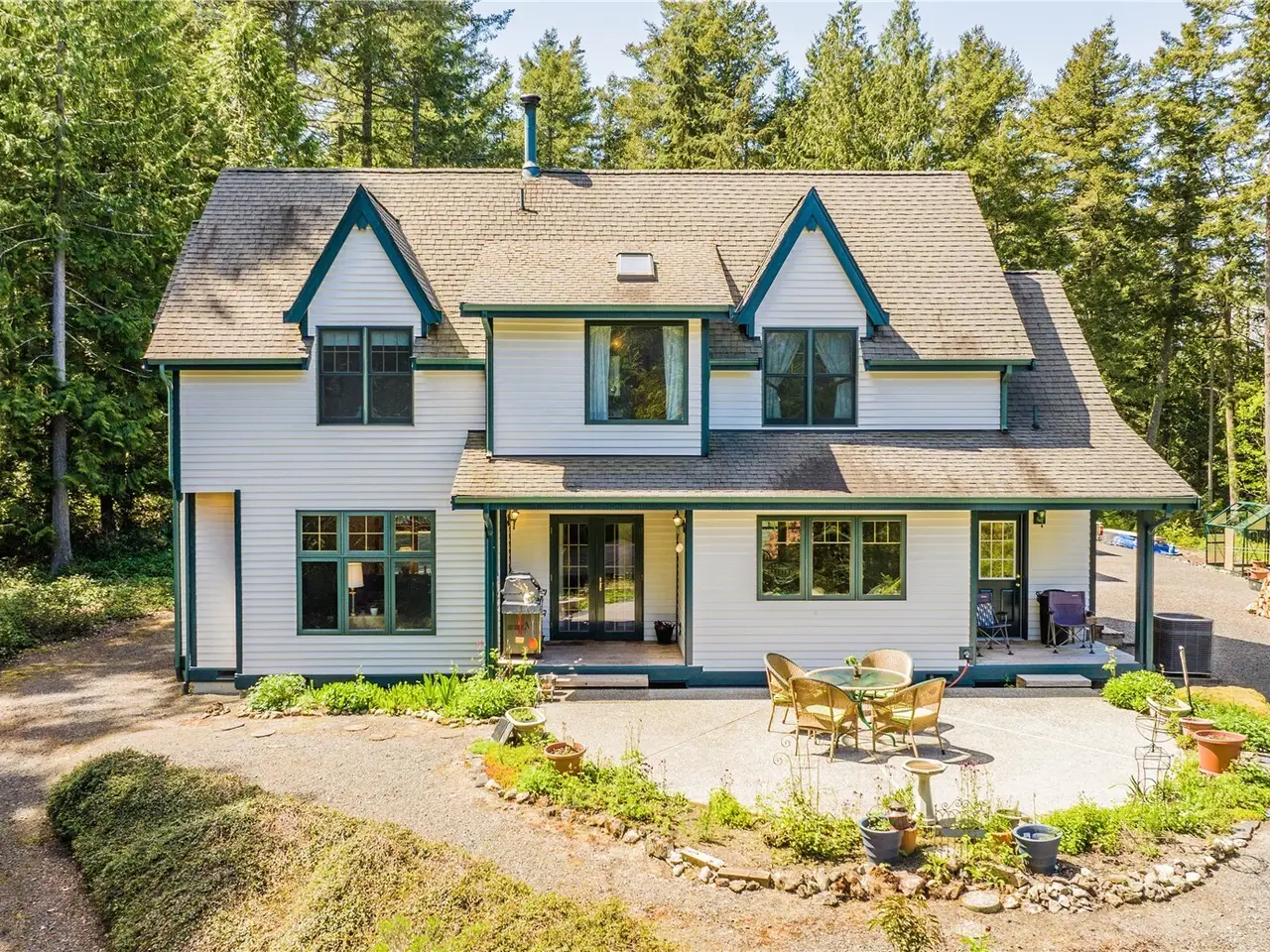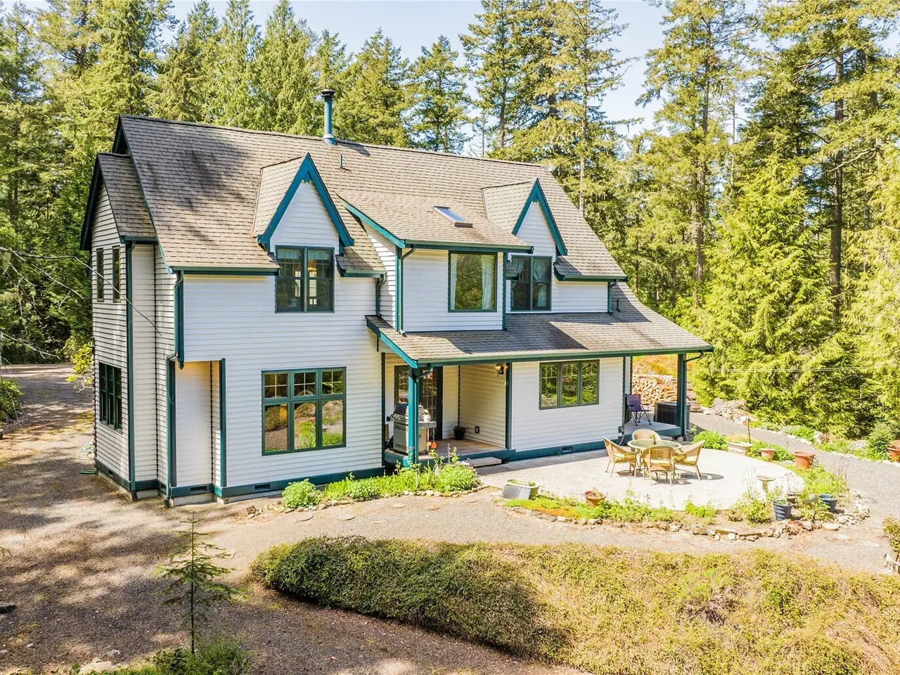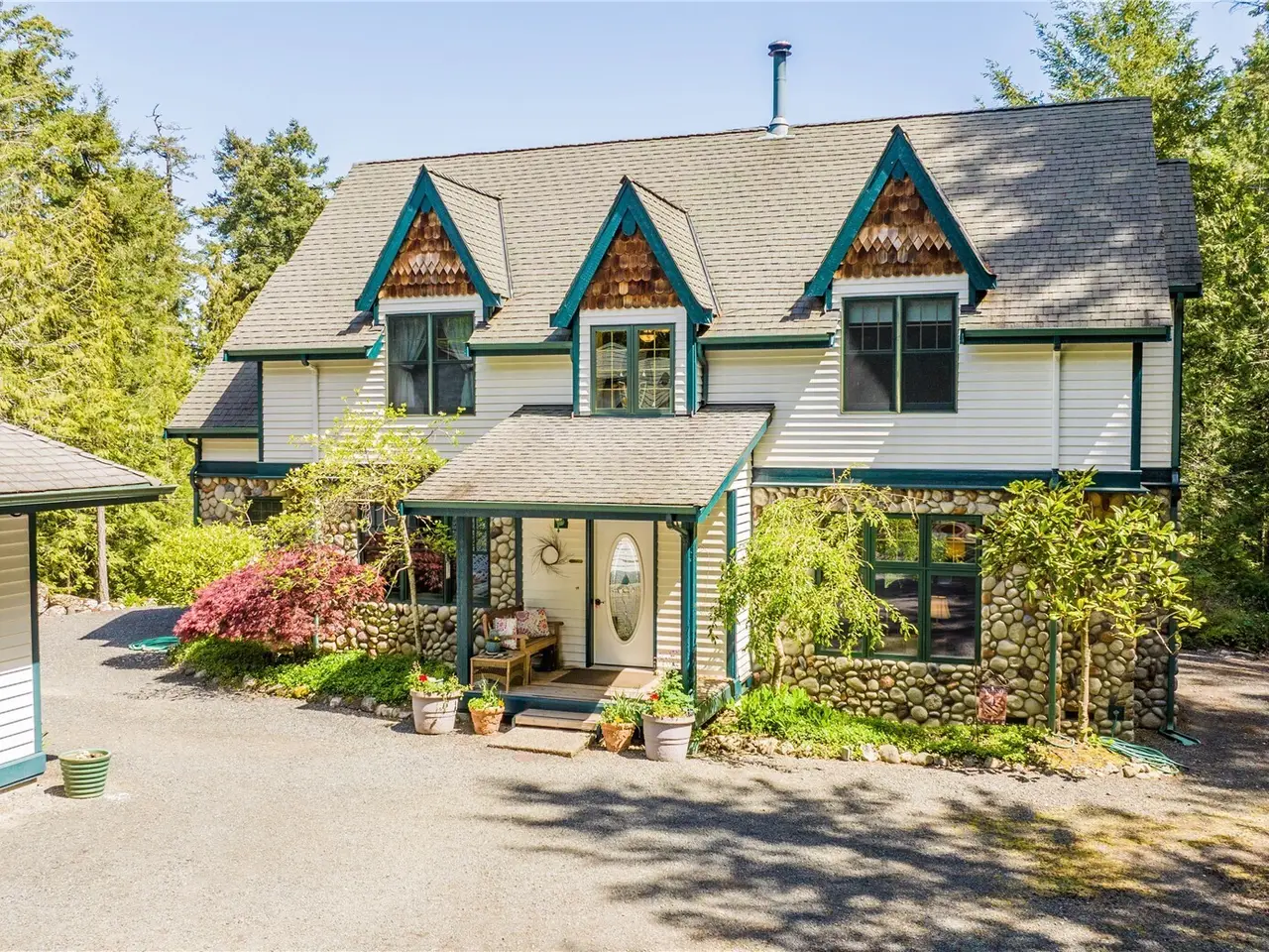 Impeccably maintained cottage nestled in the heart of San Juan Island! Peaceful, private haven on 5+ wooded acres. Welcoming living area boasts a wood burning fire w/river rock surround, vaulted ceilings w/box beams & oversized windows- lots of natural light. Open kitchen offers plentiful cabinet space, corian counters & adjoining large dining space, all w/ box beams+ tongue & groove ceiling. Powder rm & mud rm on main. Upstairs, find an oversized primary suite, vaulted ceilings, ensuite bath w/jetted tub & shower. 2 add'l generous bedrooms. Custom woodwork & millwork details throughout! 960 SF detached shop w/200 amp service. Large patio w/room to enjoy outdoors. Show stopping perennial garden surrounds the home. A rare island gem!