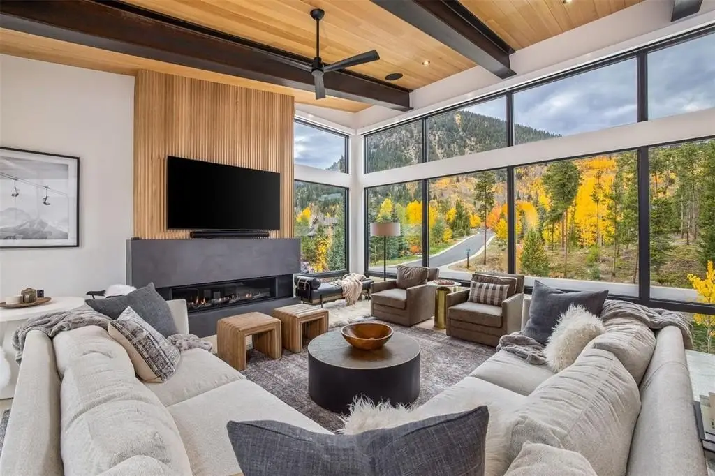 Expansive windows with mountain views