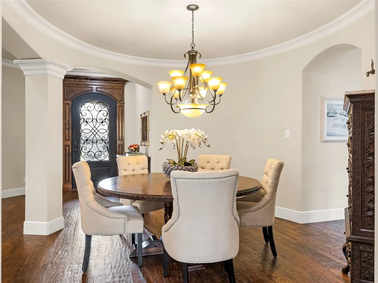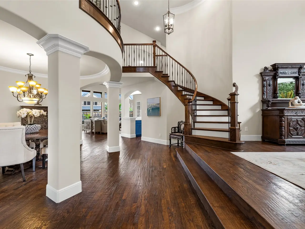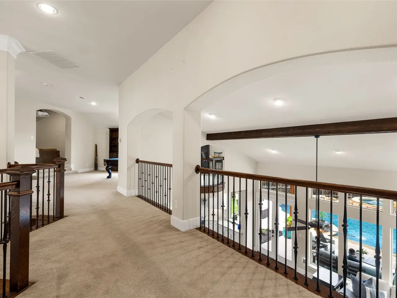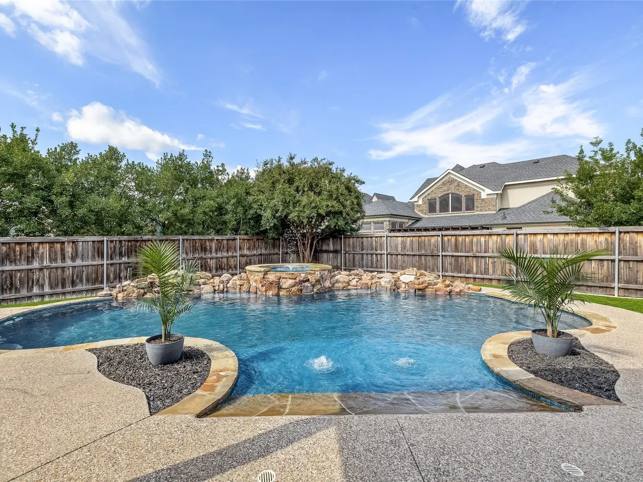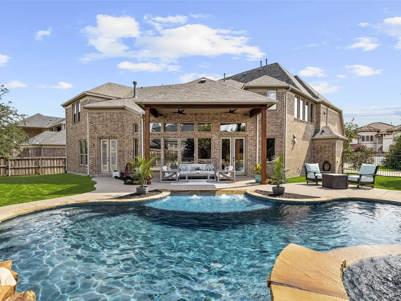 Discover timeless elegance in this stunning 5-bedroom custom home nestled within the exclusive, 24-hour guard-gated community of the Hills of Kingwood. With over 4,800 square feet of beautifully curated living space, every detail has been designed for both effortless entertaining and the warmth of everyday living. Step inside to soaring ceilings and walls of windows that bathe the home in natural light, creating a bright, inviting atmosphere from the moment you enter. The chefs kitchen is a showpiece, featuring a 6-burner gas range, side-by-side large-capacity refrigerator and freezer, and a striking quartz island thats as functional as it is beautiful the perfect gathering spot for family and friends. Hand-scraped hardwoods flow gracefully through the main level, adding warmth and character throughout. The first-floor primary suite is a serene retreat, offering a spa-like bath with dual vanities, a stand-alone soaking tub, and a spacious walk-in closet. A secondary bedroom and full bath downstairs provide flexibility for guests, a nursery, or a private home office. Upstairs, youll find three additional bedrooms, a game room, and a dedicated media room spaces made for connection, relaxation, and memory-making. Step outside to experience outdoor living at its most enchanting. A custom, heated lagoon-style pool with spa, waterfall, swim jets, and beach entry creates a resort-worthy oasis right in your backyard. Its the perfect backdrop for peaceful mornings, lively gatherings, or evenings under the stars.Additional features include thicker second-level subflooring for added quiet, a brand-new roof (2025), and thoughtful custom touches carried through every stage of the homes design and construction.Perfectly positioned near The Star, Legacy West, Dallas North Tollway, and Highway 121, this home combines luxury, comfort, and location in a way that feels truly extraordinary.