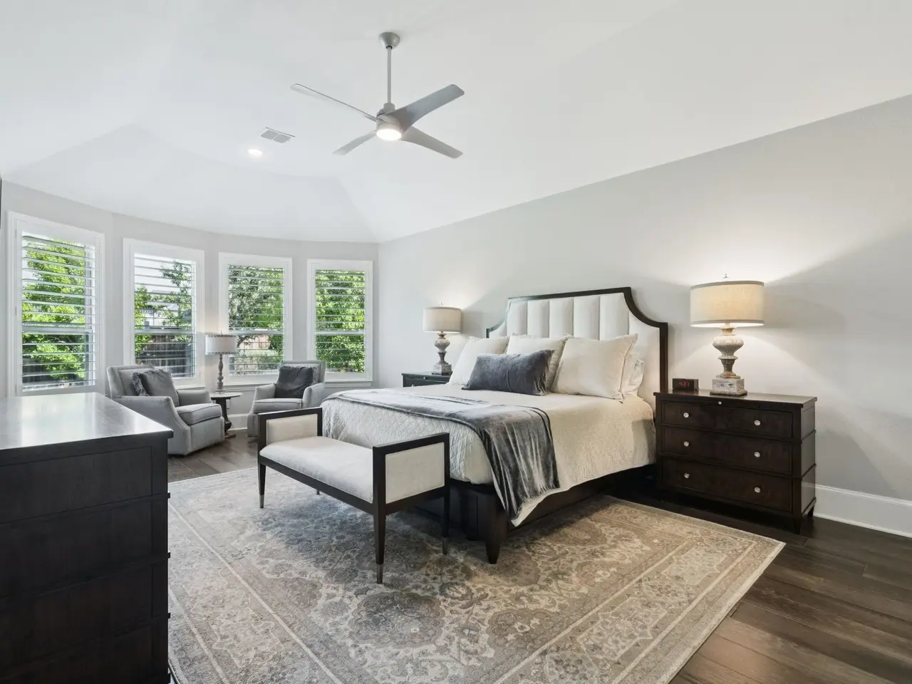Experience luxury living in the heart of Friscos prestigious Edgestone at Legacy community. This stunning one-story home has been thoughtfully designed to blend elegance, comfort, and functionality, all within one of the areas most sought-after neighborhoods. From the moment you step inside, youre greeted by soaring vaulted ceilings and the warmth of wood floors flowing throughout. The open-concept design makes entertaining effortless, with natural light pouring into every corner of the home. At the heart of it all is a gourmet kitchen built for both culinary creativity and gathering with loved ones. Outfitted with Electrolux appliances, including a 6-burner gas cooktop and double ovens, the kitchen is a chefs dream. The sleek white cabinetry and walk-in pantry provide ample storage, while the oversized quartz-topped island with seating invites casual conversations and morning coffee. Just steps away, a dry bar with a wine fridge adds a touch of sophistication for hosting guests. The primary suite is complete with a sitting area perfect for unwinding with a good book. The spa-like bath features a freestanding tub, quartz-topped dual vanities, and an oversized shower with a rainshower head, offering a true escape at the end of the day. Step outside to the covered patio with a built-in grill, where evenings are made for dining al fresco or simply enjoying the peaceful surroundings. Life in Edgestone at Legacy extends far beyond your front door. Residents enjoy access to resort-style pools, a state-of-the-art fitness center, walking and hiking trails, play areas, and even fishing in a serene pond behind the amenity center. Whether youre looking for relaxation or recreation, this community offers it all. This is more than a homeits a lifestyle, offering the perfect balance of luxury, convenience, and community in one of North Texass premier locations, having easy access to the Tollway and close proximity to The Star and Legacy West!