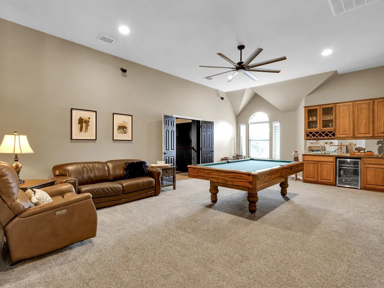 Large game room with bar