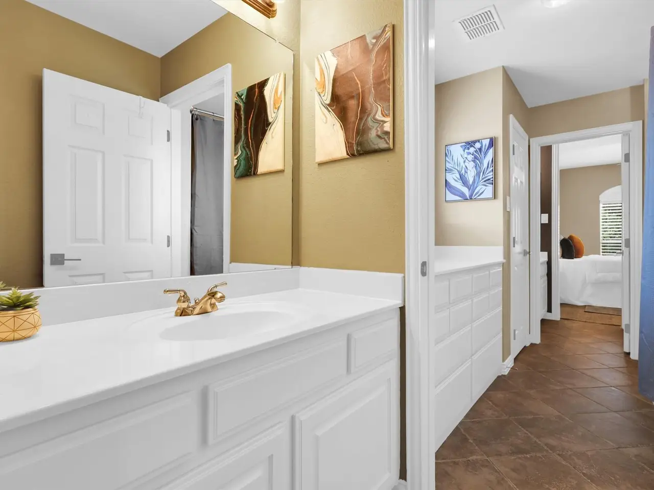 Welcome to luxury living in the prestigious 5-star neighborhood of The Trails of West Frisco! This stunning 5BR, 4BA masterpiece is perfectly situated on a premier golf course lot, offering breathtaking sunset views that will leave you in awe. Spanning over 5000 square feet, this meticulously designed home boasts an open-concept layout. The gourmet chefs kitchen features top-of-the-line stainless steel appliances, a spacious island, and custom cabinetry, seamlessly flowing into the expansive living area with a cozy fireplace. The primary suite is a true retreat, complete with a spa-inspired ensuite, dual vanities, and a walk-in closet. Each additional bedroom is generously sized, with ample natural light and access to beautifully appointed bathrooms. The home has automatic roller shades throughout, a large game room with a bar and sink, and a theater for those stay-at-home movie nights! Step outside to your private oasis, where a sparkling pool awaits, perfect for entertaining or relaxing while overlooking the lush fairways of the championship golf course. With a retractable awning, weather will not prevent the good times by the pool! The meticulously landscaped backyard offers ample space for outdoor dining and soaking in those unforgettable sunsets. Home features 2 newer hot water heaters and HVAC systems. The roof is less than 3 years old. Three-car garage with high-end, insulated garage doors and epoxy flooring. Located in a coveted community with sidewalks and beautiful trails, top-rated schools, and proximity to fine dining and shopping, this home is the epitome of elegance and comfort. Don't miss the opportunity to own this extraordinary property in one of the most sought-after neighborhoods!