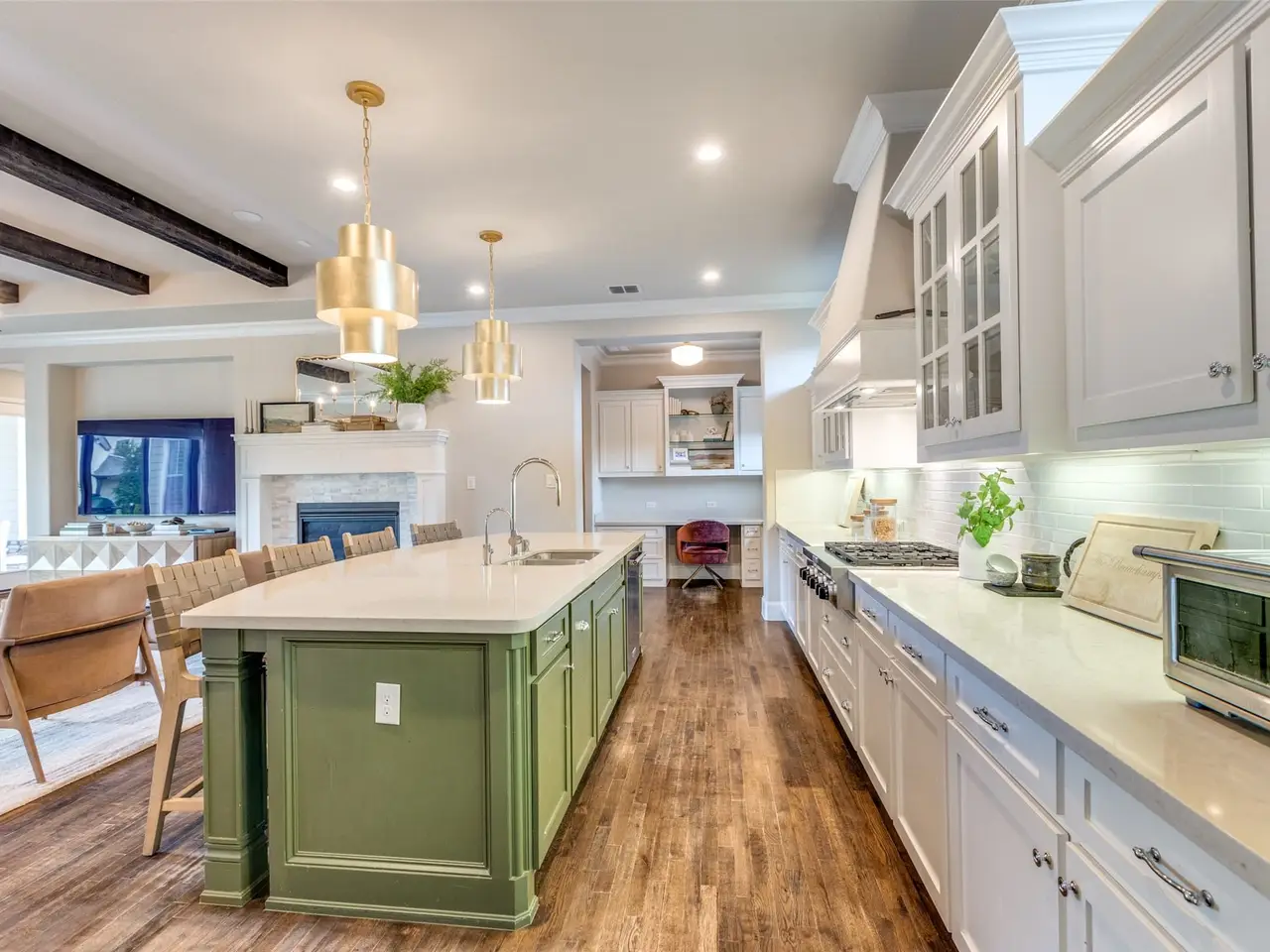 Chef's kitchen with white cabinetry