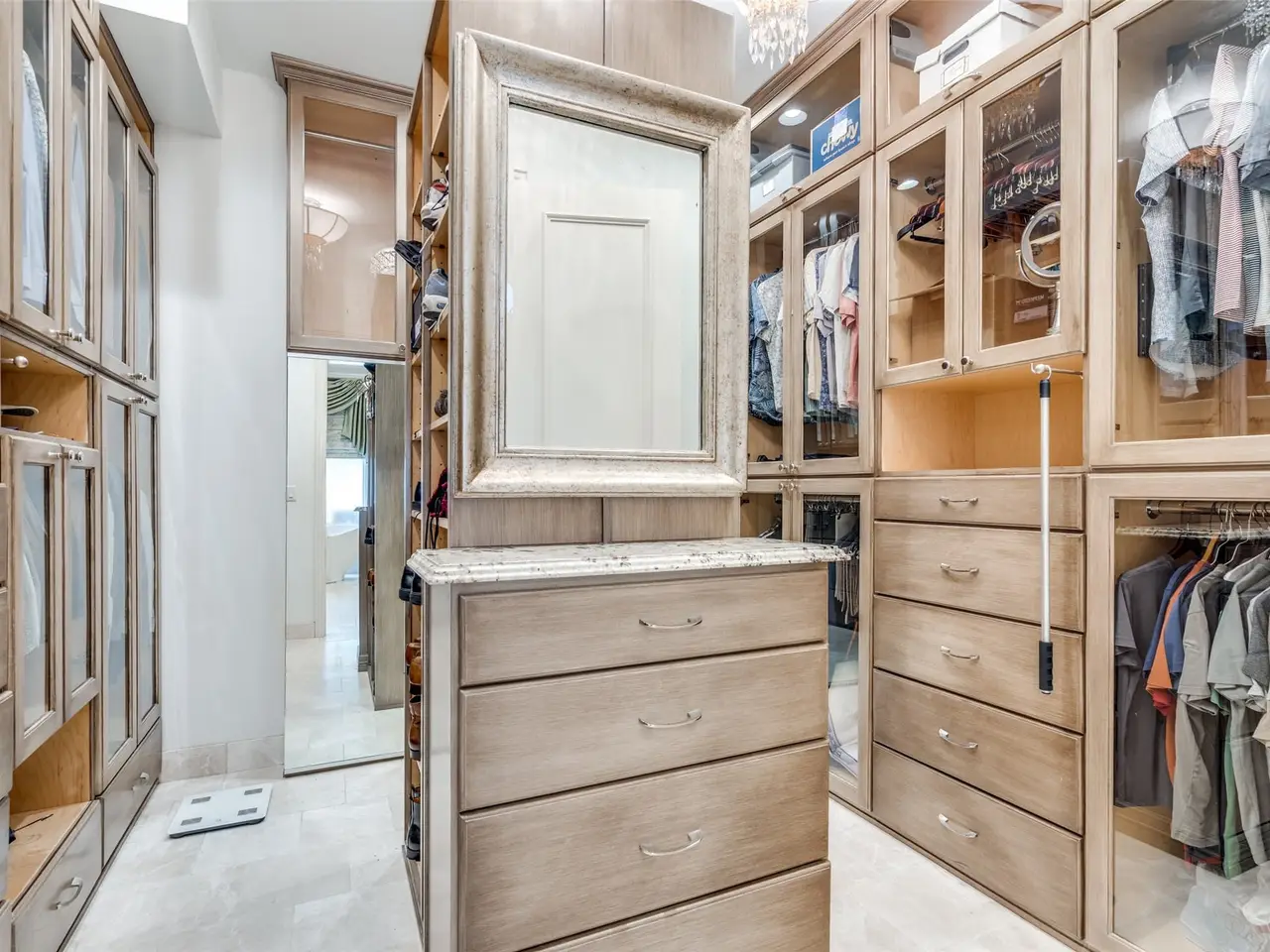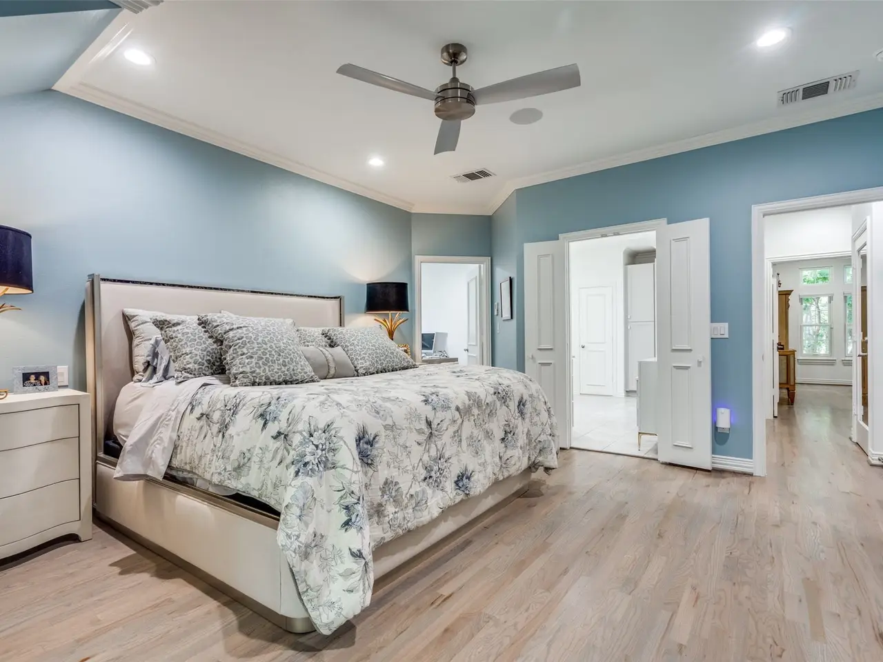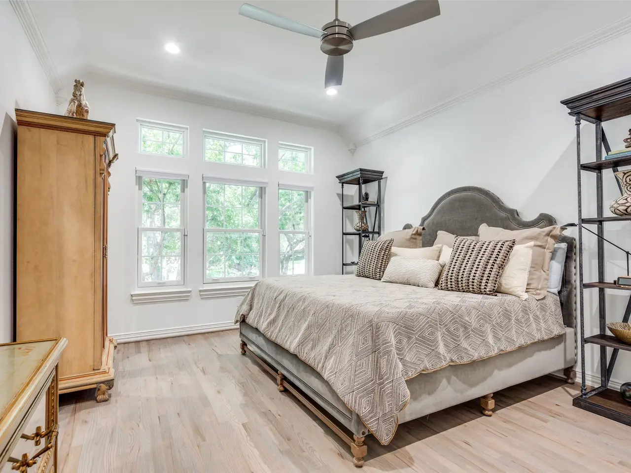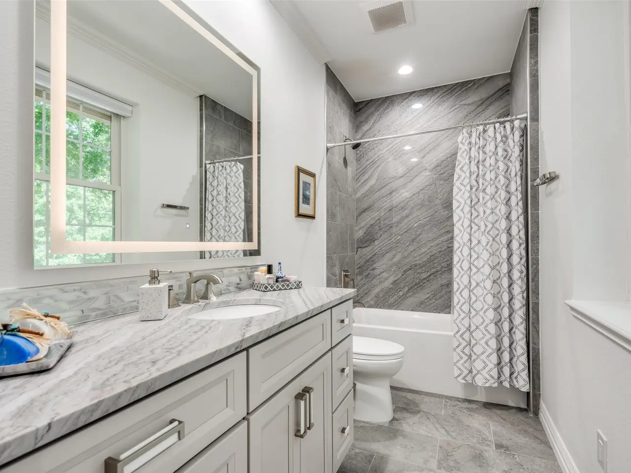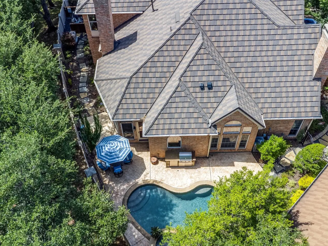 Fantastic zero lot line in the lovely Stonebriar Village, a gated and guarded community with TWO PRIMARY suites & TWO STUDIES. Second floor was completely remodeled in 2023. The second-story primary bath features quartz countertops, lighted mirrors, ceramic tile flooring, a large walk in shower, garden tub, and a linen closet. This primary suite also includes a huge closet (measures 12 x 10). Additionally the suite has hardwood flooring, a separate office with a wall of built-ins and shelves above, and a 155 sq feet of a sunroom that makes a great TV or sitting room with incredible views of tons of trees and creek area. Don't miss upstairs guest room. It has a ensuite bath with lighted mirror and quartz! First floor primary has been remolded in 2019 with granite countertops, a tower, dual sinks, free-standing elegant tub, a custom closet, and a large walk in shower! Heated flooring in both primary baths! Chef's kitchen with extended island, granite countertops, Viking Appliances, double ovens, a built-in subzero refrigerator, a large walk-in pantry and a reverse osmosis water filtration system. The wrap-around breakfast bar seats up to 5 people. Large breakfast room that views the resort style outdoor living area is open to the family room! Formal study (or could be 4th bedroom) with adjacent full bath, French doors, closet, a wall of built-ins. No carpet in this great home, hardwood floors and ceramic tile throughout. Great wine storage with wine cooler. Two attics with walk in storage. Security and Sprinkler systems! Double garage has epoxy flooring, and custom cedar door. Extensive landscaping with stone borders. A whole house Generac generator, a Culligan water softener system, and a Moen water safety system stay with the home. Seller prides in taking care of the home.