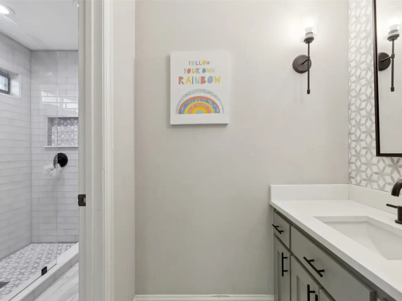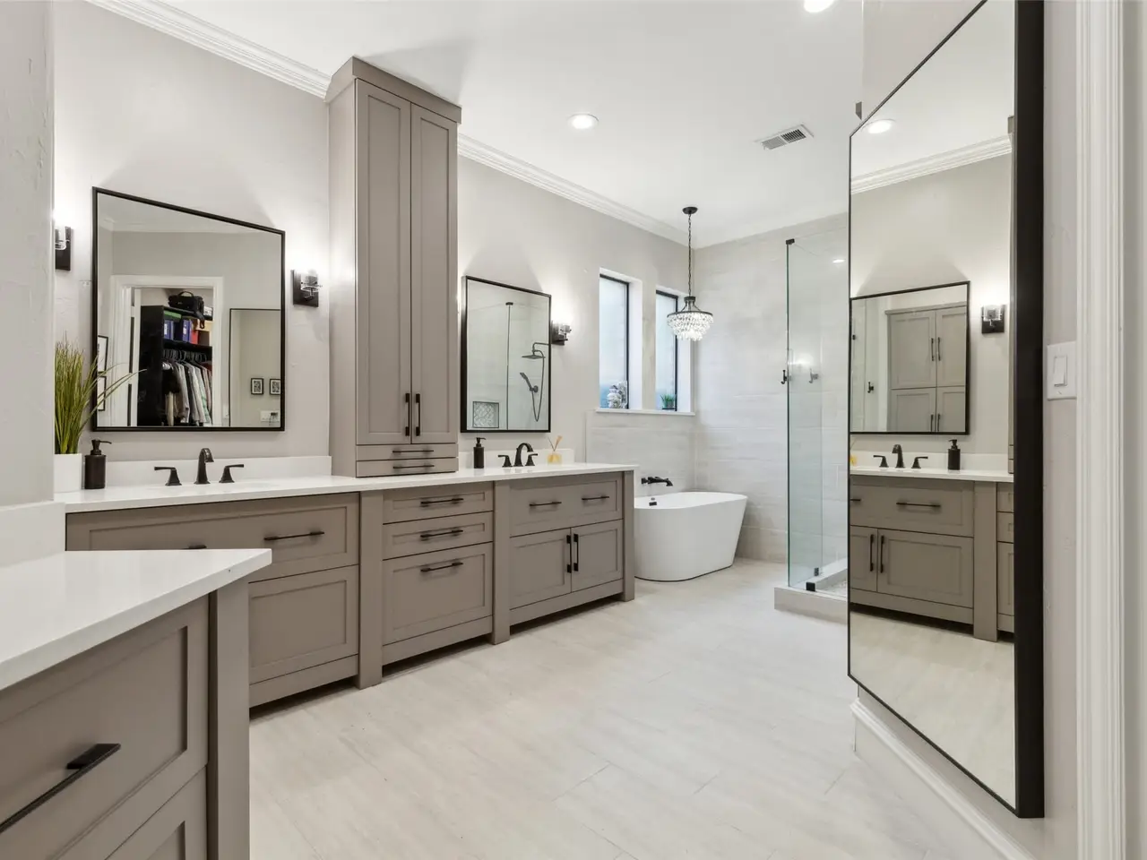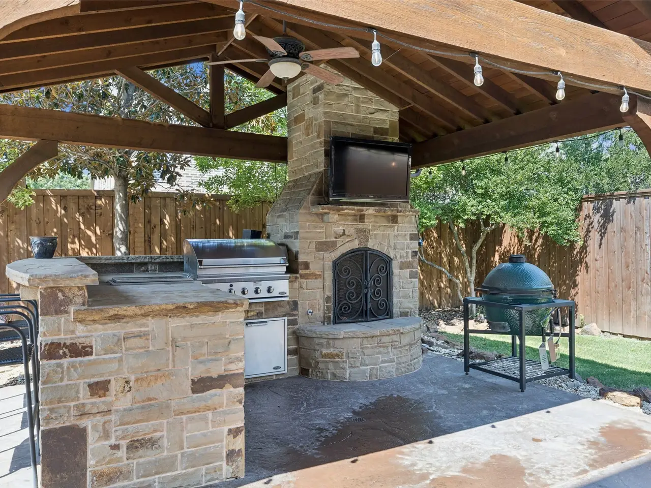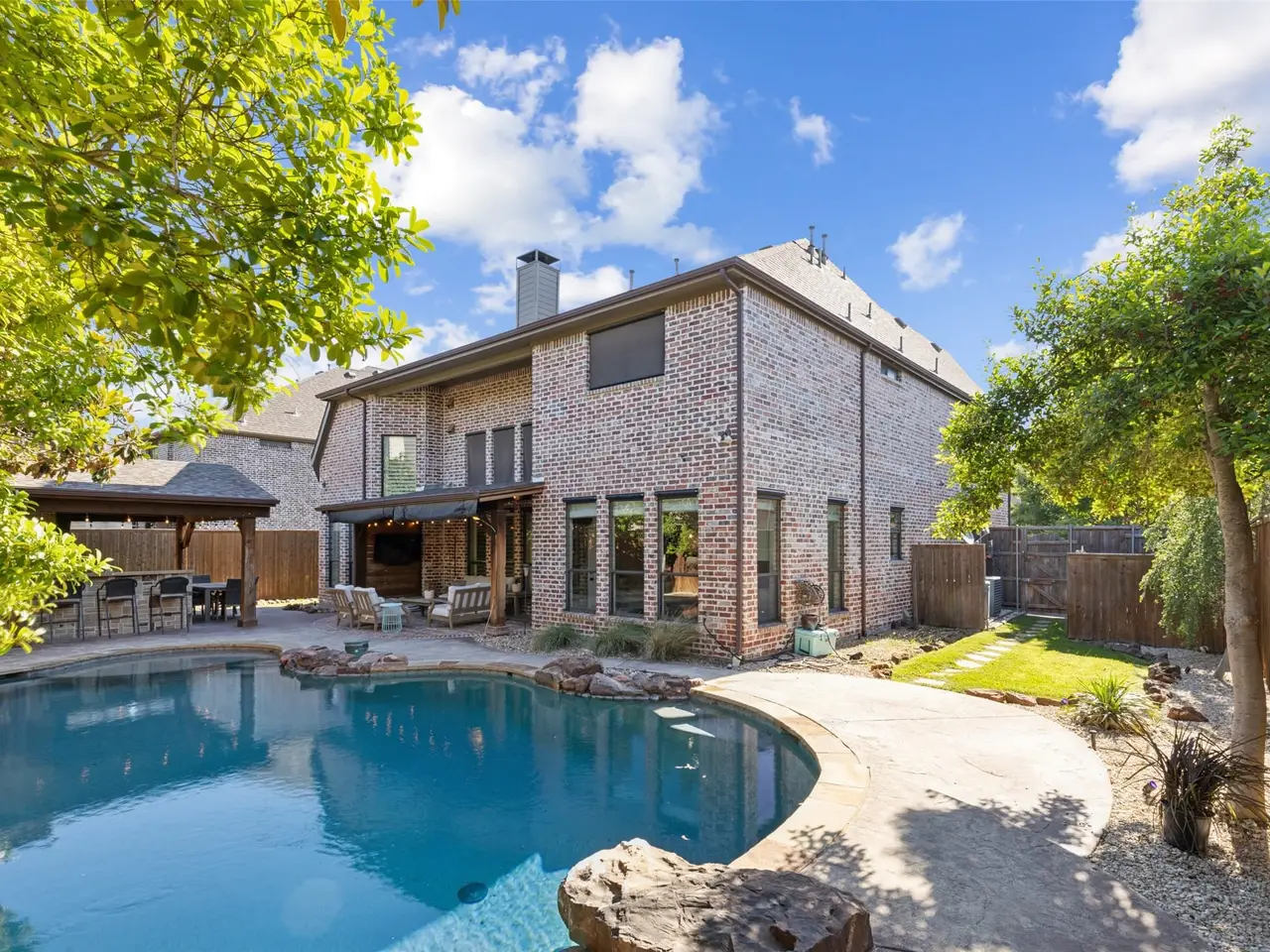 Introducing an updated luxury residence in highly sought-after Villages of Stonelake Estates, designed for todays lifestyle with the flexibility for multi-generational living. Featuring 6 bedrooms, 4 full baths, two living areas, a private office, and a media room, this home offers both sophistication and versatility. Inside, you’re greeted by solid hardwood floors and a thoughtfully reimagined interior. The chef's kitchen showcases a statement island, modern cabinetry, and premium finishes - perfect for gathering and entertaining. All bathrooms have been stylishly renewed with finishes aligned to today’s most desired standards, including the spa-worthy primary suite with soaring vaulted ceilings, a freestanding tub, and a custom-fitted closet. The home’s seamless floorplan balances openness with defined spaces, creating the ideal setting for family living or hosting. Upstairs, flexible bedrooms and the media room offer privacy and recreation, while the dedicated office ensures productivity at home. Step outdoors to your private retreat: a resort-inspired pool, covered patio, and fully equipped outdoor kitchen make entertaining effortless. A three-car garage - with a two-car bay plus separate single stall - adds function and convenience. Positioned within top-rated Frisco ISD and moments from shopping, dining, and major thoroughfares, this home pairs luxury finishes with an unbeatable location.