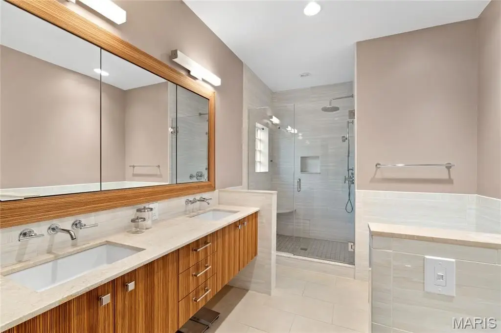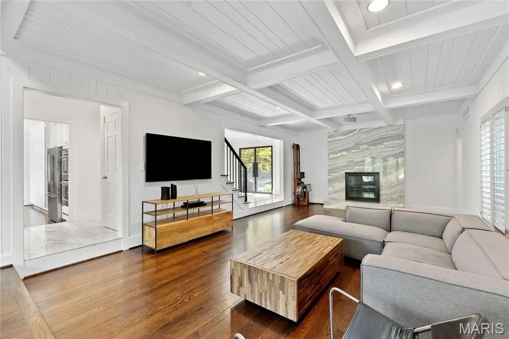 MAJOR PRICE REDUCTION!! Gorgeous updated transitional designed 5 bd, 4 full and 1 half ba home on a lush 1.48 acre lot in the center of Frontenac. The current owners have taken this gem to the next level incorporating fresh design for the modern buyer. Find a renovated kitchen with custom cabinetry, Thermador appliances, center island that flows into the fam rm with built-ins and fireplace. The main flr primary bedrm features a spa bath, custom closet and dressing area. A formal din, lg great rm and guest powder complete the 1st flr. The 2nd flr offers 3 lg bedrms, 2 updated baths, a loft playrm and an updated laundry rm. The walk out low level with bar/rec rm, updated bedrm and bath provides rm to spread out. The gorgeous pool, heated driveway, 2 new HVACs, new light fixtures, landscaping and so many more updates complete this perfect Ladue SD home. Walk to Villa and Oak Hill School.