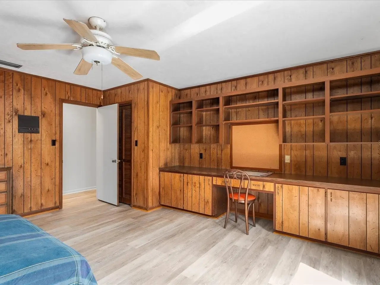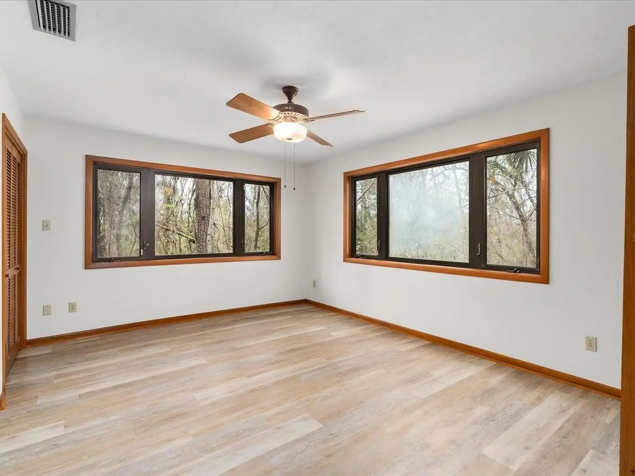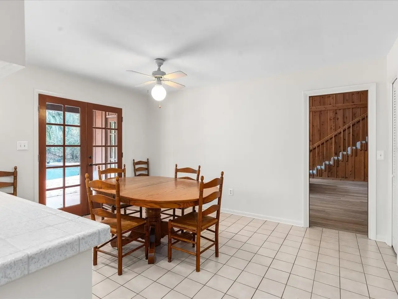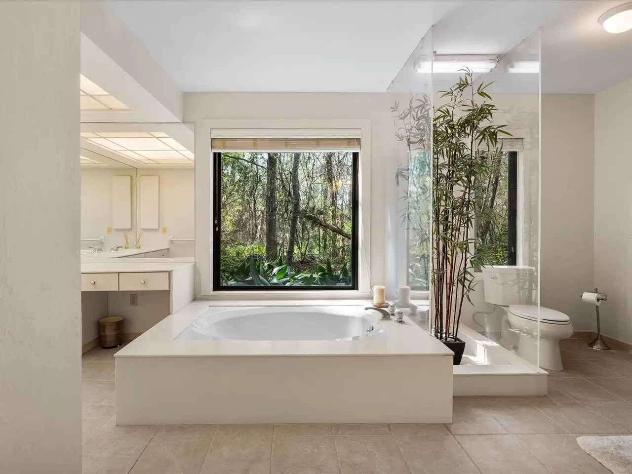 Nestled in Shands Woods, one of Gainesville’s best-kept secrets, this custom-built John Van Mills home sits on over 2.5 acres, seamlessly blending privacy, nature, and convenience—all less than a mile from the University of Florida. Overlooking Hogtown Creek on a secluded lot, this home is a true retreat. Inside, the breathtaking two-story family room features soaring cedar batten and board walls, evoking the warmth of a mountain lodge. A wood-burning Spade stone fireplace serves as the heart of the space, perfect for cozy gatherings or quiet relaxation. The first floor also boasts a formal living room with bay windows overlooking Hogtown Creek, a formal dining room with built-in cabinetry and picturesque outdoor views, a spacious kitchen, and the primary suite. The kitchen includes a double oven, cooktop, center island, and a generous eat-in dining area that opens through French doors to the pool. The first-floor primary suite is a peaceful retreat with views of the wooded yard and pool. Its spa-like bathroom features a soaking tub, walk-in shower, split vanities, and a unique terrarium that brings nature indoors. Upstairs, you'll find five spacious bedrooms, a large office, and a dedicated game room. Two bedrooms have private en suite baths, while the remaining three share a well-sized bath with dual vanities and a shower/jetted tub. One bedroom and the game room open onto a private deck overlooking the pool, while the others enjoy scenic views of the creek and preserve. A spiral staircase from the game room leads to the laundry room. The game room also offers versatility, serving as a potential seventh bedroom, playroom, hobby space, or quiet retreat. Outside, your private oasis awaits—a 30,000-gallon pool surrounded by lush landscaping and total seclusion. A staircase leads to Hogtown Creek, where protected wetlands ensure lifelong privacy—you’ll never have front-door neighbors. This home has been meticulously maintained and thoughtfully updated, featuring new flooring, fresh interior and exterior paint, a new roof (2024), and water heaters (2022). Completely move-in ready, it offers both timeless charm and modern upgrades. Located in the sought-after, no-HOA enclave of Shands Woods, this home offers the best of both worlds—a serene, natural setting just minutes from UF, downtown, Shands, and the VA. Experience the beauty, tranquility, and uniqueness of this exceptional home. Schedule your showing today!