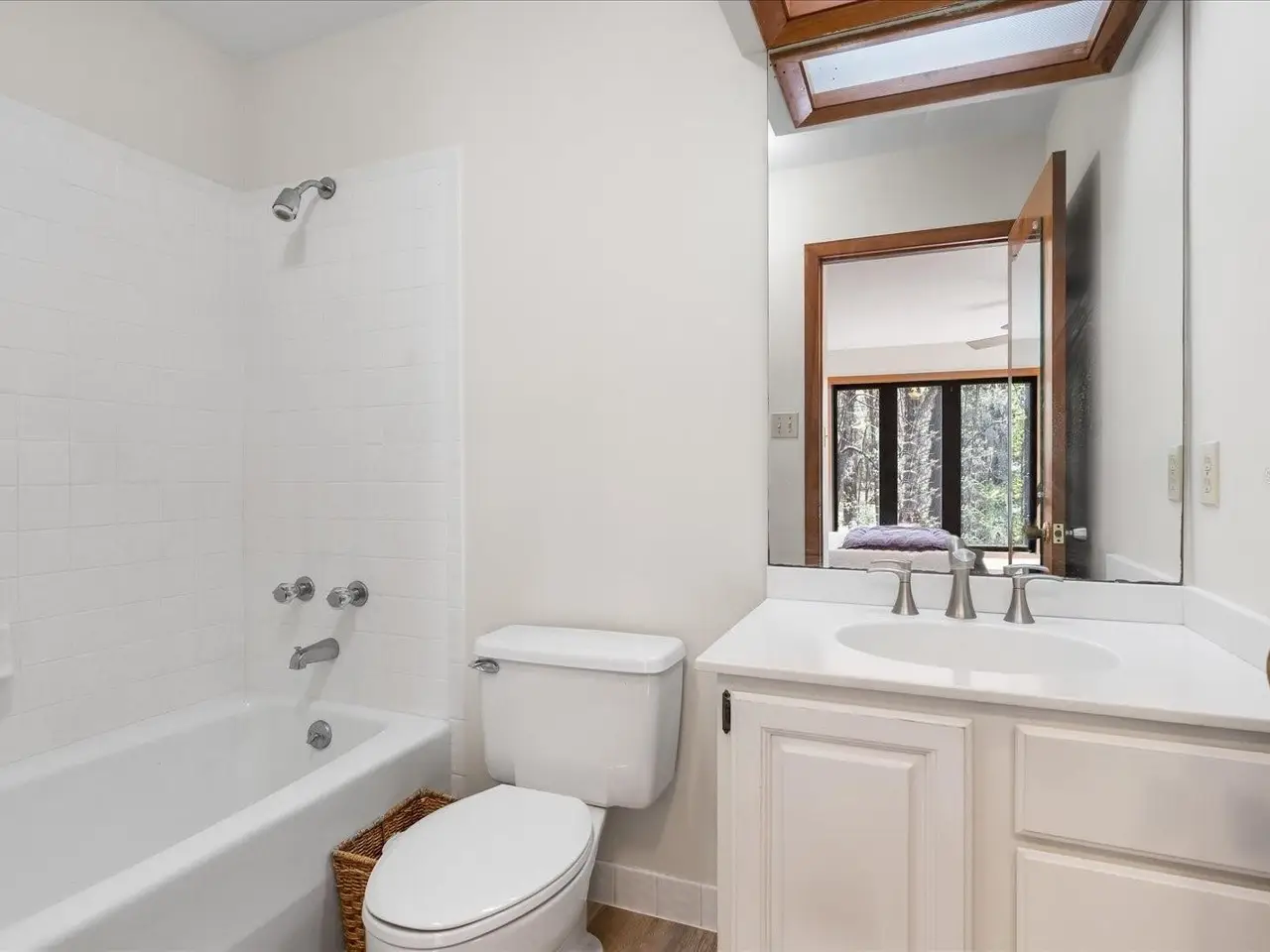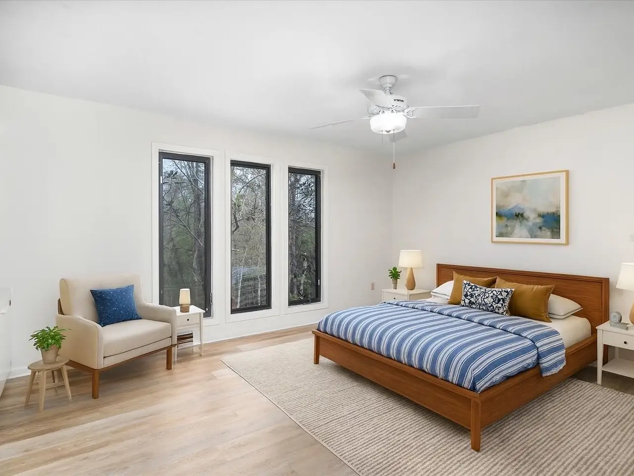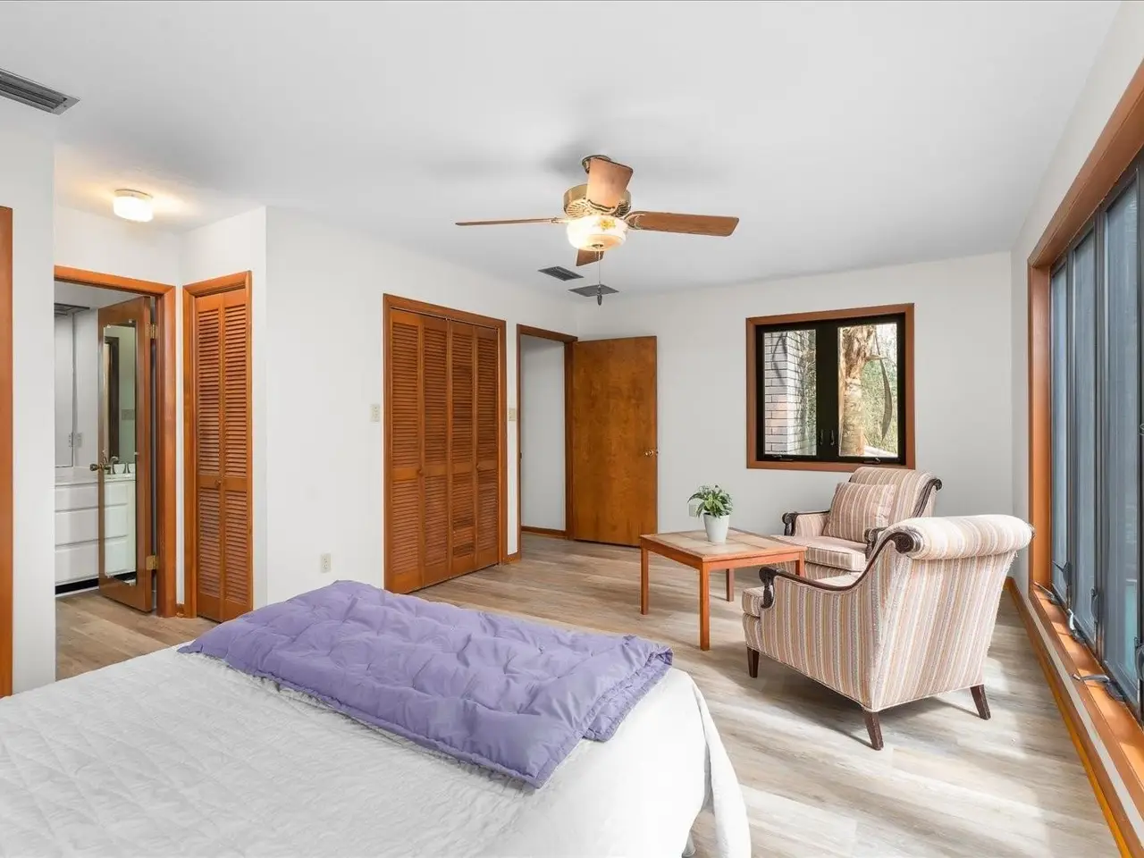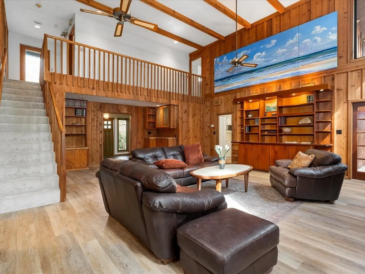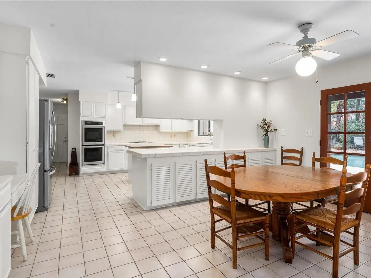 Nestled in Shands Woods, one of Gainesville’s best-kept secrets, this custom-built John Van Mills home sits on over 2.5 acres, seamlessly blending privacy, nature, and convenience—all less than a mile from the University of Florida. Overlooking Hogtown Creek on a secluded lot, this home is a true retreat. Inside, the breathtaking two-story family room features soaring cedar batten and board walls, evoking the warmth of a mountain lodge. A wood-burning Spade stone fireplace serves as the heart of the space, perfect for cozy gatherings or quiet relaxation. The first floor also boasts a formal living room with bay windows overlooking Hogtown Creek, a formal dining room with built-in cabinetry and picturesque outdoor views, a spacious kitchen, and the primary suite. The kitchen includes a double oven, cooktop, center island, and a generous eat-in dining area that opens through French doors to the pool. The first-floor primary suite is a peaceful retreat with views of the wooded yard and pool. Its spa-like bathroom features a soaking tub, walk-in shower, split vanities, and a unique terrarium that brings nature indoors. Upstairs, you'll find five spacious bedrooms, a large office, and a dedicated game room. Two bedrooms have private en suite baths, while the remaining three share a well-sized bath with dual vanities and a shower/jetted tub. One bedroom and the game room open onto a private deck overlooking the pool, while the others enjoy scenic views of the creek and preserve. A spiral staircase from the game room leads to the laundry room. The game room also offers versatility, serving as a potential seventh bedroom, playroom, hobby space, or quiet retreat. Outside, your private oasis awaits—a 30,000-gallon pool surrounded by lush landscaping and total seclusion. A staircase leads to Hogtown Creek, where protected wetlands ensure lifelong privacy—you’ll never have front-door neighbors. This home has been meticulously maintained and thoughtfully updated, featuring new flooring, fresh interior and exterior paint, a new roof (2024), and water heaters (2022). Completely move-in ready, it offers both timeless charm and modern upgrades. Located in the sought-after, no-HOA enclave of Shands Woods, this home offers the best of both worlds—a serene, natural setting just minutes from UF, downtown, Shands, and the VA. Experience the beauty, tranquility, and uniqueness of this exceptional home. Schedule your showing today!