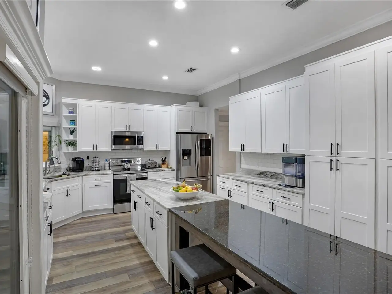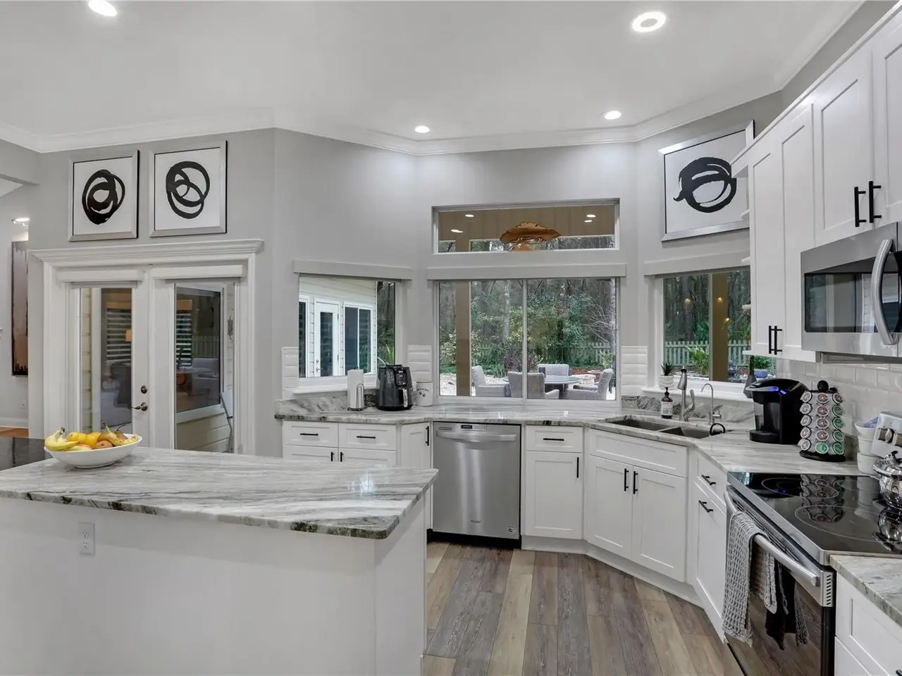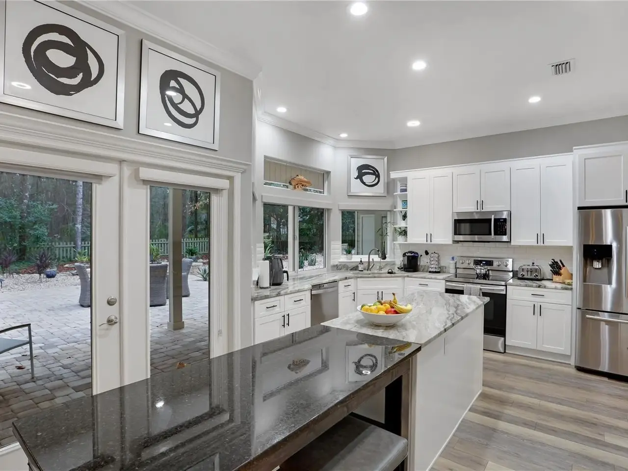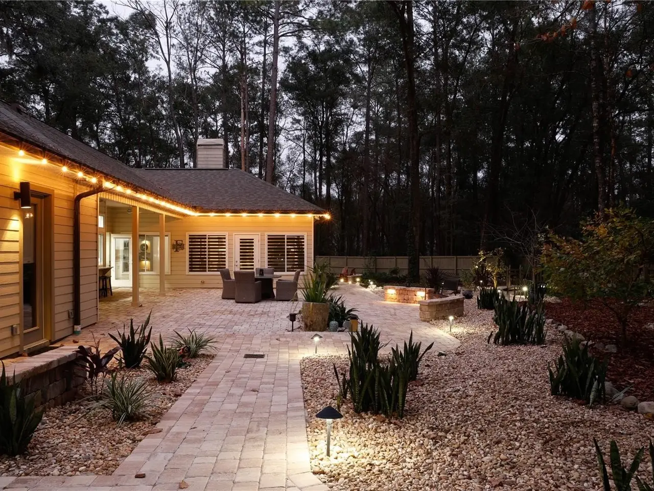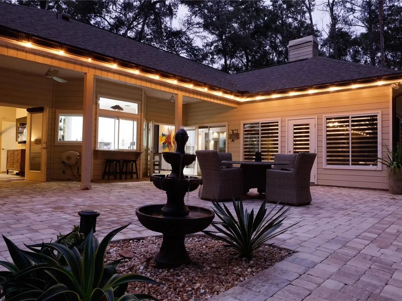 Luxury Living in Haile Plantation. Discover refined elegance in this completely updated five-bedroom, three-and-a-half-bath home, ideally located on a private cul-de-sac in Haile Plantation Spalding Place neighborhood. Backing up to a preservation area, this residence offers exceptional privacy and picturesque natural views. Inside, no detail has been overlooked. The home showcases, LVP flooring throughout, exquisite crown molding, custom trim work, and high-end finishes throughout. The thoughtfully designed layout includes a private in-law suite with its own entrance, offering flexibility for extended family or guests. The spacious master suite is a true retreat, featuring a walk-in shower, soaking tub, dual-sink vanity, and custom-designed closet. On the opposite wing of the home, you’ll find three additional bedrooms and a full bath, creating ideal separation and flow. A light-filled Florida room overlooks the serene backyard, adding charm and additional living space. Step outside to your own backyard oasis—fully fenced and complete with peaceful water features, firepit, stone paver walkways, up lighting and lush landscaping—perfect for entertaining with pass through window to kitchen, and Lanai with 1/2 bath and TV. The two-car garage is fully insulated, soundproofed, and climate-controlled—perfect for hobbyists, musicians, or creative projects. A separate golf cart garage adds extra convenience. Living in Haile Plantation means enjoying an unparalleled lifestyle, with over 15 miles of scenic walking trails and the vibrant Haile Village Center offers shops, dining, and a beloved weekly farmers market—all just a short walk away. Join the Hawkstone country club and have access to their golf course, three swimming pools, tennis and pickleball courts, and fitness center. This home isn’t just a place to live—it’s a gateway to luxury, comfort, and community in one of Gainesville’s most sought-after neighborhoods.