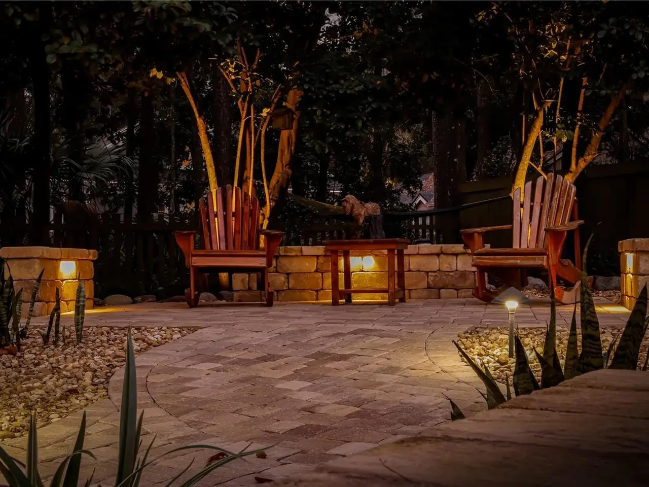 Serene backyard with water features