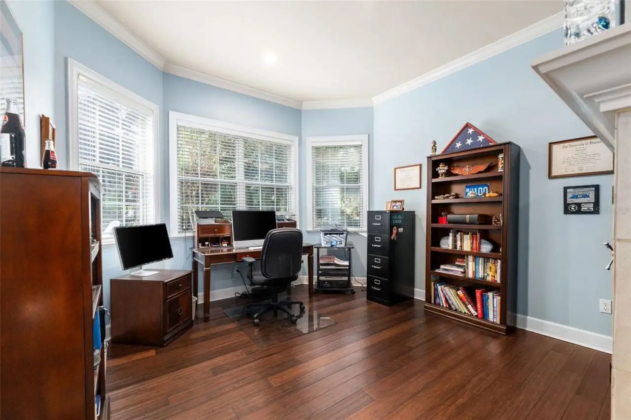 Nestled among the Live Oaks in the prestigious gated community of Splitrail, this stunning 4-bedroom (plus office), 3.5-bathroom custom-built home sits on 1.5 acres of beautifully landscaped grounds, offering a peaceful retreat like no other. The community's exclusivity, with just 11 unique homes, ensures an intimate and distinctive living experience. A sweeping circular driveway leads to garage parking for four cars, featuring both an attached two-car garage and a standalone two-car garage, providing endless possibilities. Inside, the chef's dream kitchen boasts stainless-steel appliances, a spacious center island, granite countertops, and a large gas range, connecting seamlessly to the living and family rooms for easy entertaining. Hardwood floors grace most of the home, with cozy carpet in the bedrooms and elegant ceramic tile in the wet areas. The private backyard oasis is a true highlight, featuring a screened-in saltwater pool and spa surrounded by lush natural beauty, perfect for enjoying tranquil days. The oversized Owner's Suite offers a personal sanctuary with a bedroom area complete with a fireplace, a secondary space ideal as an office or reading nook. The primary bathroom has been updated to an elegant spa-like feel with a glass enclosed shower and separate soaking tub, double sinks with storage cabinetry and double walk-in closets. Three additional bedrooms provide versatility for extra living space or guest accommodations. One of the bedrooms has its own entrance and adjacent full bath. Roof replaced in 2023. Other updates include water heater 2023, HVAC 2017 and 2018, Septic serviced in 2022, pool heater and saltwater system 2023. Other convenient facts: central vacuum system, electric car charger wiring in the garage, generator connection in the garage. This home is more than a residence; it's a serene haven where indoor and outdoor living come together in perfect harmony. Currently zoned for Hidden Oak elementary, Ft. Clarke middle school and Buchholz high school.