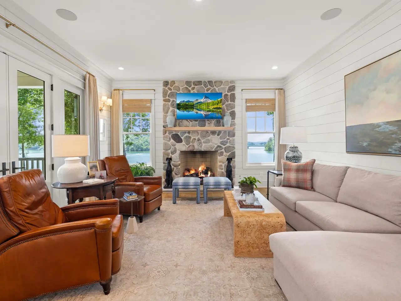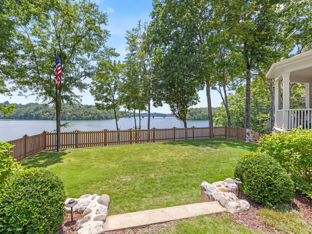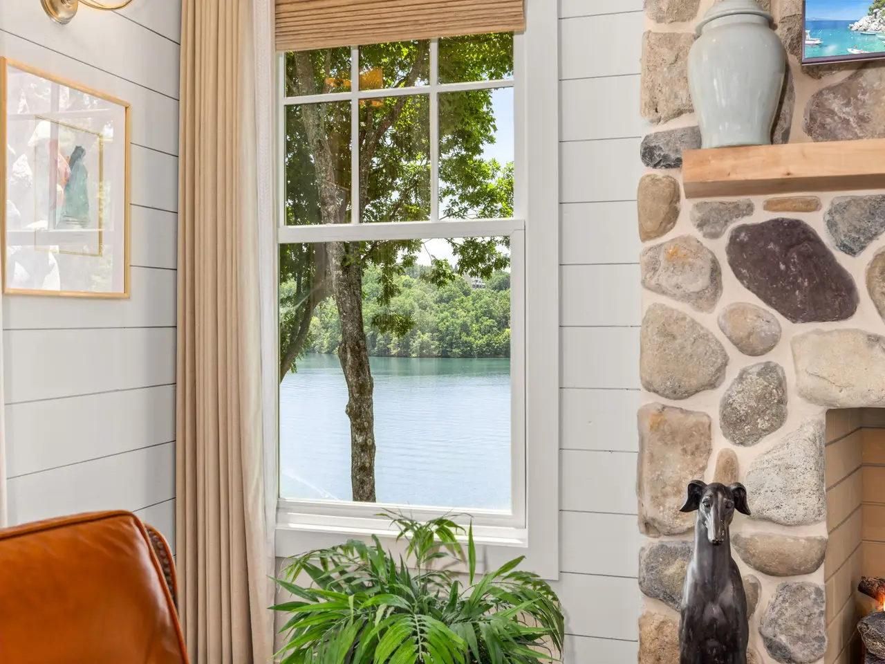 Southern coastal charm meets Lake Lanier luxury in this exceptional custom-designed estate, perfectly positioned on a private point lot surrounded by water and breathtaking lake views. Tucked away behind private gates and down a long, secluded driveway, this stunning home offers the ultimate in resort-style living, just minutes from the Chattahoochee Country Club and its private marina. Designed by renowned architect Stephen Fuller, this four-bedroom, four and a half bath residence blends timeless architecture with modern luxury. The home features a hardy shake and river rock exterior, beautifully landscaped shoreline with river rock detailing, and year-round views from nearly every room. A heated pool, level fenced backyard, covered back porch, and two detached two-car garages complete the outdoor oasis. Inside, the open-concept layout is filled with natural light and framed by walls of glass, maximizing the lake views. The two-story foyer opens into a vaulted great room with a stone fireplace and an elegant dining space. The gourmet kitchen is a chef's dream, with quartzite countertops, a large island, custom cabinetry, stainless steel appliances including a six-burner gas range, and a spacious prep pantry that doubles as a bar and entertaining space. The main-level primary suite is a serene retreat with views of the pool and lake, and a spa-inspired bath featuring a soaking tub, dual vanities, custom shower, and two walk-in closets. A second main-level bedroom and full bath offer flexibility for guests or a home office. Upstairs, a central gathering area leads to two generous en-suite bedrooms with custom closets. Additional highlights include a welcoming office area off the kitchen, a large laundry room, and an unfinished daylight terrace level with approximately 2168 square feet ready to be customized. Modern conveniences abound, with a whole-house generator, natural gas for cooking, fireplaces, heating, and pool, plus an irrigation system, professional landscaping, and outdoor lighting. This home is a rare opportunity to enjoy the best of lakefront living, thoughtfully designed for both everyday comfort and exceptional entertaining.