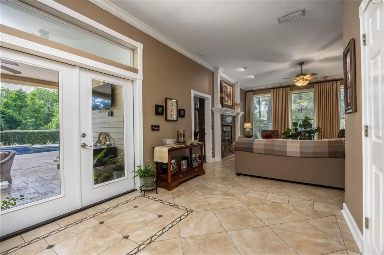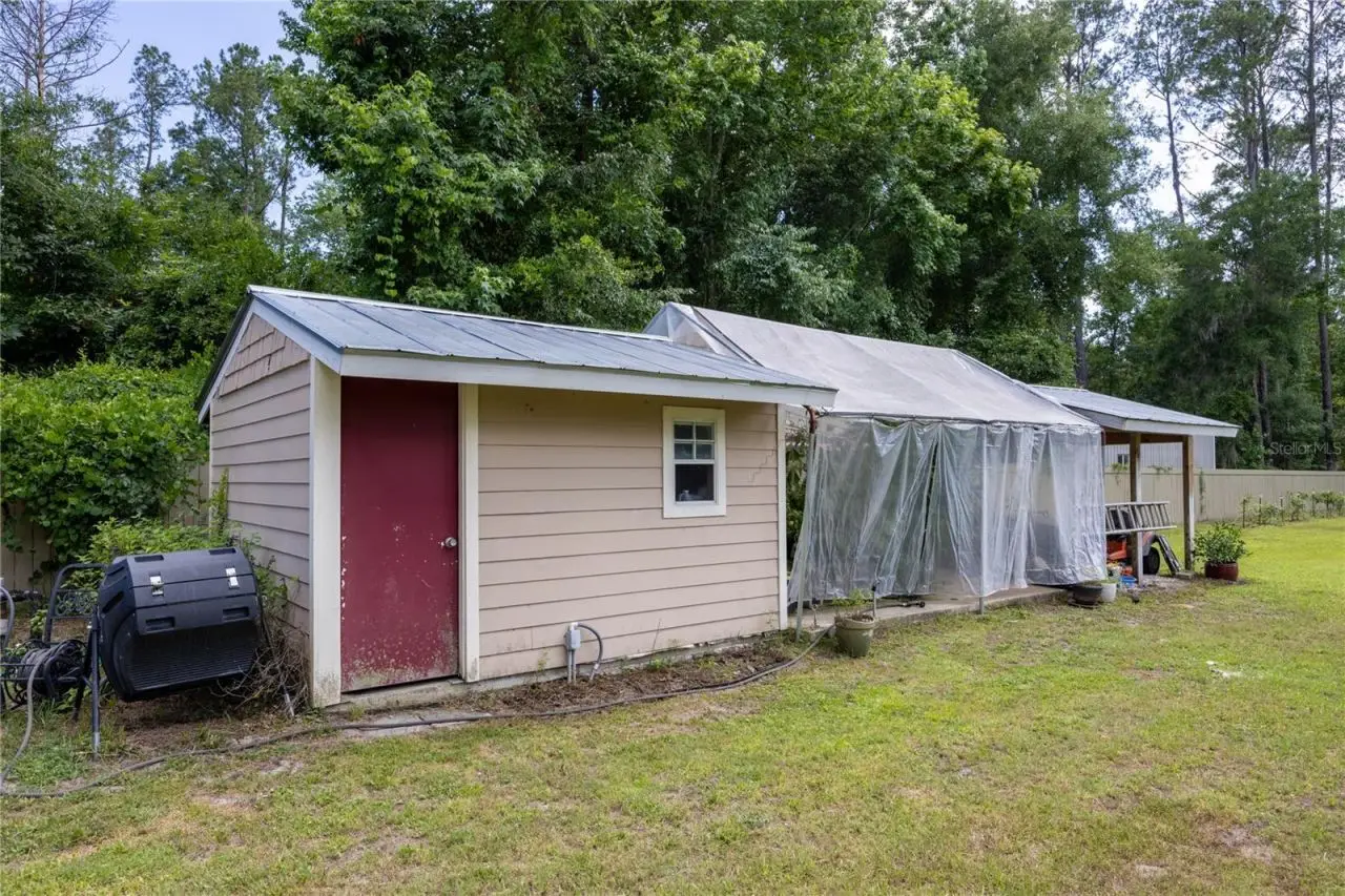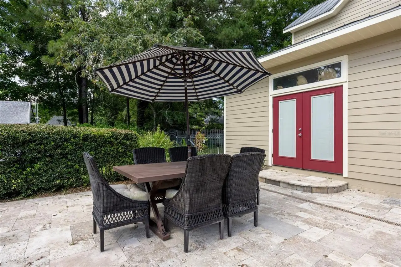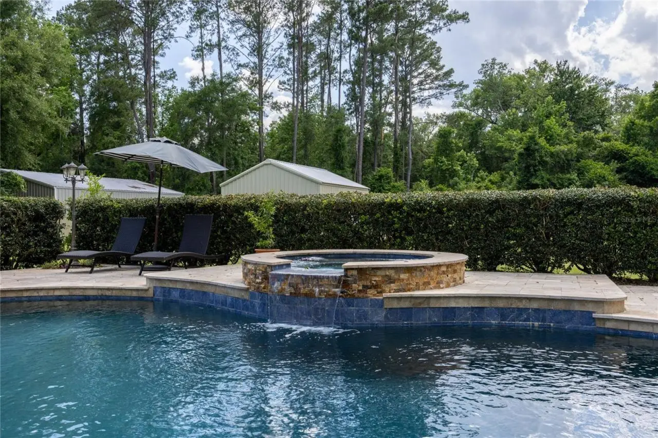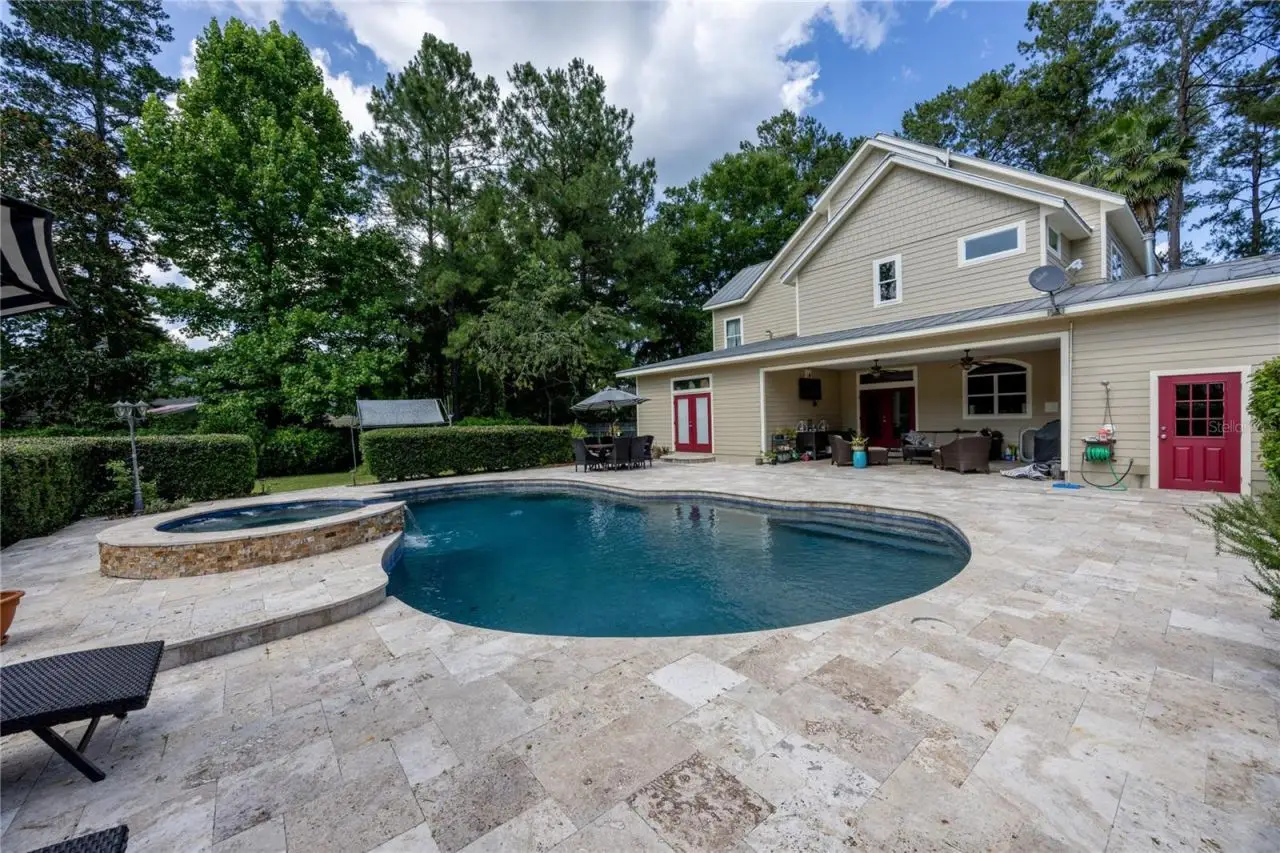 Spacious Custom Home on 1.5 Acres with Pool, Workshop, and No HOA. Welcome to your dream retreat in a peaceful, star-filled corner of town-just minutes from Millhopper shopping and dining. This stunning 3-story home offers 4 spacious bedrooms, 4.5 bathrooms, two dedicated offices, and a large playroom, making it ideal for both work and family life. The heart of the home is a beautifully crafted custom kitchen featuring granite countertops, soft-close custom cabinetry, a farmhouse sink with sunset views over the saltwater pool and expansive backyard, and high-end finishes throughout. Enjoy cozy evenings by the striking double-sided fireplace that warms both the living area and the enormous study with custom wood floors and built-in bookshelves. Outdoors, unwind around the firepit under a canopy of stars, take a dip in the saltwater pool, or tackle your hobbies in the separate workshop. The metal roof provides long-lasting durability, and with no HOA, you'll have the freedom to truly make this property your own. Located in a quiet, sought-after area, this one-of-a-kind property blends comfort, function, and style on a generous 1.5-acre lot.