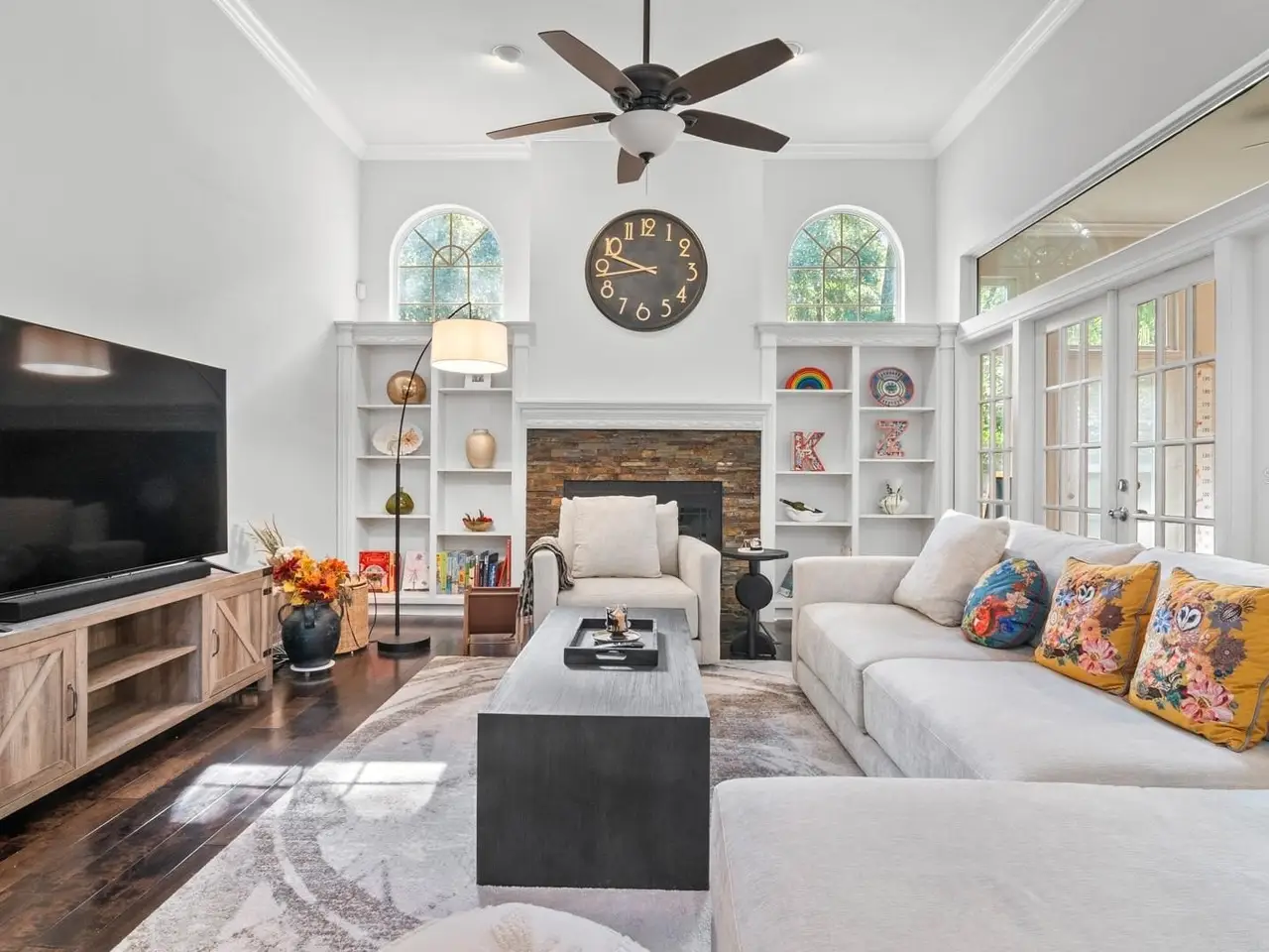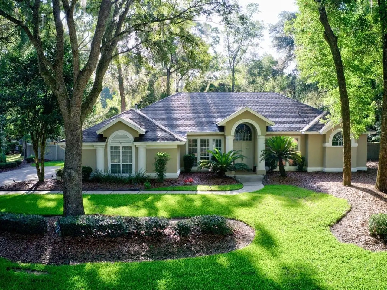 Brand New Roof! Impeccably Maintained Barry Bullard Home in SW Gainesville – Luxury, Comfort, and Location! Welcome to this stunning Barry Bullard residence, where timeless elegance meets modern convenience in one of Southwest Gainesville’s most sought-after neighborhoods. Tucked within a peaceful cul-de-sac just moments from the shops and restaurants of Haile Village Center, this beautifully maintained home offers the ease of true move-in readiness—with the fresh, pristine feel of new construction. Step inside to discover an expansive open layout filled with natural light and upscale finishes. The gourmet kitchen is a standout, boasting granite countertops, custom cabinetry, a generous island, new oven, dishwasher, and not one but two pantries—designed with both the casual cook and serious chef in mind. The kitchen flows seamlessly into the family room, dining area, and formal living room, creating an ideal space for entertaining or everyday living. Custom built-ins frame the living room’s elegant stacked-stone fireplace, creating a cozy yet refined focal point. Retreat to the luxurious owner’s suite, complete with a spa-inspired ensuite bath featuring dual vanities, a soaking tub, and a spacious walk-in shower. All bathrooms throughout the home showcase premium cabinetry, stone countertops, and travertine tile for a polished, cohesive aesthetic. A true highlight of this home is the fully enclosed, climate-controlled lanai—an incredibly versatile space that can serve as a home office, media lounge, playroom, or serene sunroom. With wraparound windows, it offers year-round enjoyment of the beautiful backyard views. Outside, enjoy al fresco dining or evening drinks on the paver patio, surrounded by a fully fenced, flat backyard—perfect for pets, play, or even future pool plans. Enjoy access to community amenities, including the nearby Hawkstone Club pool, and take advantage of nearby biking and walking trails. With the Haile Village Farmers Market and dining just a short stroll away, this home offers not only luxury living, but a lifestyle to match. New Washer, Dryer, and Oven! Don’t miss your opportunity to own this exceptional property—schedule your private tour today!