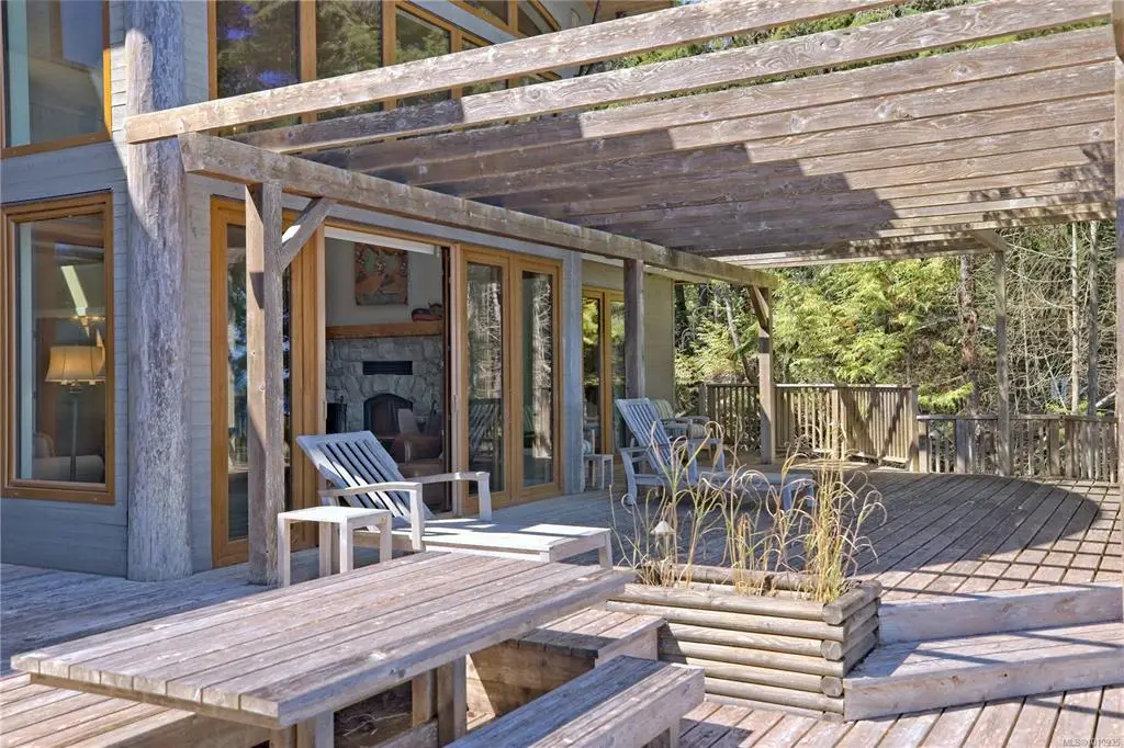 Welcome to nearly two acres of waterfront bliss, where natural beauty and tranquility meet luxury coastal living. The architecturally designed three-bedroom home is perfectly positioned to capture sweeping ocean views north toward Tsawwassen—ideal for watching the ever-changing seascape. Launch your kayak or paddleboard or beachcomb along miles of shoreline, steps from your door. Inside, the home is a showcase of artistry and craftsmanship, featuring a chef’s kitchen, soaring vaulted ceilings, and floor-to-ceiling windows that flood the space with light and panoramic views.Enjoy cozy evenings by the focal stone fireplace or the charming wood stove. Unique features include a custom “dog” bath, a bunk room, and high-efficiency geothermal heating and cooling. Generator runs essentials in a power outage. Step outside to the expansive tiered deck, with a built-in stone fireplace and beautifully designed, low-maintenance landscaping. Upscale casual comfort meets nature in perfect harmony!