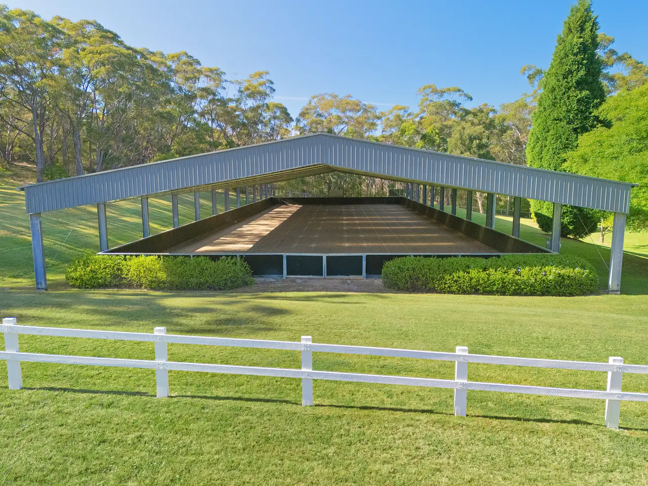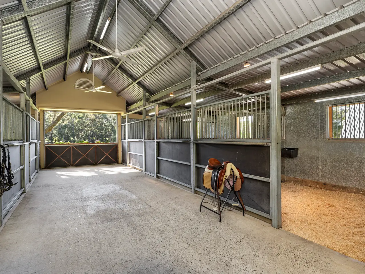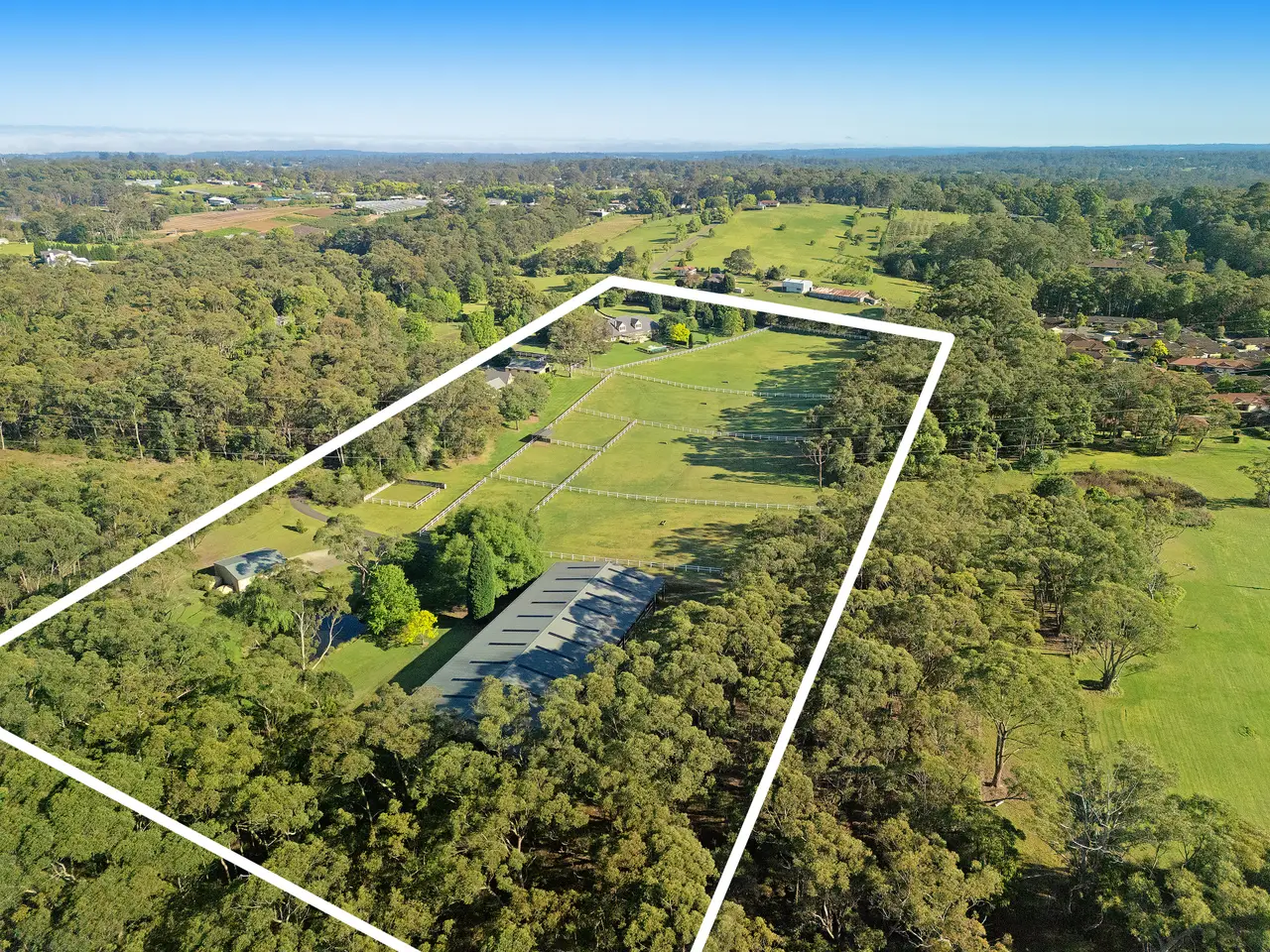 Come home to your own personal paradise with this grand executive property, providing a blue-chip lifestyle in a setting as flawless as its finish. Nestled along a private road, and surrounded by glorious green views over the grounds, it offers contemporary comfort beyond reproach – boasting a beautiful family residence complete with sunlit poolside entertaining, a magnificent full-sized equestrian arena plus a stable block, and a secluded guest cottage or groom's quarters – while everything you need from the outside world is only minutes away. – Elegant and idyllic on a fully fenced 15-acre (6.07ha) parcel – Gated intercom entry to driveway flanked by white rose gardens – Spacious c.2000 home bathed in morning sunshine – just one owner – Four bedrooms plus oversized study, formal rooms, family zone – Huge additional games/media room upstairs with projector and screen – French doors to all-seasons rear patio set above the saltwater pool – Undercover equestrian arena designed for elite level training – Six-horse stable block, feed + tack rooms and paddocks in addition – Impressive light-filled marble kitchen with Miele appliances throughout – King-sized master quarters with dressing room and couple's ensuite – Family bathroom featuring a shower, twin basins and spa bath – Stunning high ceilings, ducted air-conditioning, back-to-base alarm – Mud room plus dedicated dogs' room, wine cellar, double garage – One-bedroom secondary accommodation located alongside stables – Two water tanks, bore water, second DLUG/workshop, three-bay shed – Rare and exclusive opportunity less than 1km from Galston village – Just 1.8km to Galston Public School, 2.6m to Galston High School – Approx. 12km to Hornsby station and 13km to Cherrybrook Metro