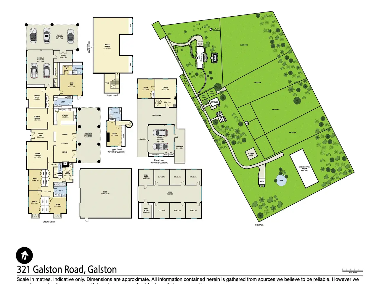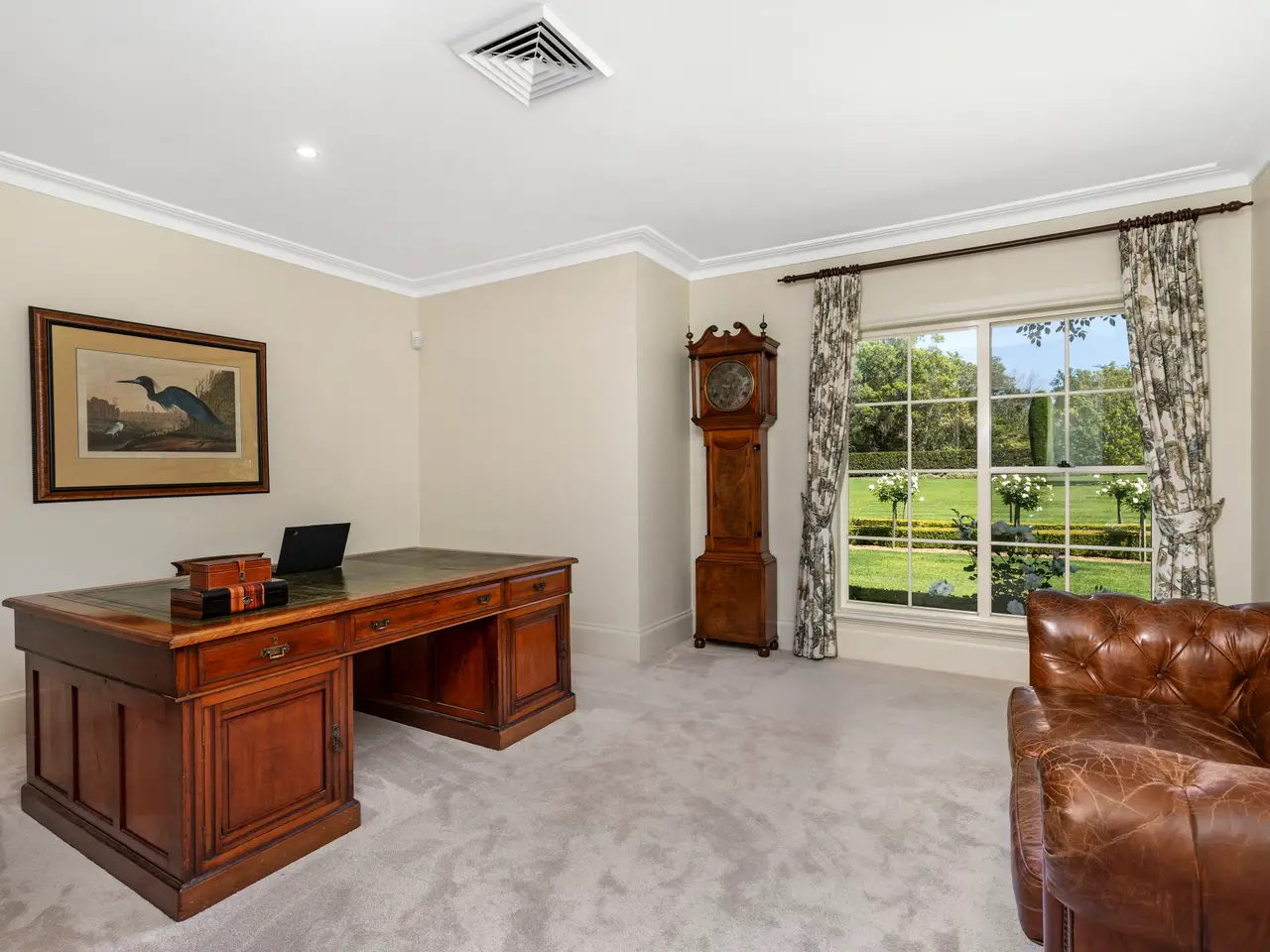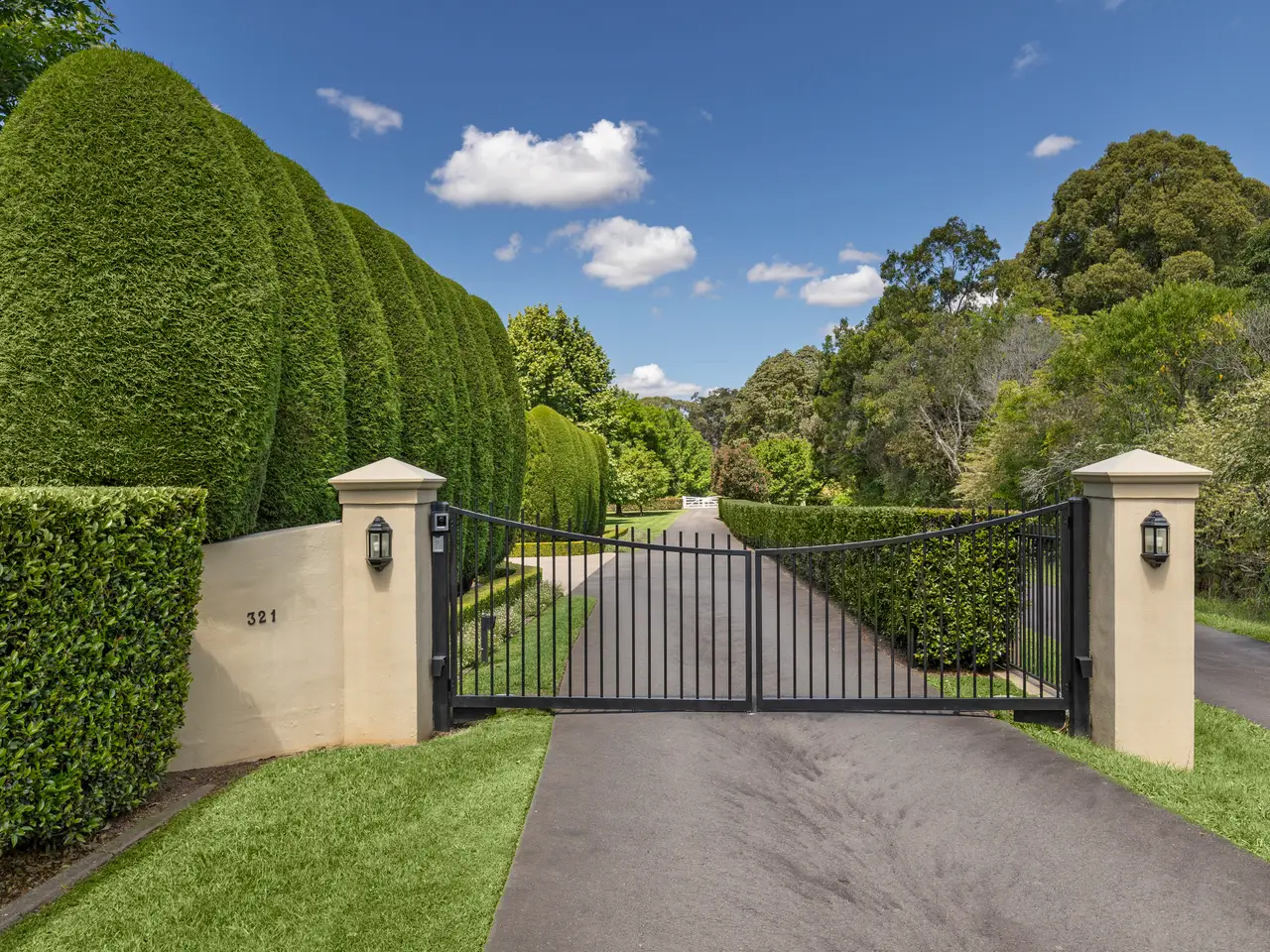 Come home to your own personal paradise with this grand executive property, providing a blue-chip lifestyle in a setting as flawless as its finish. Nestled along a private road, and surrounded by glorious green views over the grounds, it offers contemporary comfort beyond reproach – boasting a beautiful family residence complete with sunlit poolside entertaining, a magnificent full-sized equestrian arena plus a stable block, and a secluded guest cottage or groom's quarters – while everything you need from the outside world is only minutes away. – Elegant and idyllic on a fully fenced 15-acre (6.07ha) parcel – Gated intercom entry to driveway flanked by white rose gardens – Spacious c.2000 home bathed in morning sunshine – just one owner – Four bedrooms plus oversized study, formal rooms, family zone – Huge additional games/media room upstairs with projector and screen – French doors to all-seasons rear patio set above the saltwater pool – Undercover equestrian arena designed for elite level training – Six-horse stable block, feed + tack rooms and paddocks in addition – Impressive light-filled marble kitchen with Miele appliances throughout – King-sized master quarters with dressing room and couple's ensuite – Family bathroom featuring a shower, twin basins and spa bath – Stunning high ceilings, ducted air-conditioning, back-to-base alarm – Mud room plus dedicated dogs' room, wine cellar, double garage – One-bedroom secondary accommodation located alongside stables – Two water tanks, bore water, second DLUG/workshop, three-bay shed – Rare and exclusive opportunity less than 1km from Galston village – Just 1.8km to Galston Public School, 2.6m to Galston High School – Approx. 12km to Hornsby station and 13km to Cherrybrook Metro