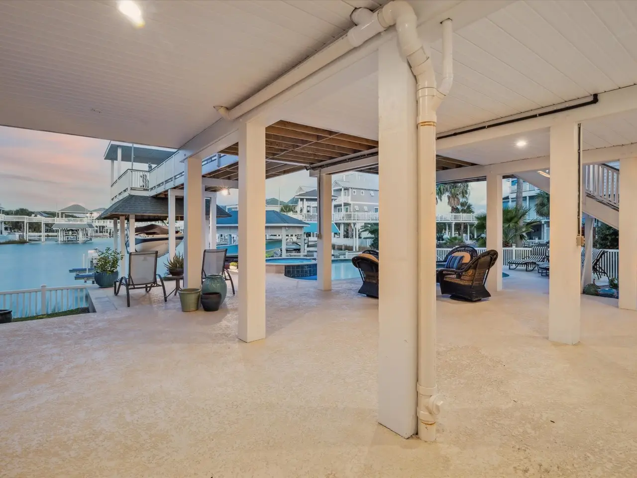 Welcome to your dream retreat in prestigious Laffites Cove, Galveston, where luxury meets coastal living. This beautifully updated home on a wide oxbow offers breathtaking views & southerly breezes, w/glimpses of Galveston Bay. Inside, 1” solid hardwood floors flow throughout spacious open plan, featuring 4 generous bedrooms, each w/its own ensuite bath, ensuring comfort & privacy. The gourmet kitchen is perfect for culinary enthusiasts, while the outdoor oasis including pool & spa invites relaxation & entertaining amidst beautifully landscaped grounds. Elevator capable to all 3 floors. This prime location is at the highest elevation in Laffites “The Ridge”. Located near the Galveston Country Club w/all its amenities & a golf cart ride to Pirates popular beaches, this exquisite property is the perfect blend of elegance & coastal charm. Social membership to Galveston Country Club transfers w/property. Don’t miss your chance to call this luxurious home your own! All info per Seller.