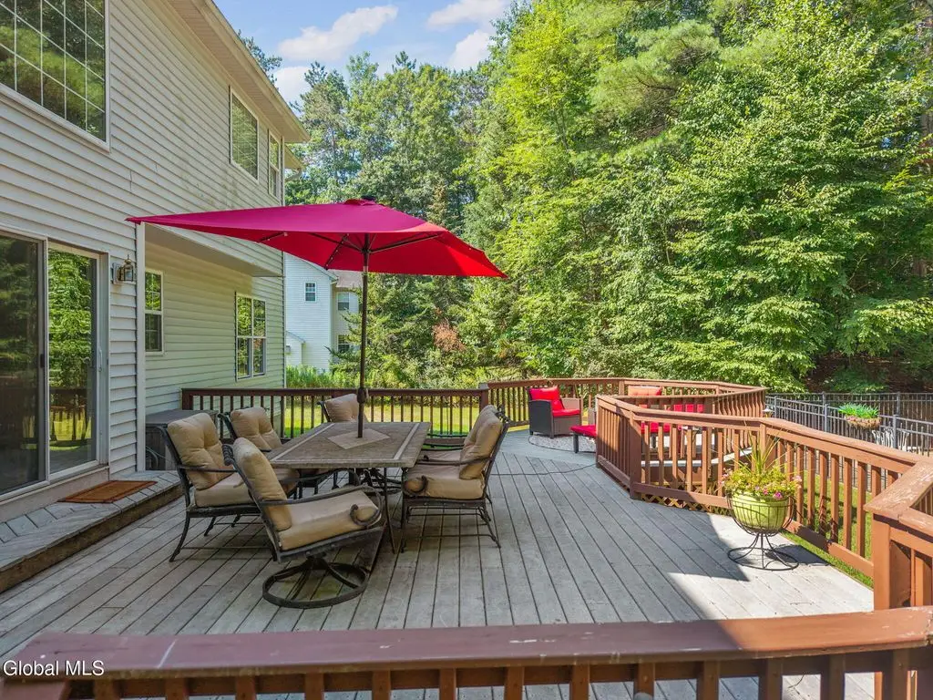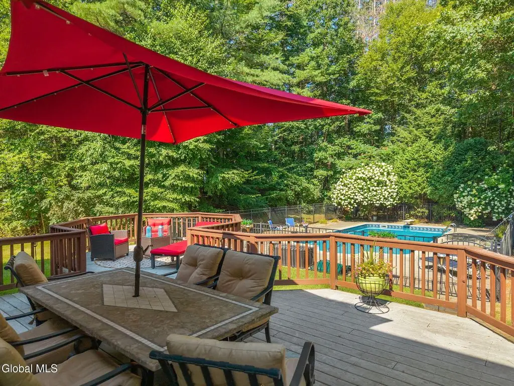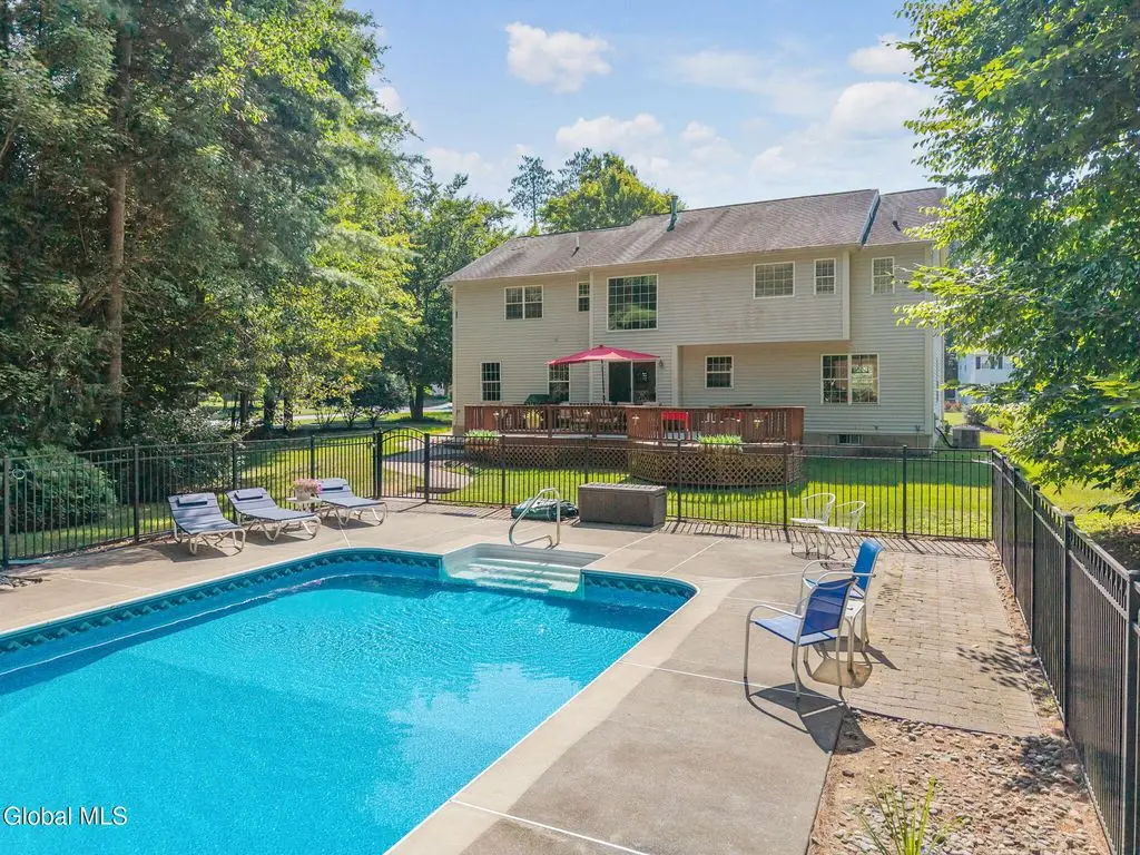 Experience all Saratoga has to offer w/Wilton's low taxes. Corner lot home in a sought after neighborhood is your private paradise. Completely renovated in 2025, there is abundant natural light & wonderful flow w/ample space including a dedicated office. The second level boasts a luxurious primary suite complete with a massive brand new bathroom, his & hers closets w/professionally designed walk-in closet. 3 oversized bedrooms, bath & laundry complete w/new flooring throughout. Huge bonus flex space in finished basement for kids' playroom/gym/media/storage. There is also plenty of outdoor space to relax or entertain friends on the deck & in the beautiful heated inground pool. Oversize grill w/gas line to house. Close to the track, shops, dining & mall yet a quiet retreat from the crowds.