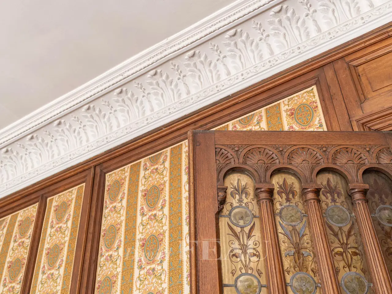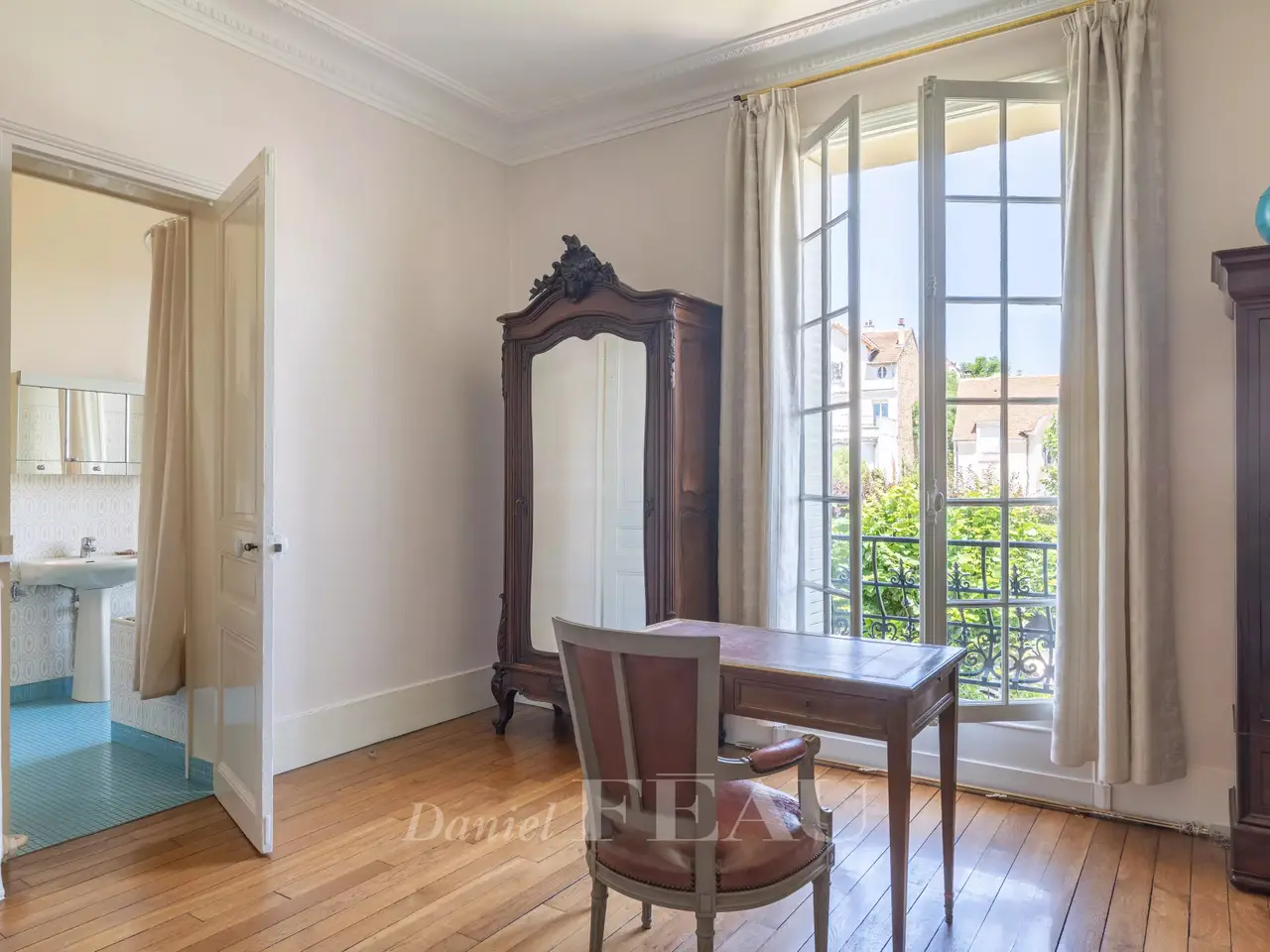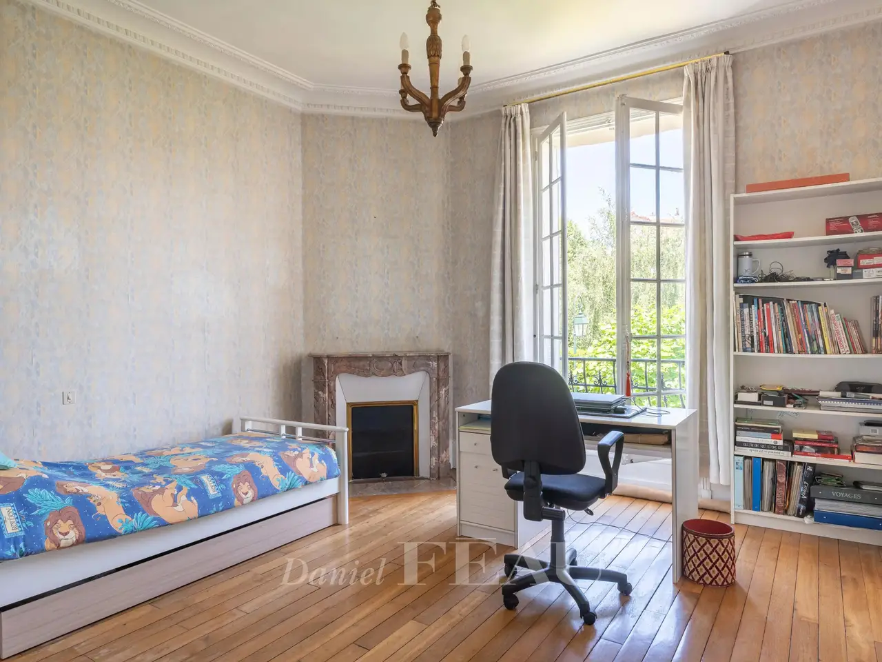 This early 20th century property is set in about 1800 sqm of leafy landscaped grounds in a peaceful environment in the immediate vicinity of the shops and the transport networks. Boasting period features including near 4-metre high ceilings, it includes two bright living/reception rooms, a dining room, and a kitchen with dining facilities. Upstairs a landing leads to four spacious bedrooms, two bathrooms and a dressing room. The top floor comprises two further bedrooms, a study and a spacious recreation room. On a near 150 sqm basement with storage rooms, a wine cellar, a utility room and a boiler. An annex comprises a garage and 25 sqm accommodation to renovate.