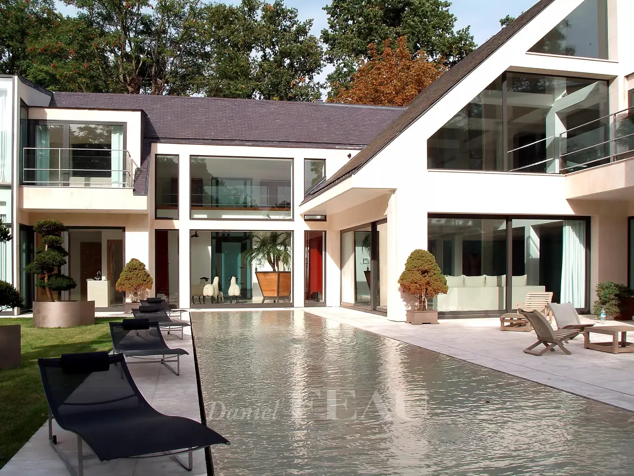 This exceptional architect-designed property bathed in sunshine is set in 3782 sqm of peaceful south-facing landscaped grounds near Saint-Cloud golf course. Offering about 800 sqm of superb living space, it includes a spacious garden-level living/reception room with a fireplace, a dining room, a generously proportioned equipped kitchen, a study (all opening onto a terrace and the garden), and an indoor swimming pool with a jacuzzi and a shower room. The upper floor comprises a recreation room or sitting room, a master suite with a bathroom opening onto a terrace, and three further bedrooms, two with bathrooms and opening onto balconies. On a basement with a home cinema, a utility room and technical premises. The property also benefits from a 4-car garage.