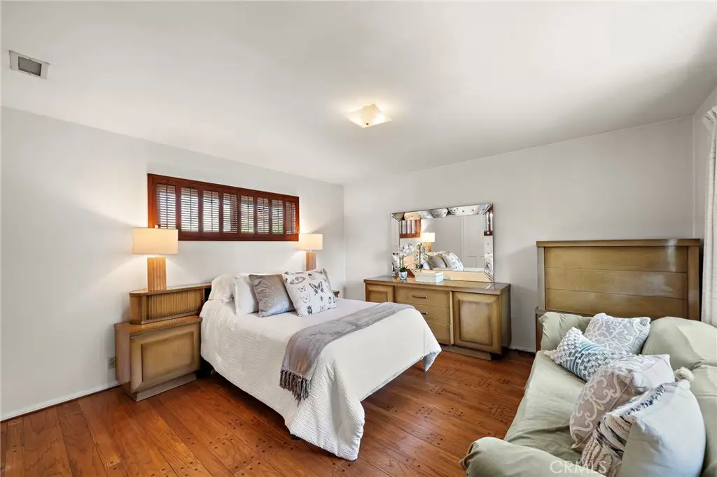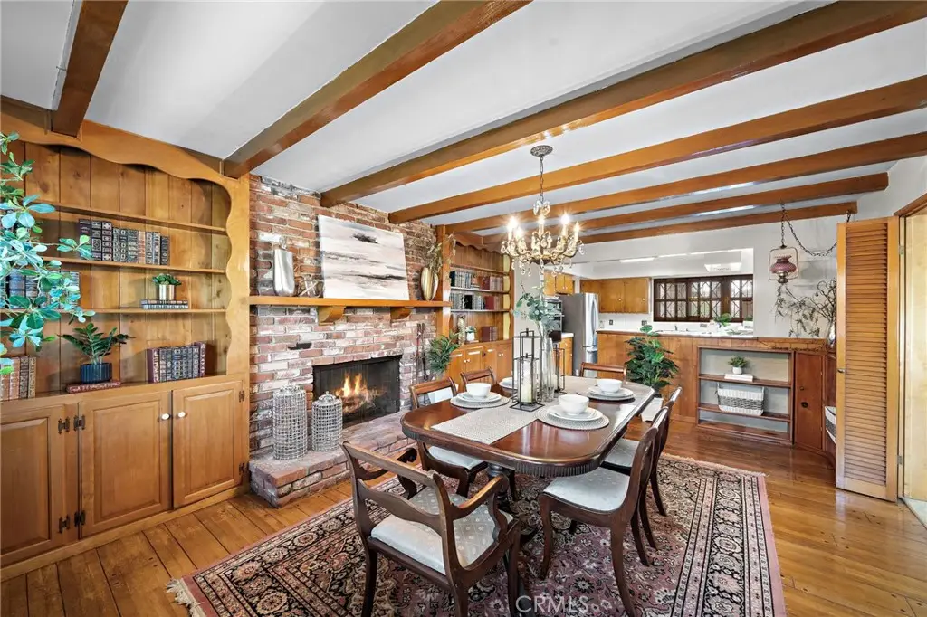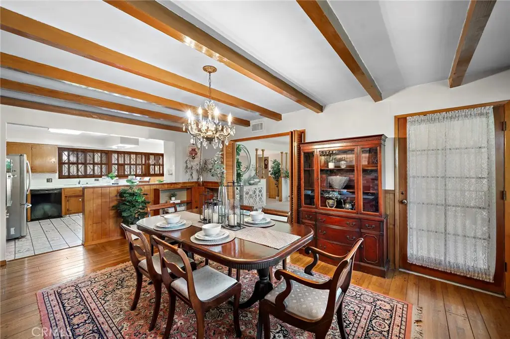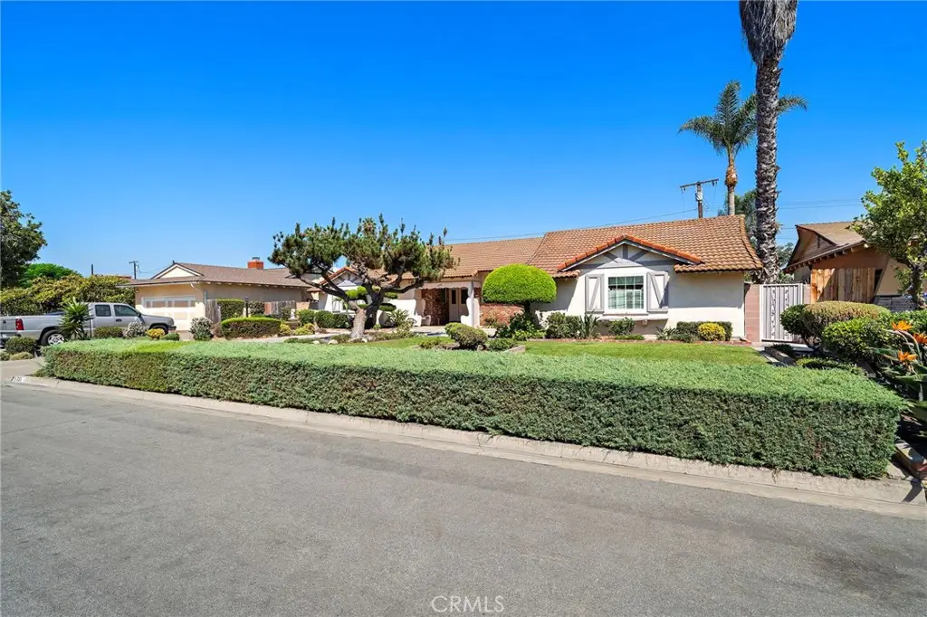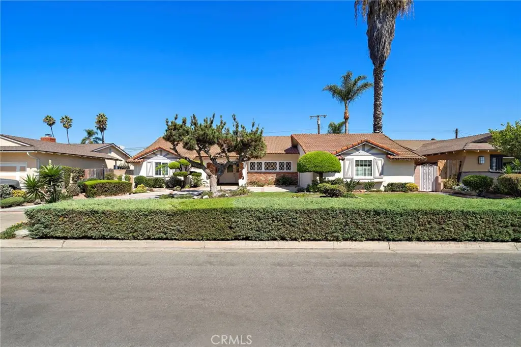What a rare opportunity! This charming single-level residence sits on an impressive 8,625 sq ft interior lot in one of Garden Grove's most desirable neighborhoods. Lovingly maintained by the same family for over 50 years, this home offers timeless character, incredible potential, and room to make it your own. Featuring 1,943 sq ft of living space, the floor plan includes 4 spacious bedrooms and 2.5 baths. The serene primary suite offers a walk-in shower with glass door and tiled counters, while three additional guest bedrooms share a hall bath with tub/shower combo. The large fourth bedroom with a private entrance is tucked away at the end of the hall, perfect for guests, extended family, or a home office. Inside, you'll find a bright and inviting kitchen with tile countertops, an oversized eat-in kitchen is perfect for everyday use, and a separate laundry room for convenience. The expansive living room features sliding doors that lead to your backyard oasis, while the banquet-size formal dining room has rich beamed ceiling, real hardwood floors and is centered around a cozy brick fireplace --perfect for entertaining and holidays. Step outside to a large, covered patio, perfect for family gatherings, barbecues, or relaxing evenings outdoors. The spacious backyard features mature landscaping, a lush lawn, and multiple fruit trees--including fig, persimmon, tangerine, orange, and lemon--creating a private retreat for everyday living. Additional highlights include picture-perfect curb appeal, scraped ceilings, A/C and real hardwood flooring. The location is unbeatable--close to shopping, restaurants, schools, community college, freeways, Disneyland, Anaheim Stadium, and all that vibrant Garden Grove has to offer. Don't miss this rare chance to own a true Garden Grove classic with endless possibilities!