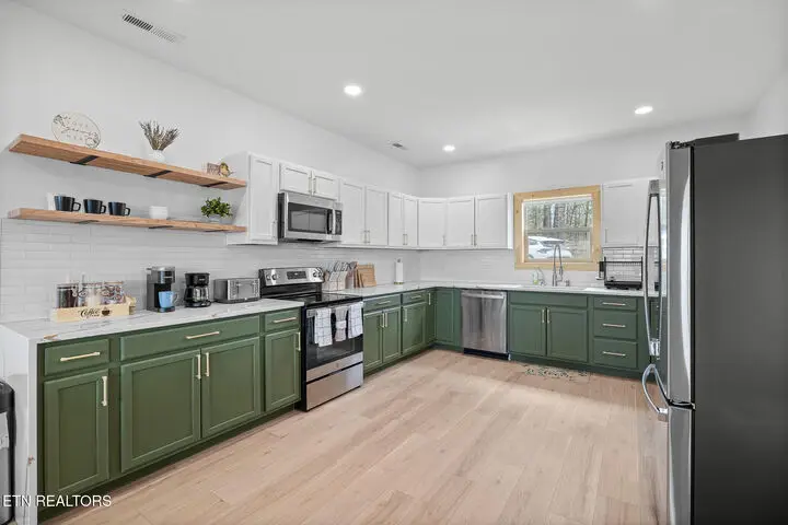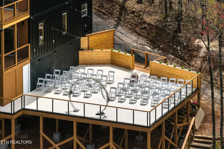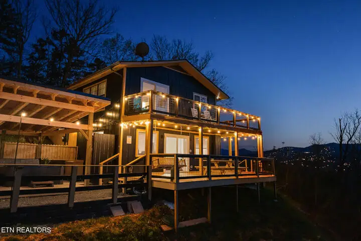 This spectacular opportunity is perched nearly 2,000 feet above Gatlinburg with panoramic views that sweep across the Smoky Mountains, this newly listed modern mountain-top retreat offers both an opulent escape and a rare investment opportunity. With over $350,000 already booked revenue in 2025 and over $100,000 already booked in 2026, for a total of over $450,000 with zero advertising spent to date. All future booking proceeds after closing go directly to the buyer. From an investment perspective, this property is a proven performer. Both properties are fully furnished and equipped down to the décor and event supplies, ensuring immediate income generation. Situated on 1.74 private acres along a quiet ridge-line, this exceptional property includes two turnkey cabins and a bespoke micro-event platform, thoughtfully designed for intimate weddings, corporate retreats, wellness gatherings, or exclusive vacation rentals. The larger cabin (3,100 sq. ft., built in 2024) features 3 bedrooms plus a loft, 3.5 bathrooms, 1,440 sq. ft. of deck space, and accommodations for up to 12 guests. The second cabin (1,824 sq. ft., originally built in 1977 and fully renovated in 2024) offers 2 bedrooms, 2.5 bathrooms, 500 sq. ft. of deck space, and sleeps 8. Both showcase high-end finishes, fully stocked kitchens, luxurious bathrooms with rainfall showers and lighted mirrors, and expansive indoor-outdoor living spaces designed to capture the stunning mountain vistas. The 1,100 sq. ft. event platform with 250 sq. ft. of storage opens endless revenue possibilities—micro-weddings, yoga retreats, small business gatherings—all enhanced by the unmatched privacy and scenery. Outdoor amenities include two hot tubs, multiple fireplaces, an outdoor bar, picnic areas, an outdoor shower, arcade games, swings, and a telescope for stargazing. Located just 10 minutes to Downtown Gatlinburg, 12 minutes to Pigeon Forge, and 20 minutes to Dollywood, guests enjoy quick access to world-class attractions while returning to a secluded mountain haven at day's end. The private road location ensures peace and exclusivity, making it as appealing for personal use as it is for rental income. This is not just a property—it is a turnkey luxury lifestyle business with multiple revenue streams, minimal marketing required, and the kind of views that command premium nightly rates. Whether you're seeking a high-performing short-term rental portfolio, a luxury second home, or an intimate event destination, this offering represents a once-in-a-lifetime find in the Smokies. (3D Tour of 738Smokerise is available upon request along with financials!)